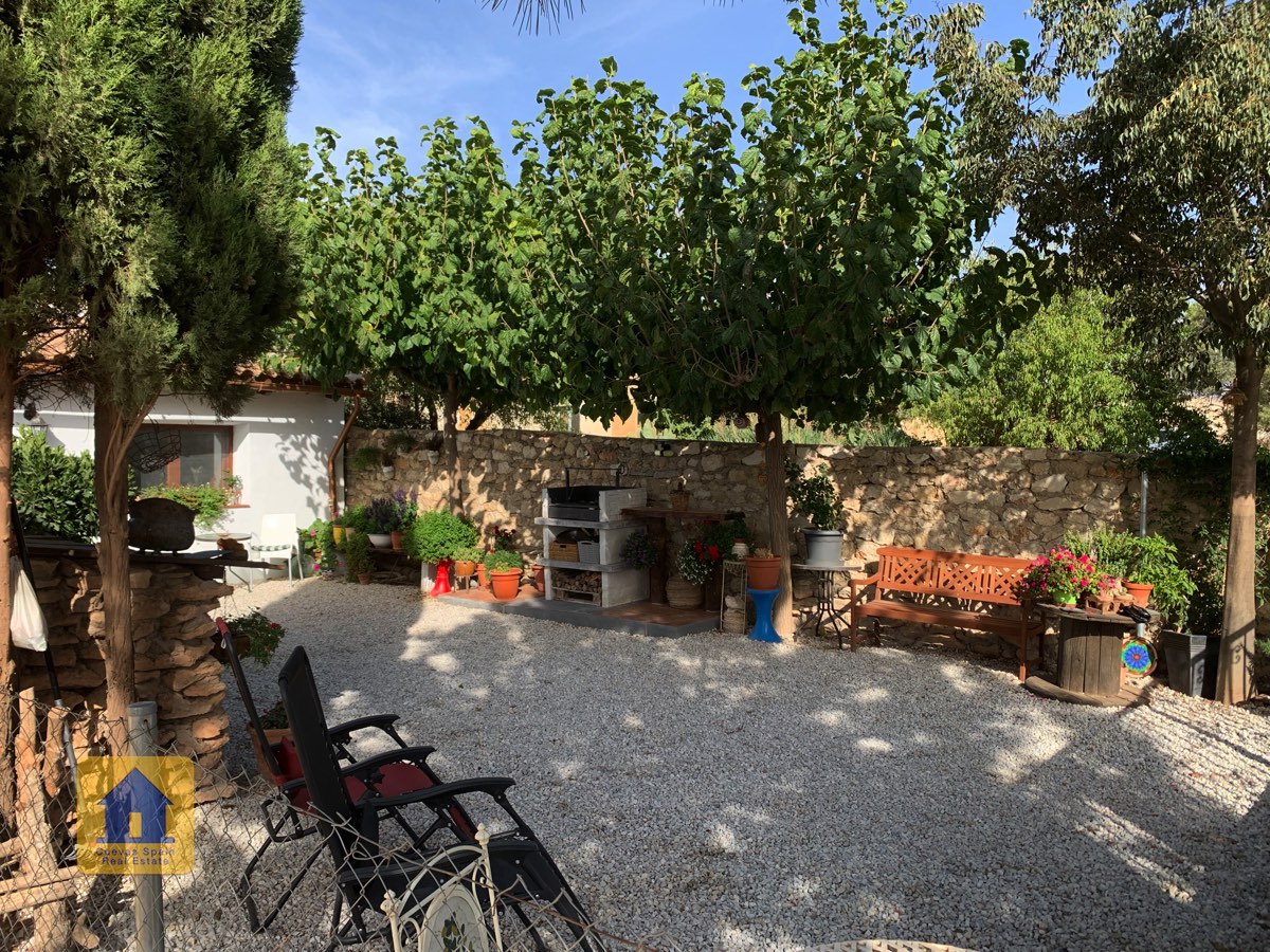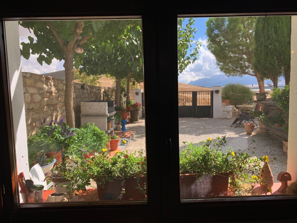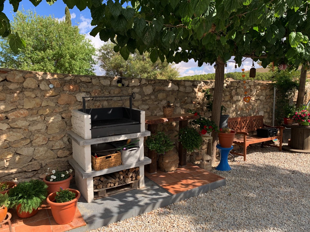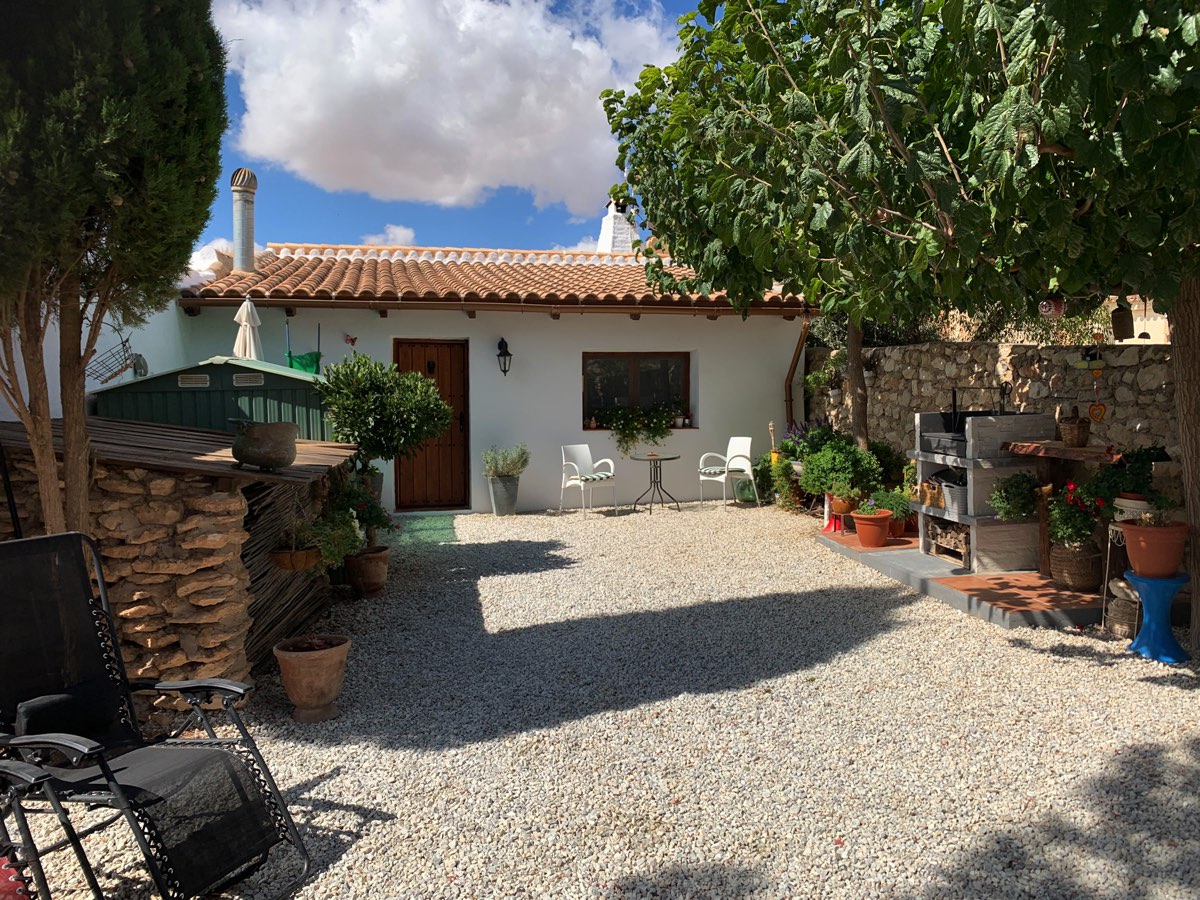 À l'extérieur, le patio comporte un mur de pierre traditionnel sur un côté. A l'avant se trouve un double portail et une entrée piétonne à portail unique. Il y a de charmants coins salon, 3 arbres d'ombrage (dont 2 mûriers), un barbecue indépendant, un abri pour le bois de chauffage et un abri de jardin. Le patio offre une grande intimité. En vous relaxant sur le patio, en contemplant les vues lointaines sur les montagnes, vous êtes dans votre propre paradis privé.