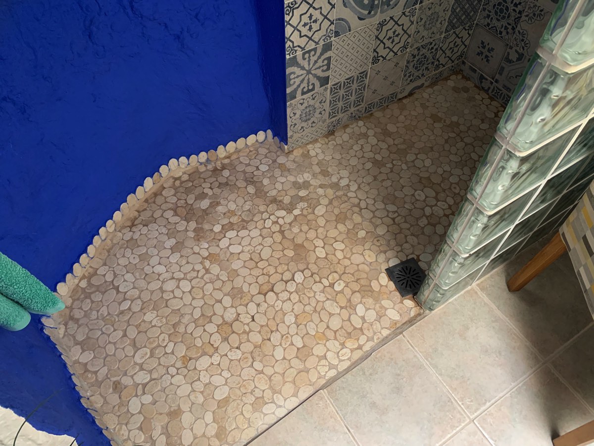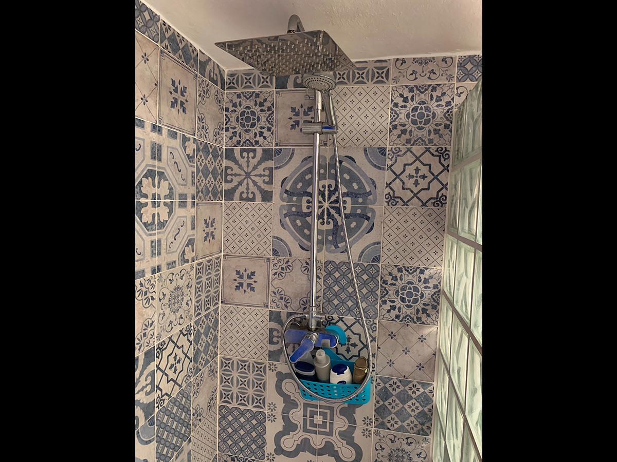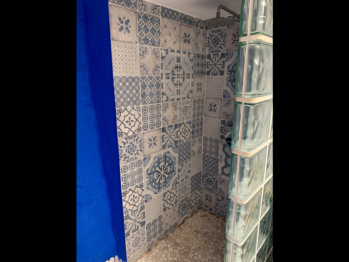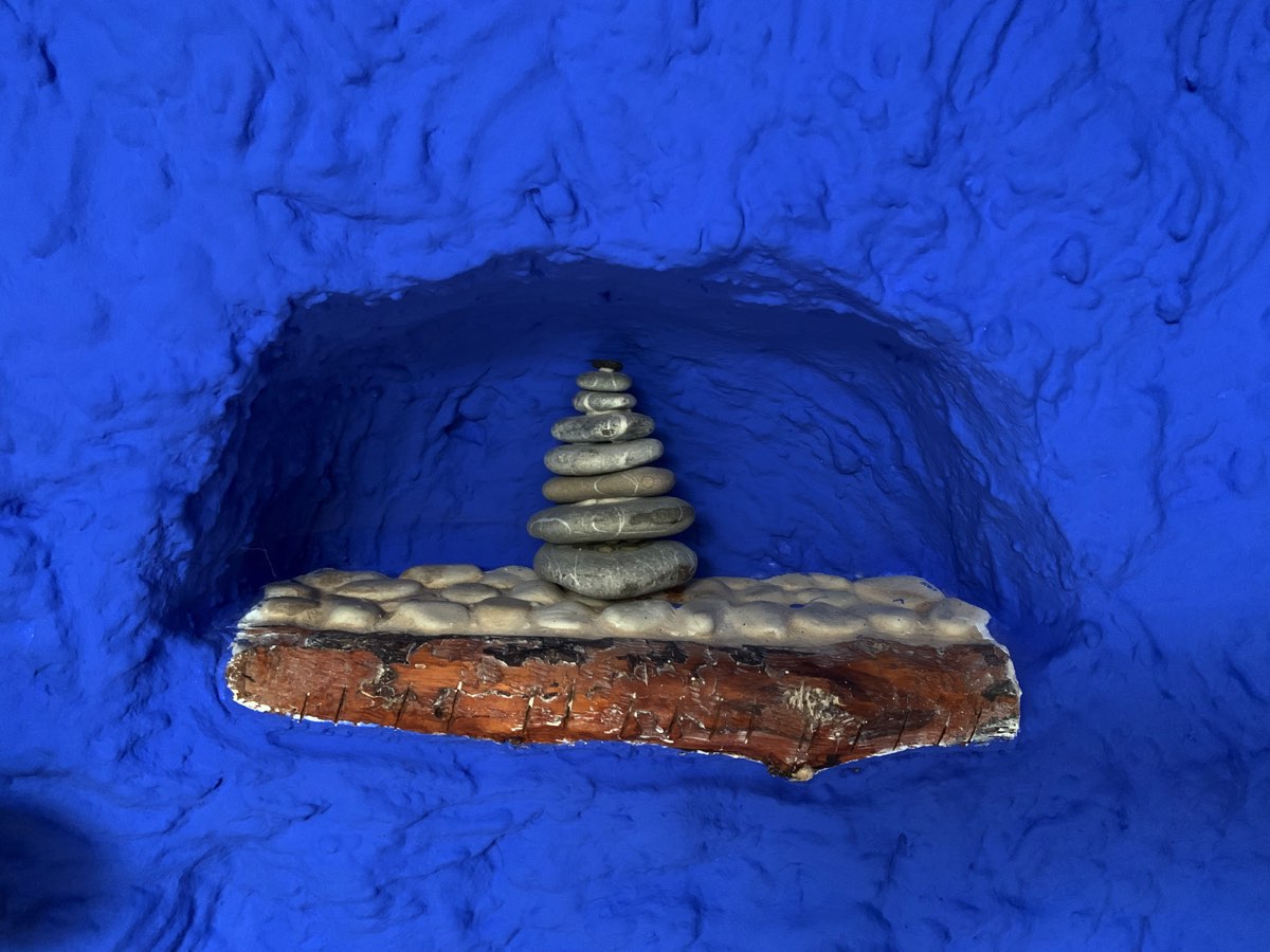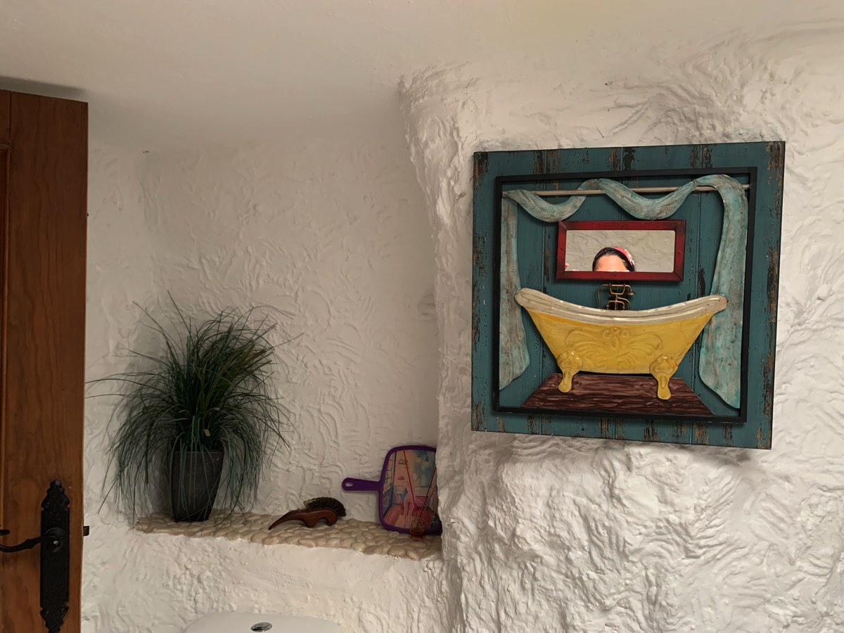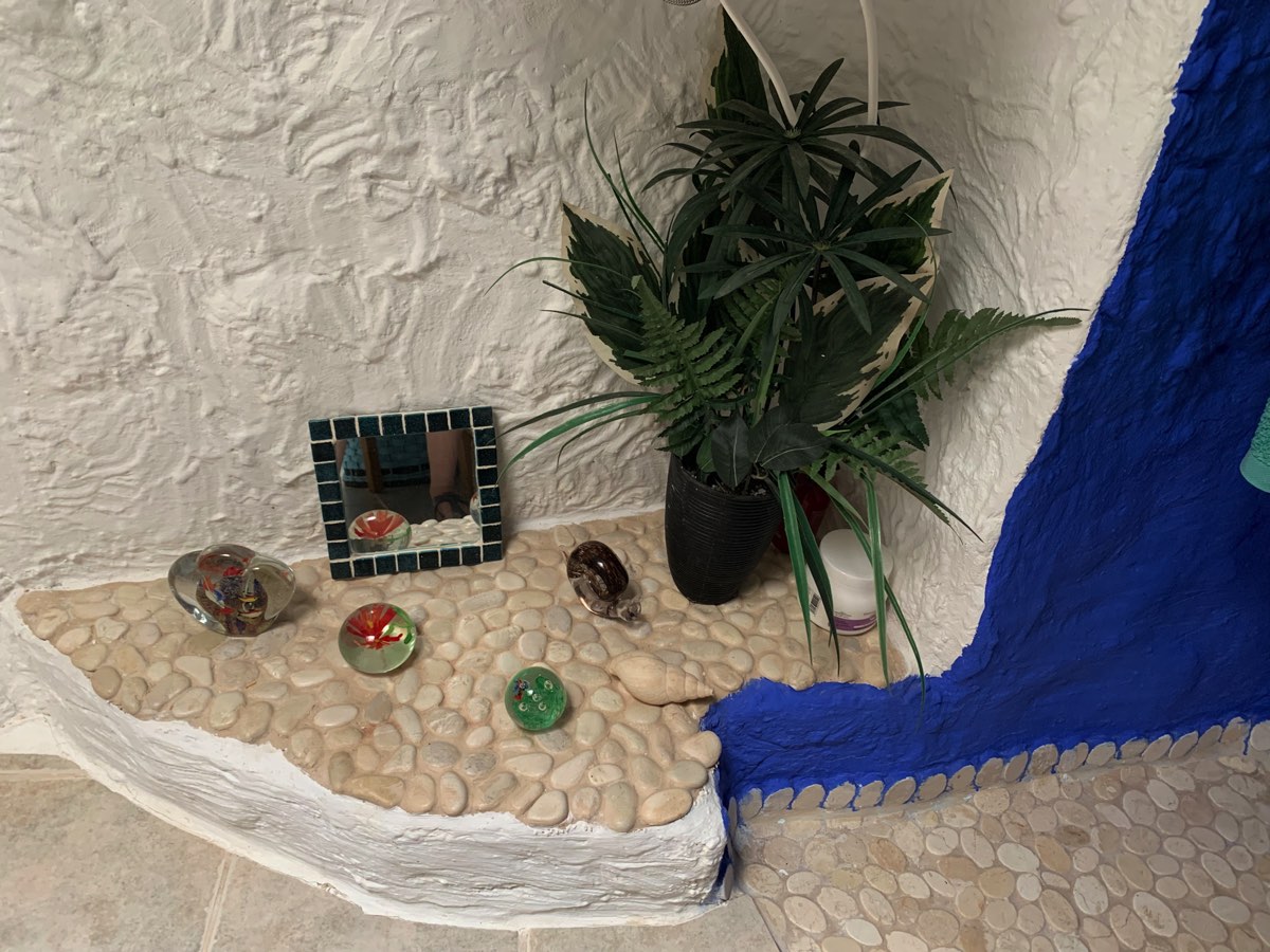 De la salle de devant, vous entrez dans la section de la grotte par la porte en bois originale de la grotte. À l'intérieur se trouve le confortable salon central avec un deuxième poêle à bois et un four intégré. À côté du salon se trouve un petit bureau avec une fenêtre originale de la grotte qui laisse passer la lumière du soleil depuis la pièce principale. La cuisine spacieuse a un design moderne de bon goût, beaucoup d'espace de rangement et un coin repas. Deux tunnels mènent aux chambres à coucher. L'une des suites comprend une pièce actuellement utilisée comme salle de télévision/chambre d'amis (pouvant accueillir un lit double) et une chambre arrière. La deuxième suite comprend une pièce commune (actuellement une salle de musique), avec la salle de bains d'un côté, et mène à une chambre à coucher avec armoire (pouvant également accueillir un lit double) et une chambre à coucher avec un grand placard de rangement avec des étagères intégrées. Des barrières basses en bois ont été installées à l'entrée des suites de chambres et de la cuisine, très pratiques si vous avez des chiens ou des enfants en bas âge. La grotte est parsemée d'étagères de différentes tailles creusées dans la paroi de la montagne. Les étagères de la salle de bains creusée présentent une finition attrayante en galets.