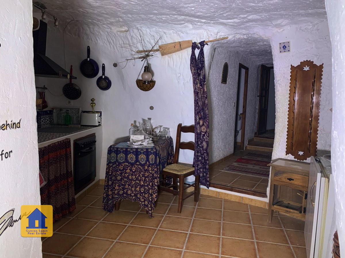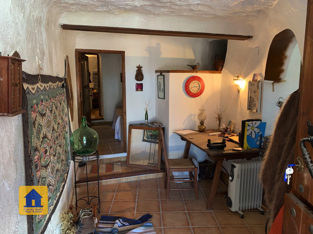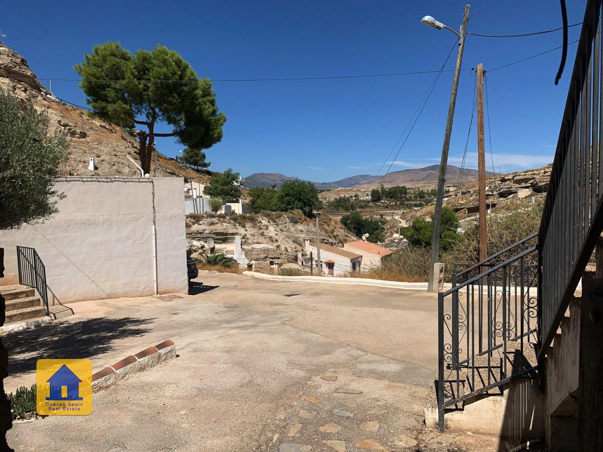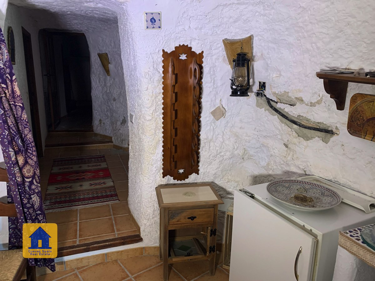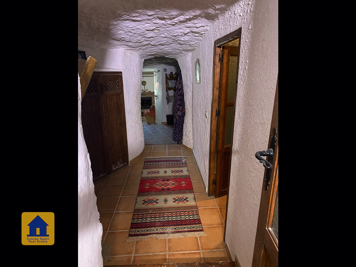 Il s'agit d'une charmante maison troglodyte excentrique située en haut d'une colline dans le beau village de Galera, avec de superbes vues sur la Sierra. Il y a un patio avant avec de la place pour se garer et une charmante terrasse au-dessus de la grotte. La grotte est composée d'un hall d'entrée, d'un salon, d'une cuisine, de 3 chambres, de 2 salles de bain, d'un couloir arrière et d'un grand garde-manger qui peut être une troisième chambre. Une section de la grotte nécessite des travaux de réparation qui peuvent être effectués par un constructeur de cave local.