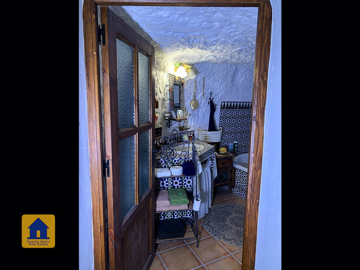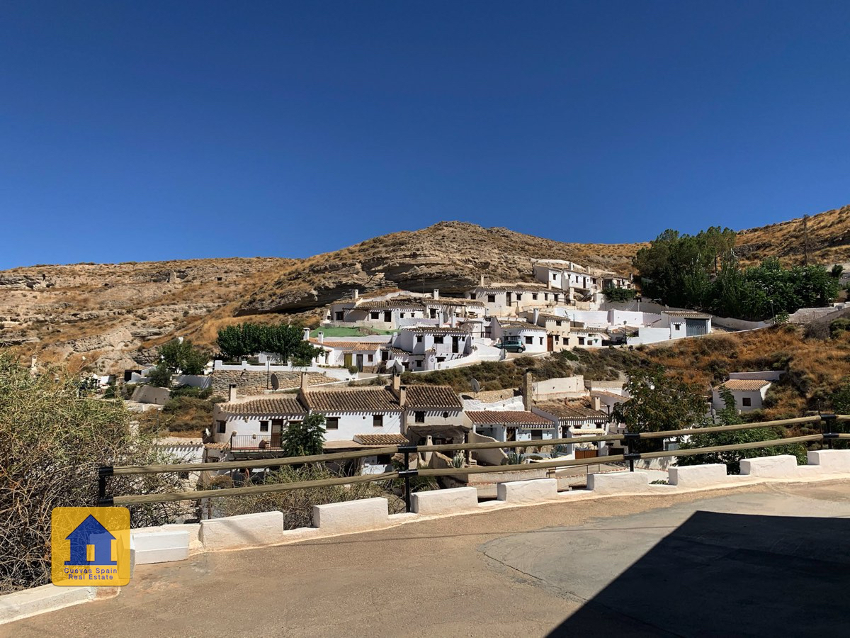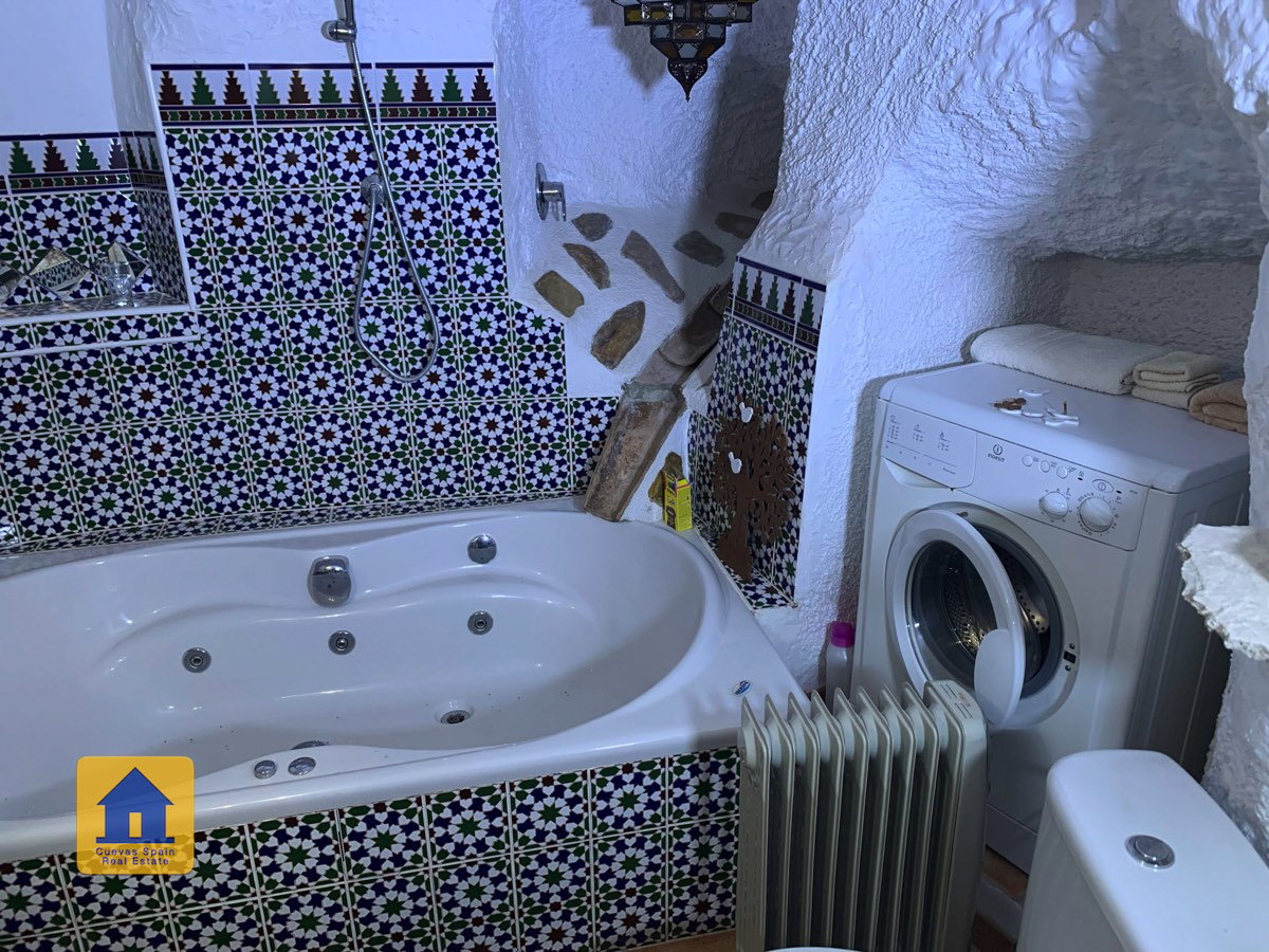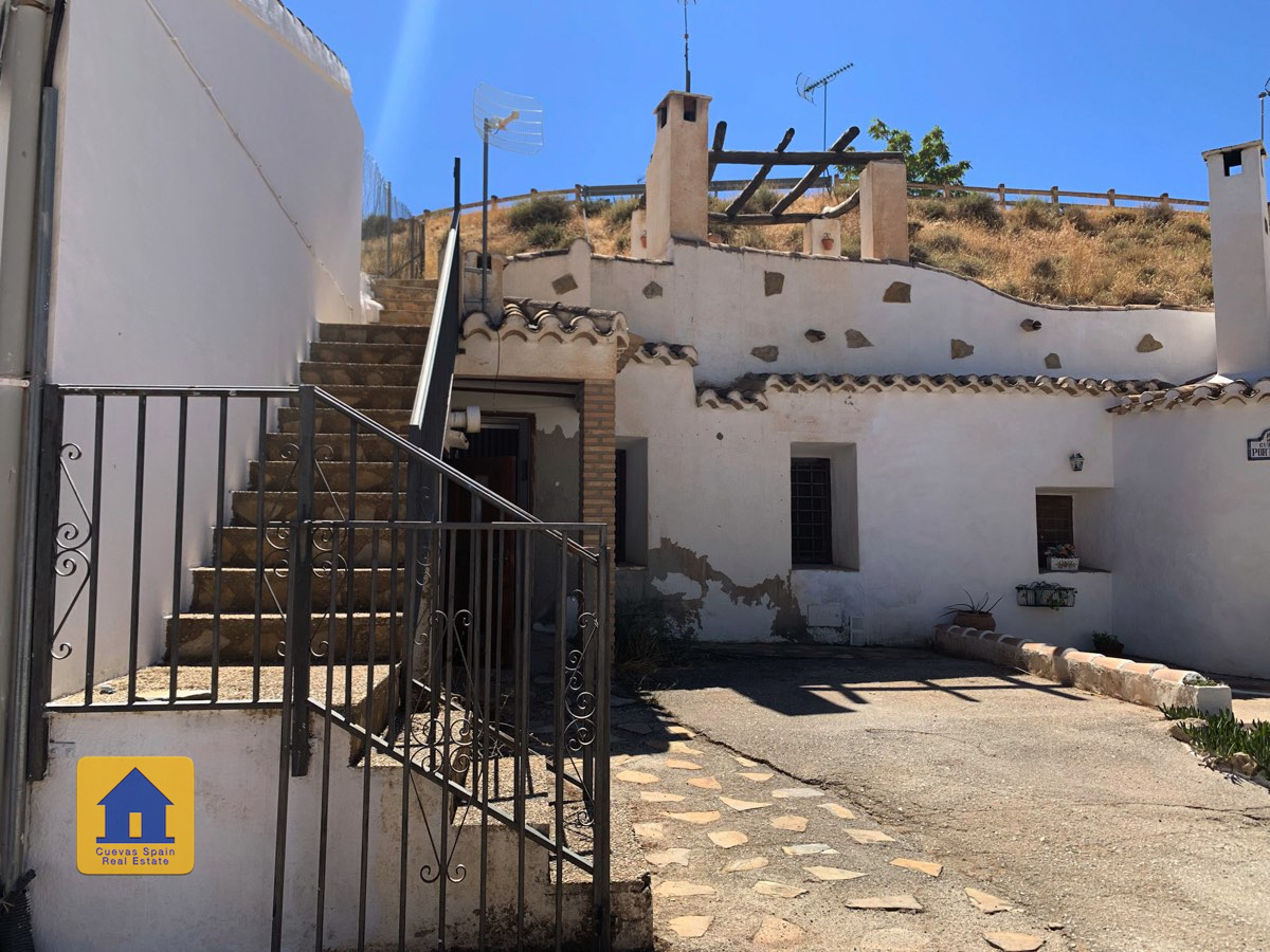 Il s'agit d'une charmante maison troglodyte excentrique située en haut d'une colline dans le beau village de Galera, avec de superbes vues sur la Sierra. Il y a un patio avant avec de la place pour se garer et une charmante terrasse au-dessus de la grotte. La grotte est composée d'un hall d'entrée, d'un salon, d'une cuisine, de 3 chambres, de 2 salles de bain, d'un couloir arrière et d'un grand garde-manger qui peut être une troisième chambre. Une section de la grotte nécessite des travaux de réparation qui peuvent être effectués par un constructeur de cave local.