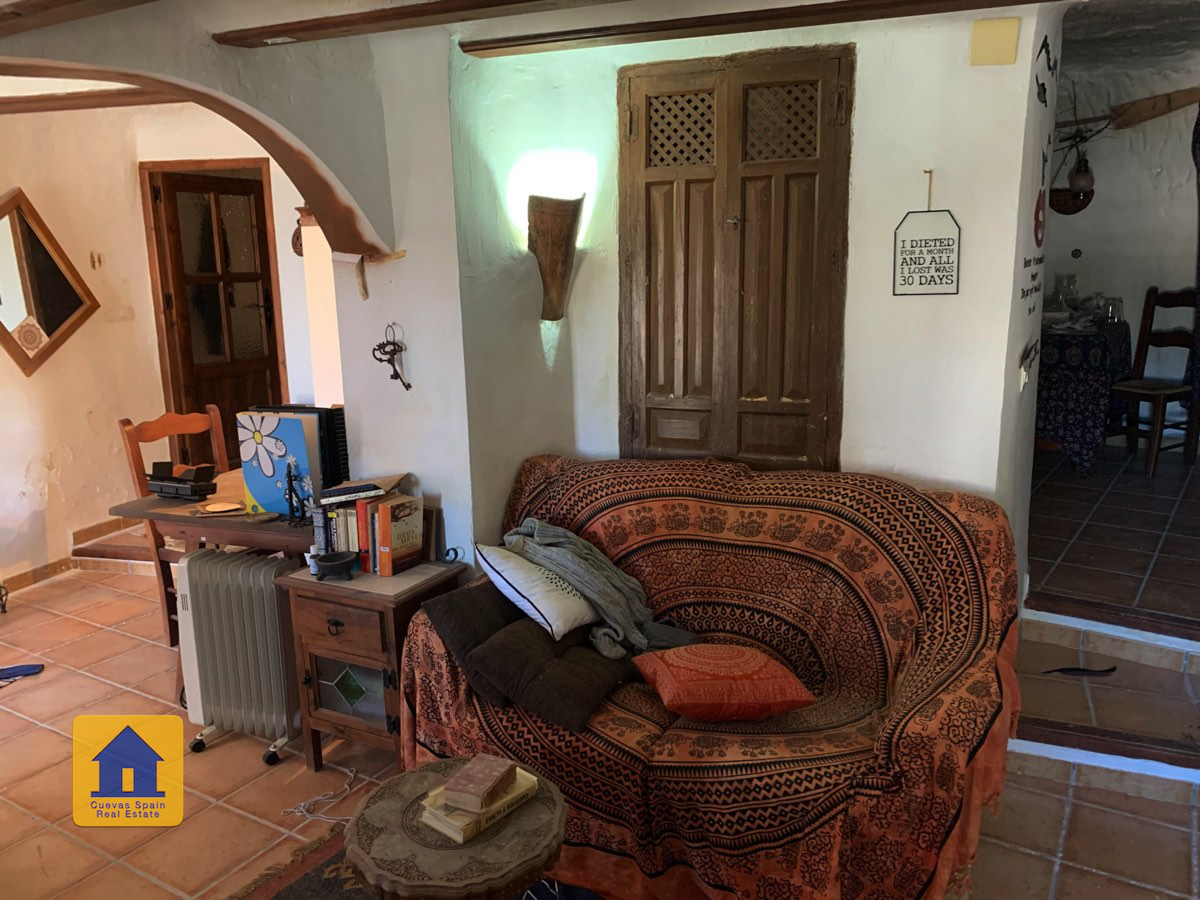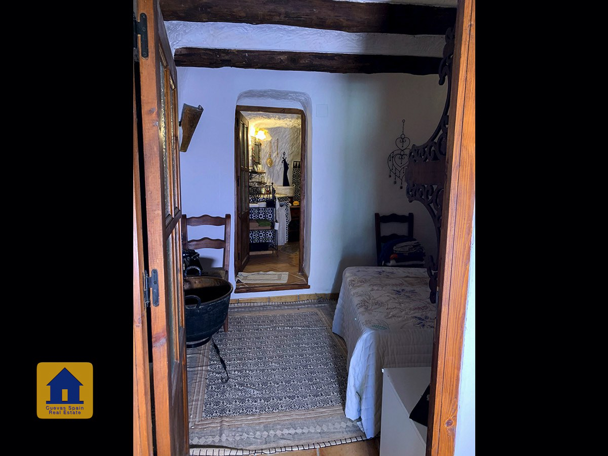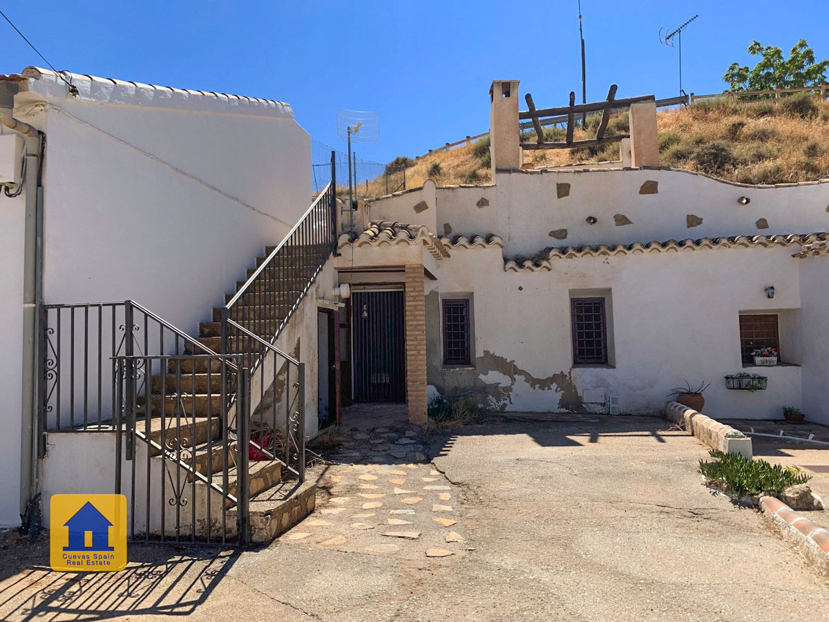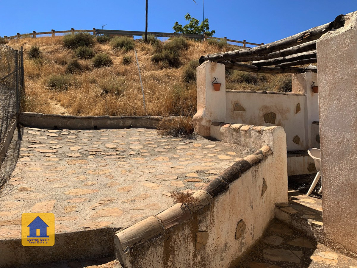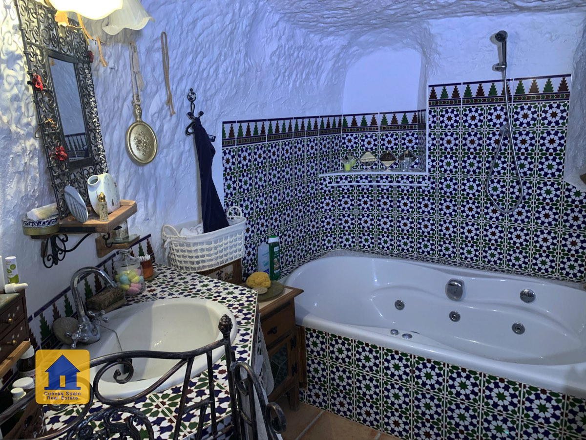 Il s'agit d'une charmante maison troglodyte excentrique située en haut d'une colline dans le beau village de Galera, avec de superbes vues sur la Sierra. Il y a un patio avant avec de la place pour se garer et une charmante terrasse au-dessus de la grotte. La grotte est composée d'un hall d'entrée, d'un salon, d'une cuisine, de 3 chambres, de 2 salles de bain, d'un couloir arrière et d'un grand garde-manger qui peut être une troisième chambre. Une section de la grotte nécessite des travaux de réparation qui peuvent être effectués par un constructeur de cave local.