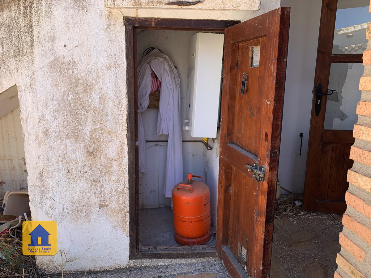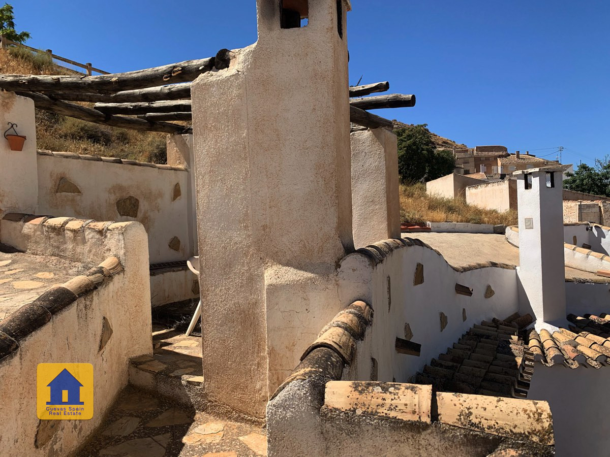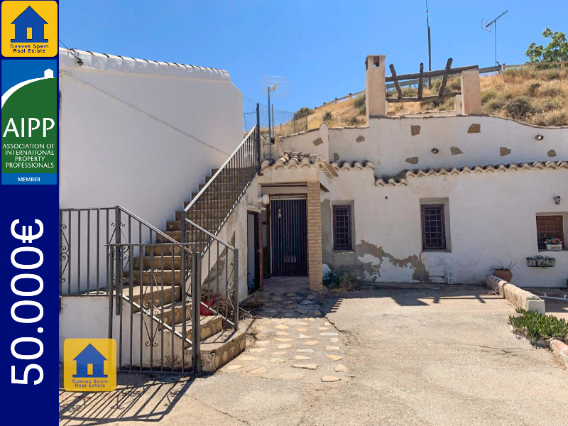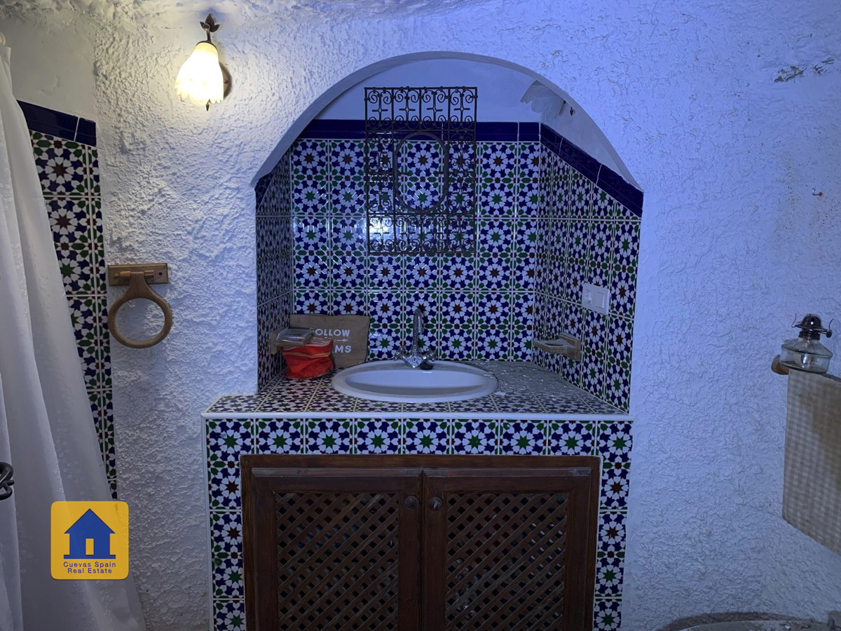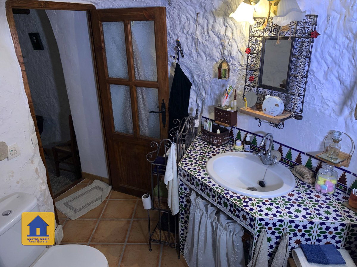 Il s'agit d'une charmante maison troglodyte excentrique située en haut d'une colline dans le beau village de Galera, avec de superbes vues sur la Sierra. Il y a un patio avant avec de la place pour se garer et une charmante terrasse au-dessus de la grotte. La grotte est composée d'un hall d'entrée, d'un salon, d'une cuisine, de 3 chambres, de 2 salles de bain, d'un couloir arrière et d'un grand garde-manger qui peut être une troisième chambre. Une section de la grotte nécessite des travaux de réparation qui peuvent être effectués par un constructeur de cave local.