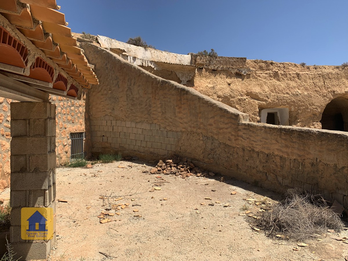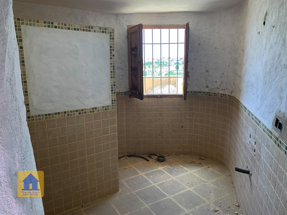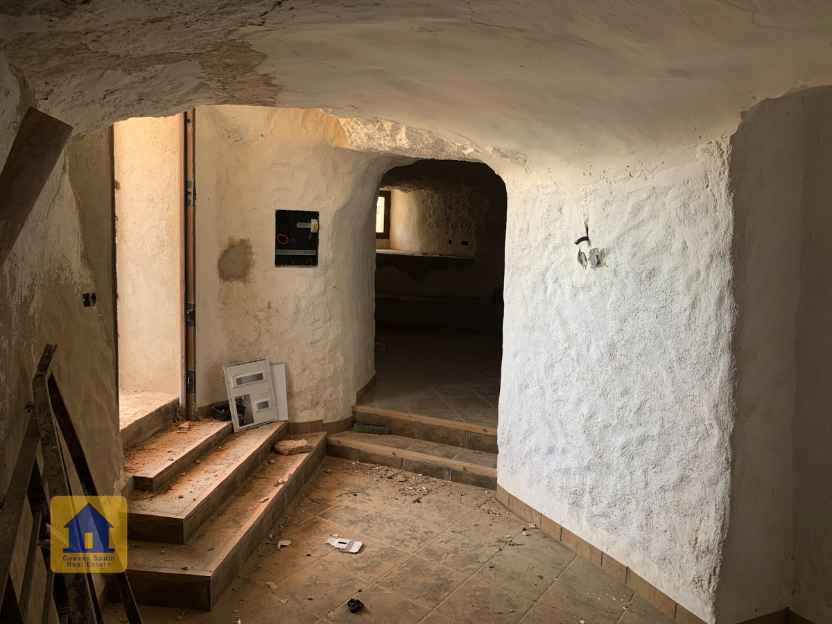 Casa cueva con fantásticas vistas sobre el pueblo y las sierras que rodean Huéscar. Esta propiedad fue parcialmente renovada hace 8 años pero los propietarios no han venido en años. La cueva no ha sido atendida y se ha dejado desnuda. Necesita restauración. Hay que instalar un nuevo sistema eléctrico. Las conexiones de alcantarillado y agua necesitan ser solicitadas por el ayuntamiento.