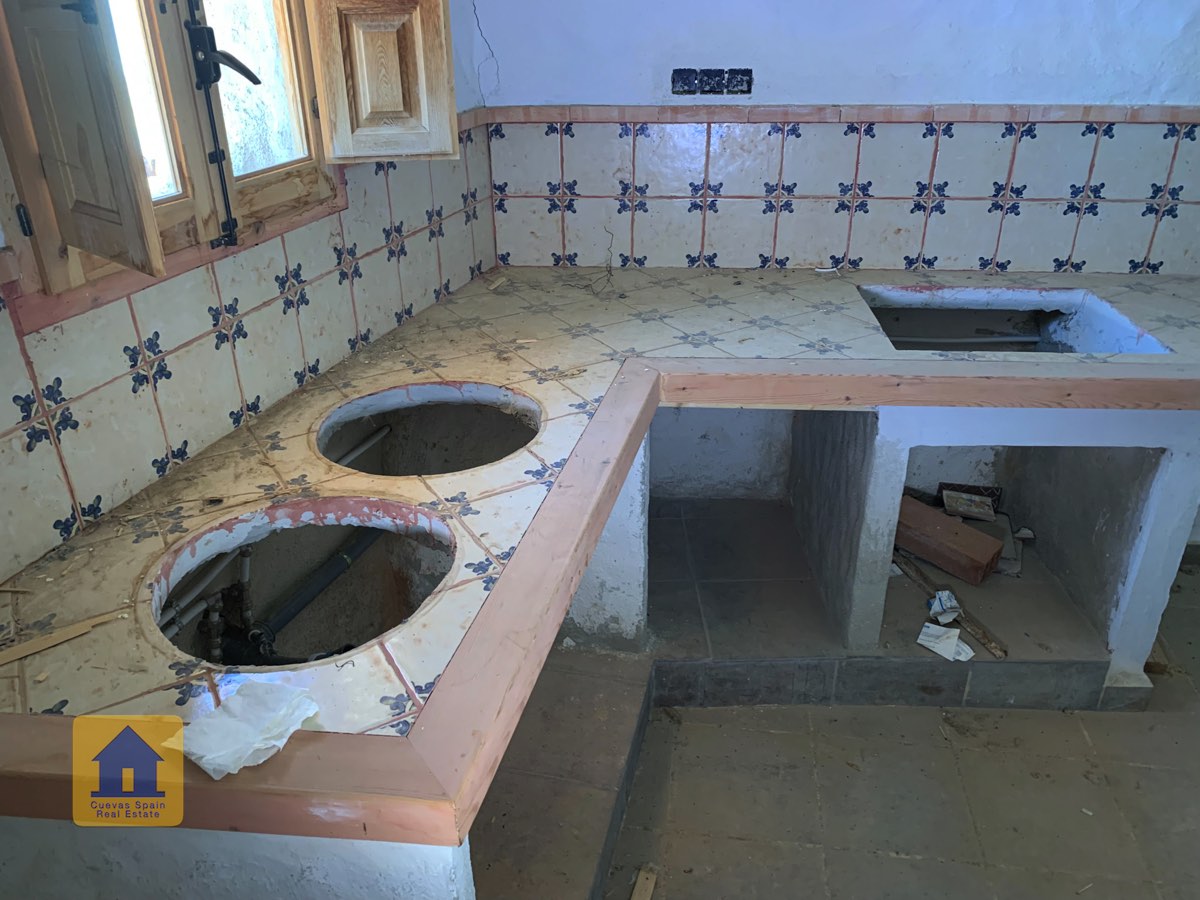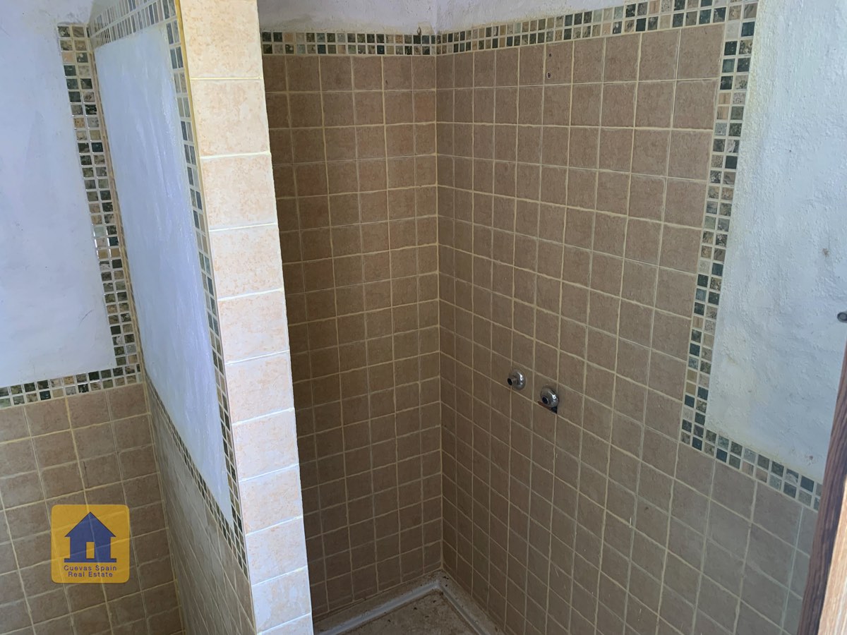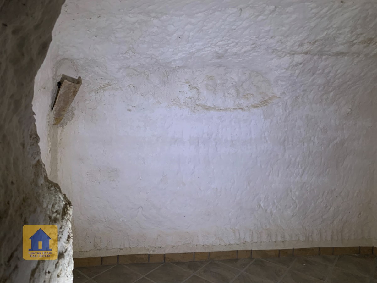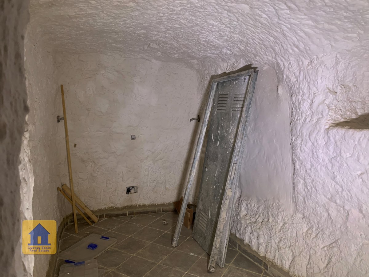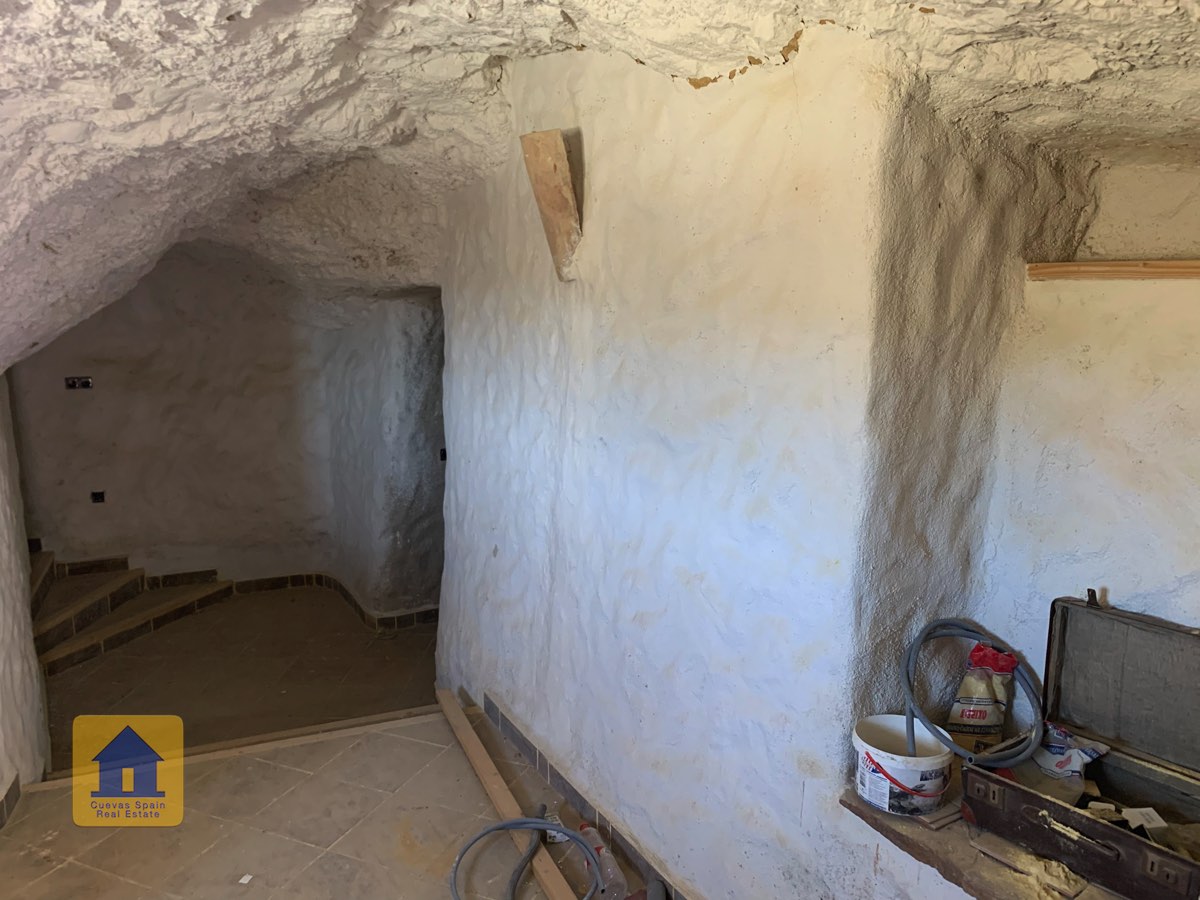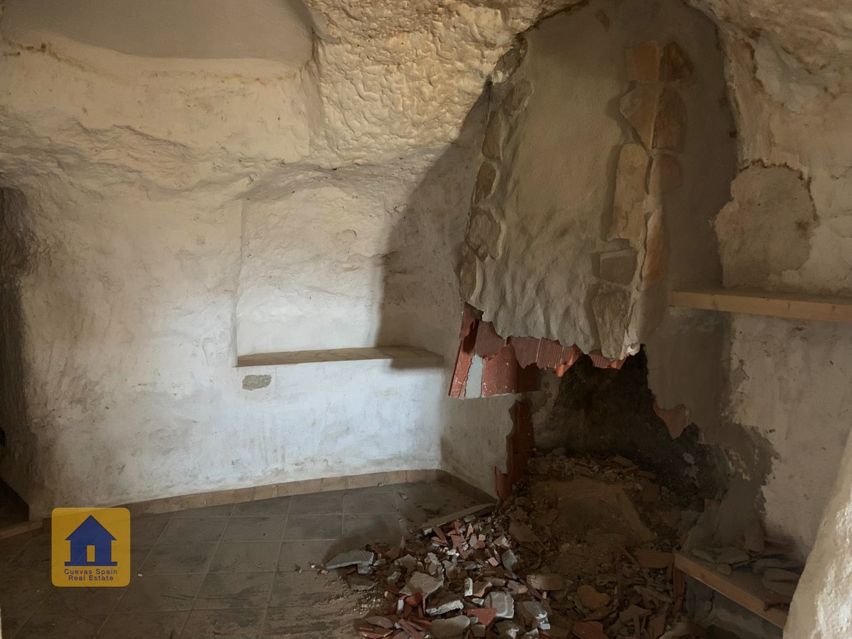 Hay 4 dormitorios y 1 baño, un gran salón con chimenea y una cocina de buen tamaño. Desde la gran entrada a la derecha hay dos amplios dormitorios, a la izquierda está el salón. Desde allí está la cocina con vistas al pueblo y las montañas, luego está el baño y dos dormitorios más adentro de la cueva. Hay dos patios, uno junto a la puerta de entrada, y el otro en el lateral de la casa, fuera del salón.