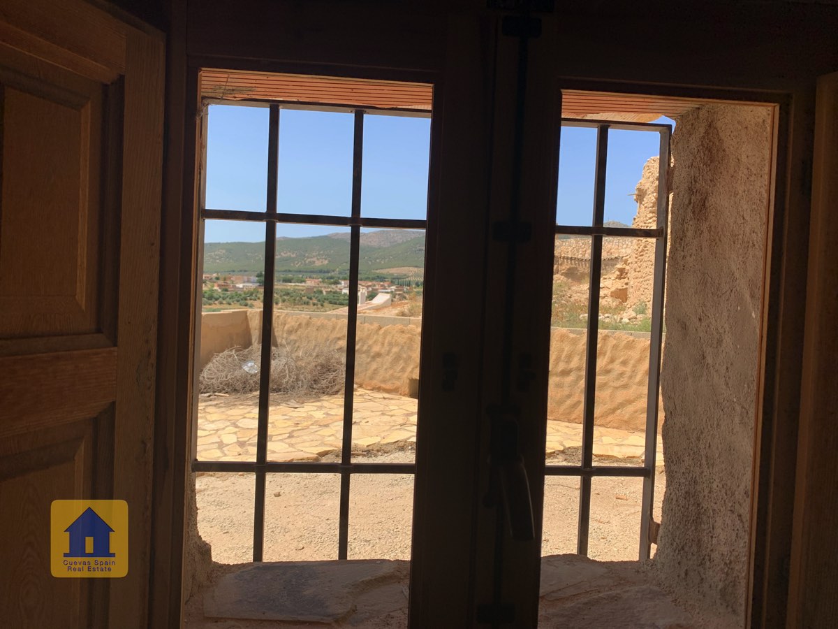Cave house with fantastic views over the town and mountain sierras surrounding Huéscar. This property was partially renovated 8 years ago but the owners have not come in years. The cave has not been attended to and has been left bare. It needs restoration. A new electric system needs to be installed. The sewage and water connections need to be requested by the town hall.