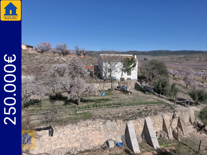 Maison de ferme à rénover sur un terrain de 6 hectares dans les collines du village le plus au nord de l'Andalousie. Le terrain se trouve sur une pente douce juste au-dessus du village, avec des vues incroyables, et un mur de pierre entoure la majeure partie de la propriété. Il y a des centaines d'amandiers et d'oliviers matures. Le terrain dispose d'une source d'eau naturelle et d'un réservoir de stockage d'eau avec une pompe reliée au réseau d'eau de ville. Il y a un potager et des abris pour les poules et les canards, ainsi que deux granges et des pâturages pour le bétail.