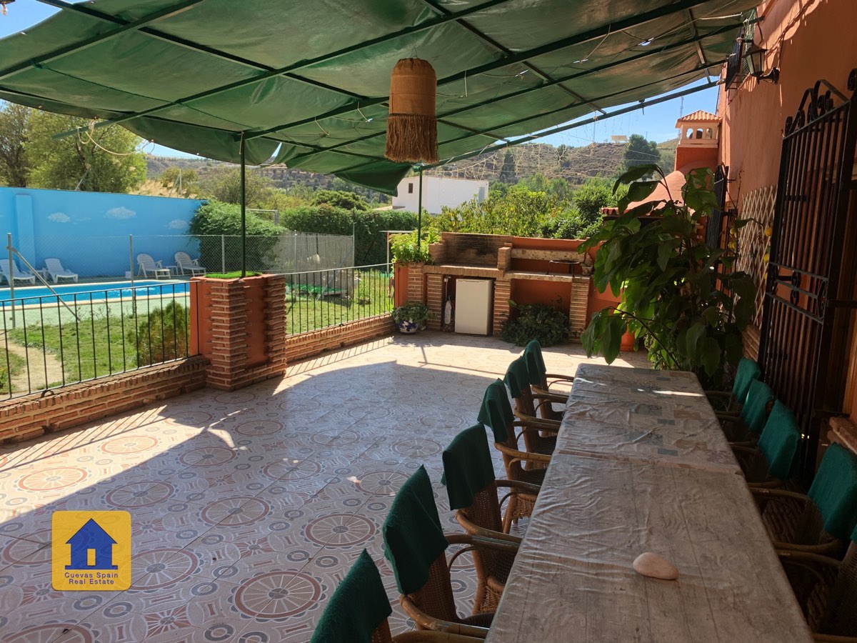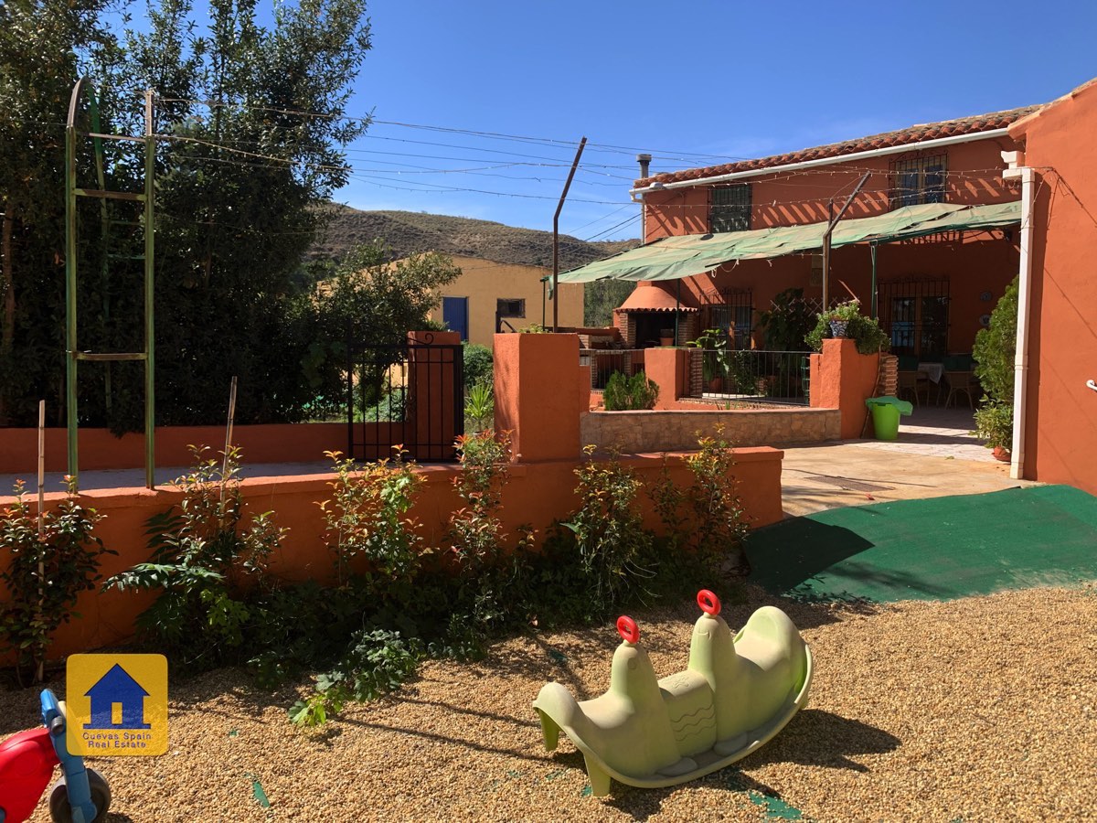 La propriété dispose de grands espaces extérieurs, y compris une longue allée, une aire de jeux et un grand jardin avec piscine creusée et WC. Il y a une grande terrasse pergola avec barbecue intégré pour les repas en plein air et des vues sur le jardin et la piscine. La propriété est clôturée avec un portail extérieur et deux portails intérieurs entre les différentes zones de loisirs. La propriété est clôturée avec un portail extérieur et deux portails intérieurs entre les différentes zones de loisirs (veuillez noter que la couverture de la pergola est usée et qu'elle devra être changée).