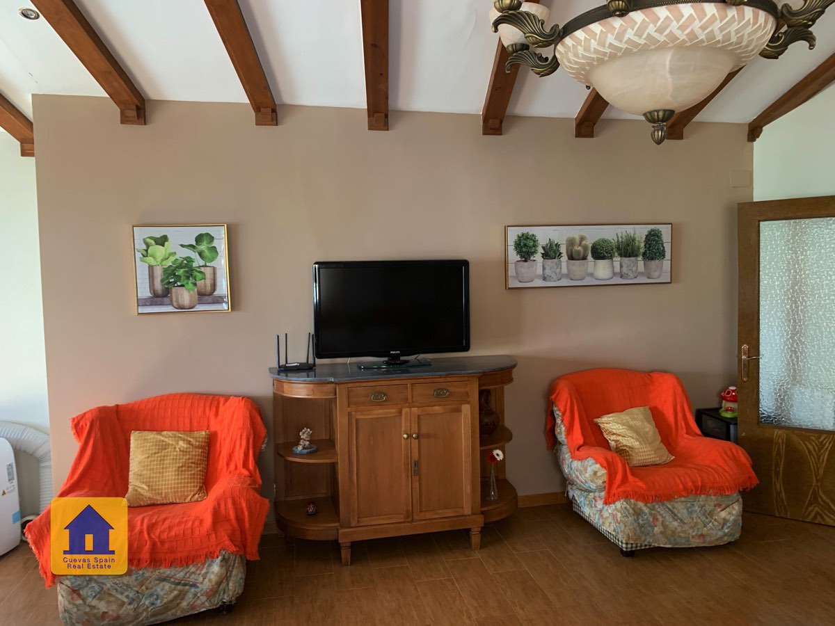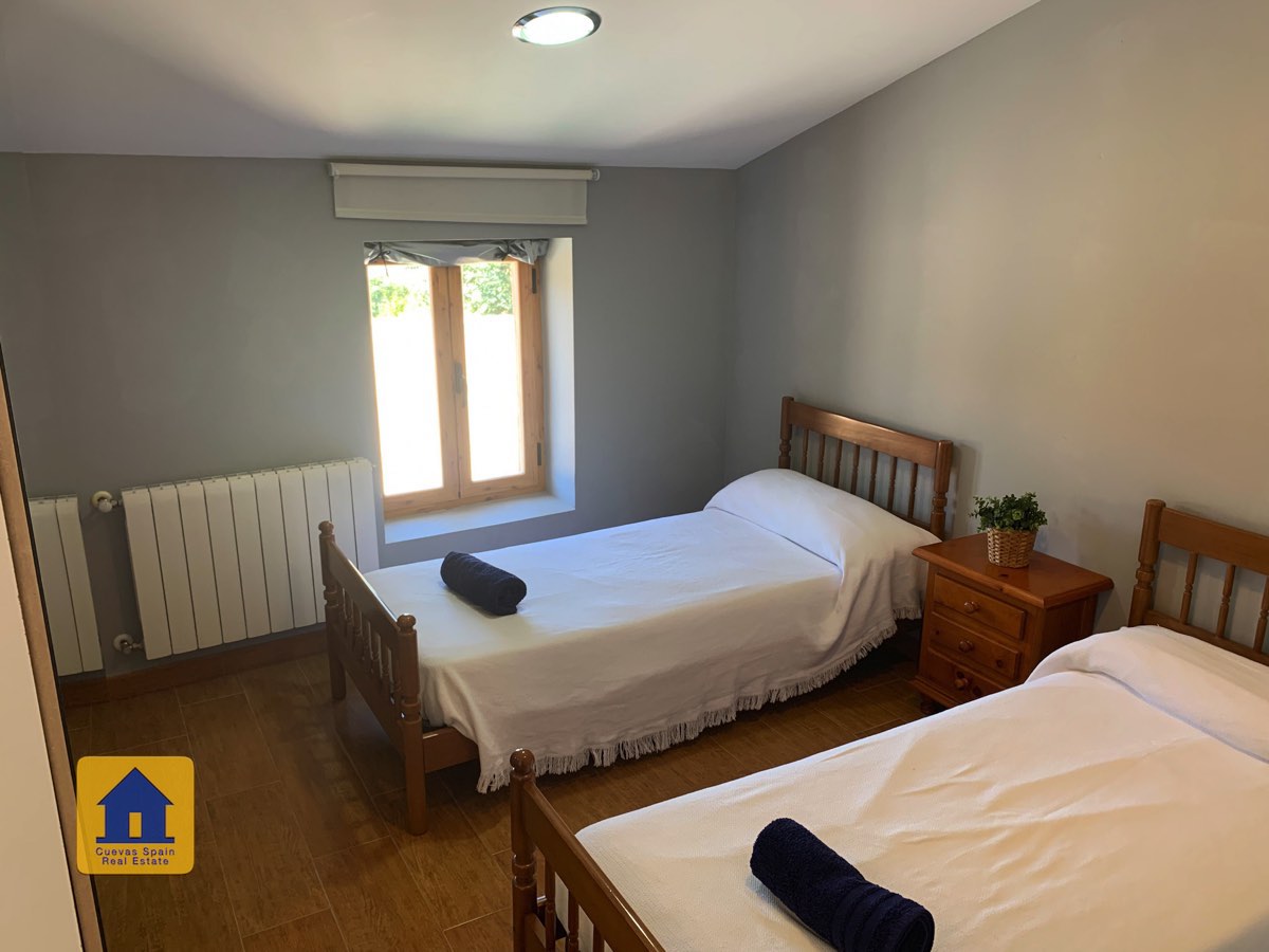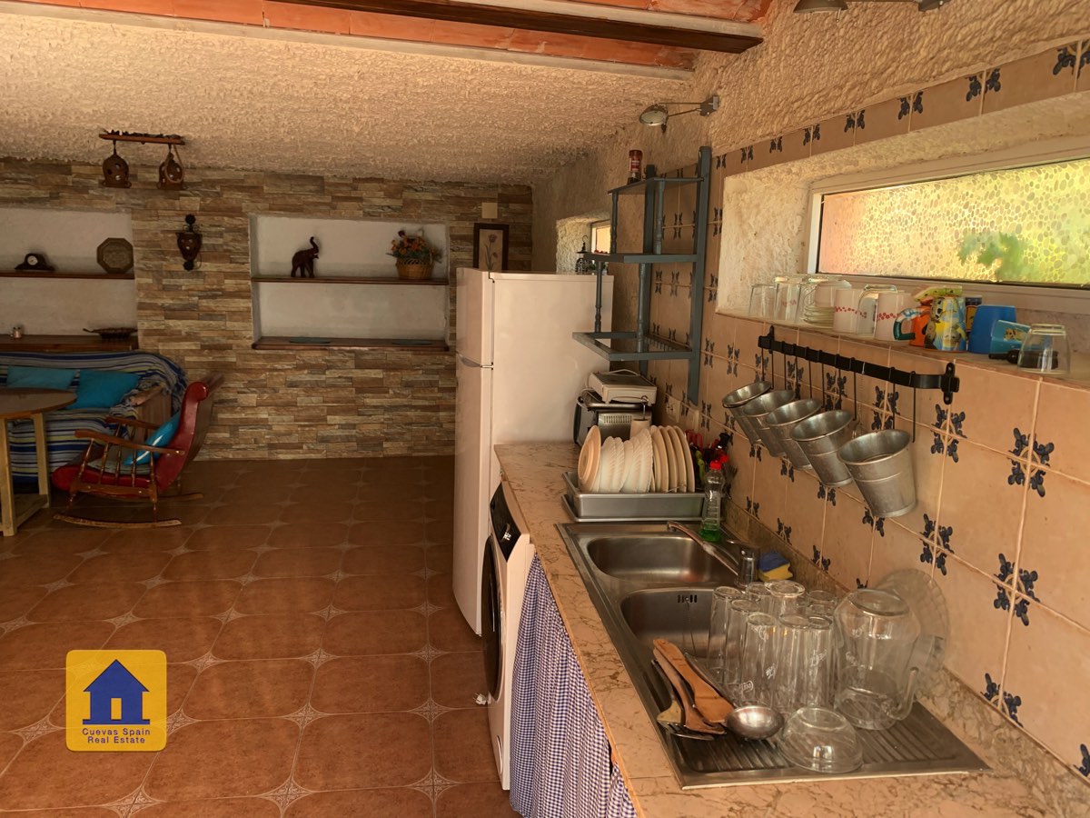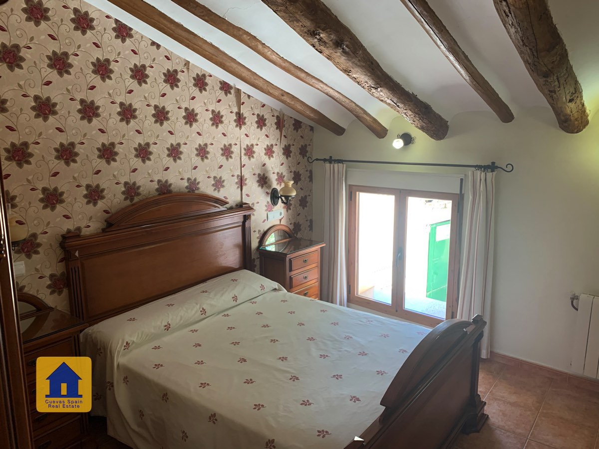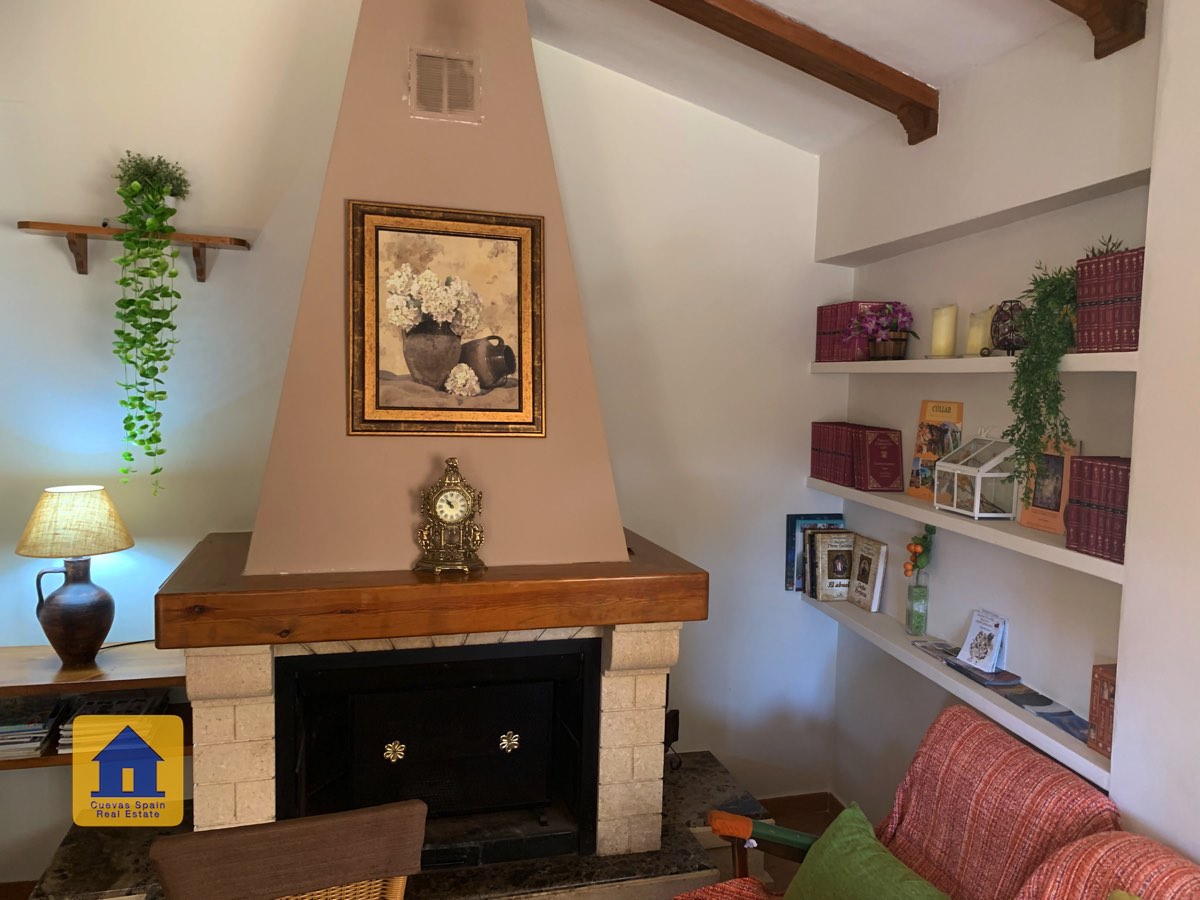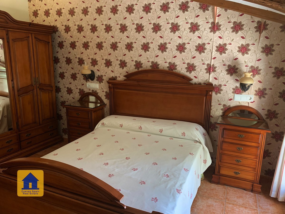 L'appartement rénové dispose d'un patio, d'un salon/salle à manger/cuisine rustique ouverte avec cheminée, de deux chambres et d'une salle de bains. L'une des chambres est une pièce troglodyte.