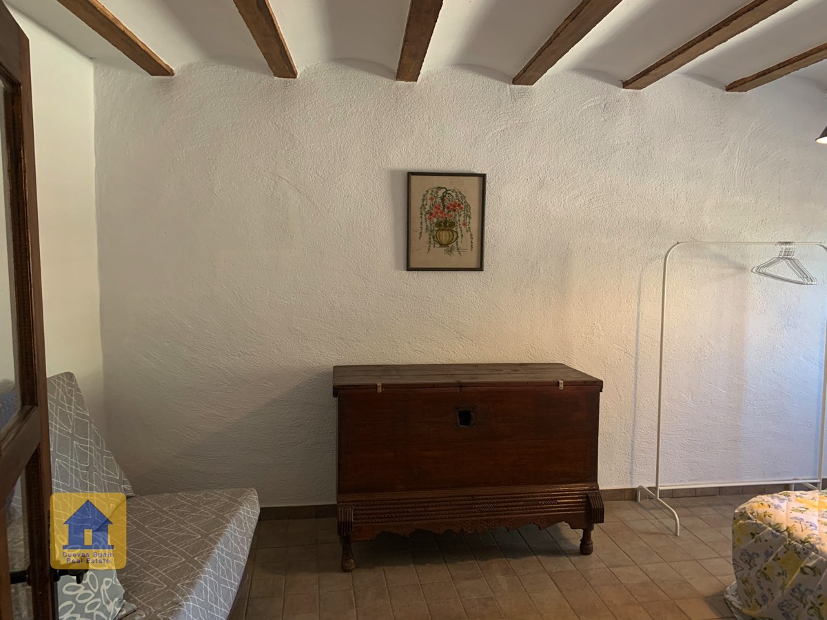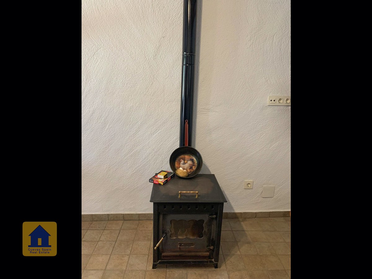 La maison dispose d'un salon ensoleillé avec un poêle à bois. La cuisine spacieuse dispose d'un garde-manger et a été conçue avec soin en alliant les styles modernes et traditionnels espagnols. Le salon et la cuisine se trouvent en partie dans des dépendances, ce qui permet à la lumière du soleil de pénétrer largement dans la maison. Un court couloir permet de retourner dans la partie cave. Il y a un hall central/snug avec une cheminée, 2 chambres spacieuses et une salle de bain récemment rénovée.