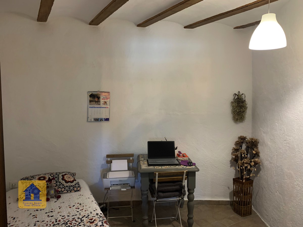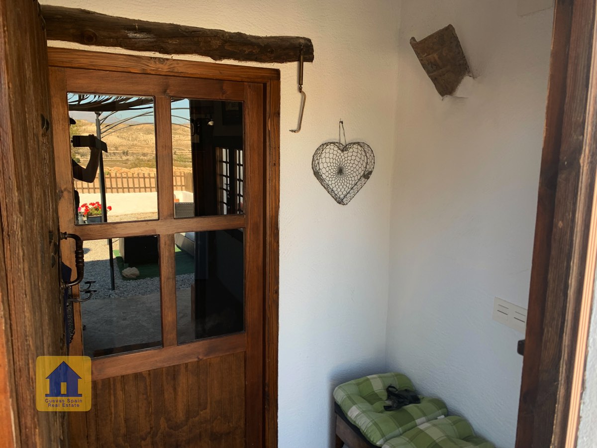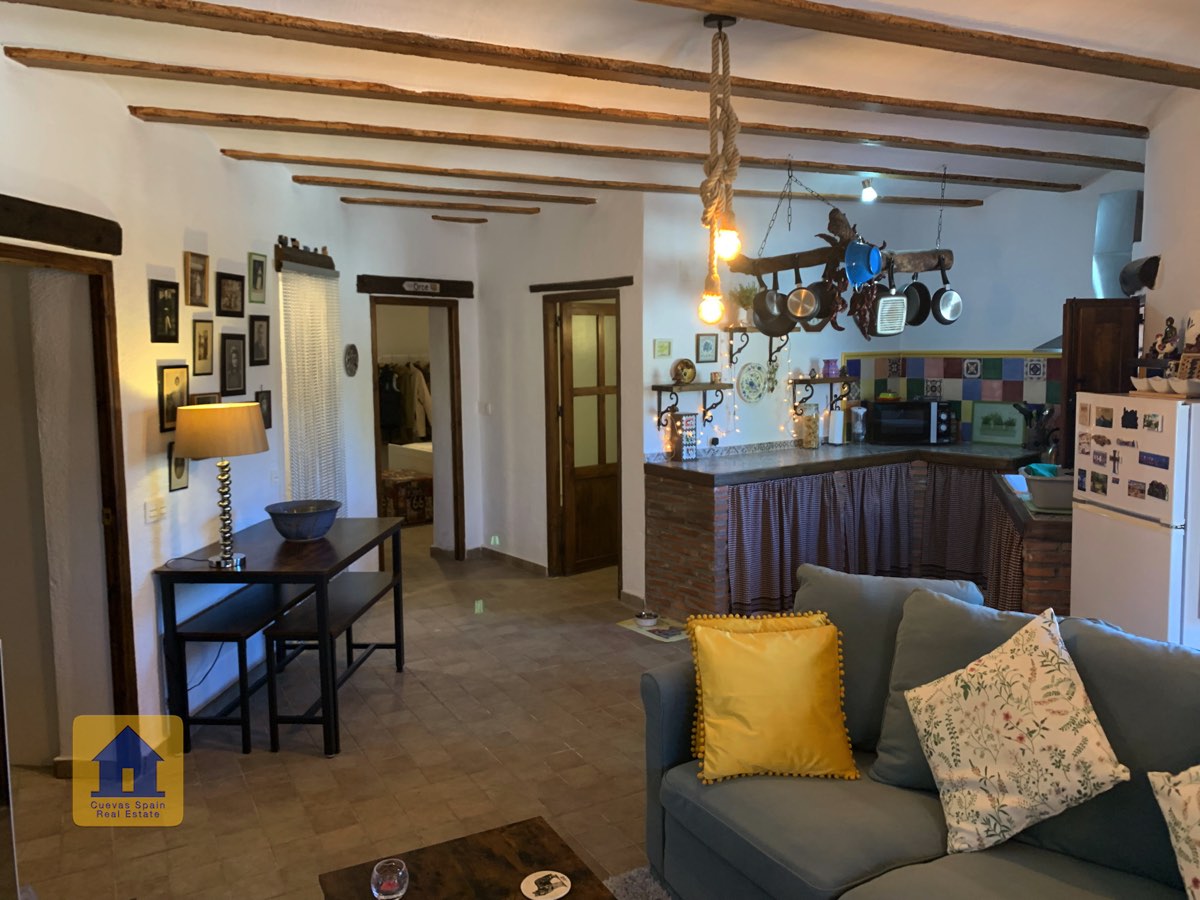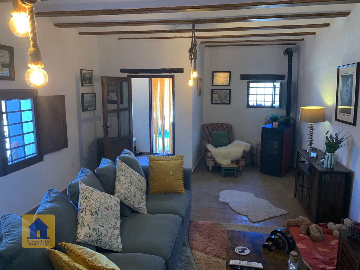 Esta casa cueva es una encantadora casa de vacaciones o de tiempo completo en el hermoso Altiplano de Granada, en el sur de España. La propiedad tiene un patio delantero totalmente vallado con espacio de almacenamiento a lo largo del lado de la casa. La casa ha sido cuidadosamente mantenida y tiene una cocina nueva, construida en el estilo rústico tradicional. La casa cueva tiene un vestíbulo, un amplio salón/comedor/cocina de planta abierta con una estufa de pellets, 3 dormitorios y 1 baño. Uno de los dormitorios sirve actualmente de gran despensa. Los suelos son de baldosas. Esta casa cueva fue anteriormente parte de un negocio de alquiler de vacaciones y una licencia turística puede ser fácilmente obtained.The casa tiene su propia electricidad, agua y conexiones a Internet. El aparcamiento está al otro lado del camino.