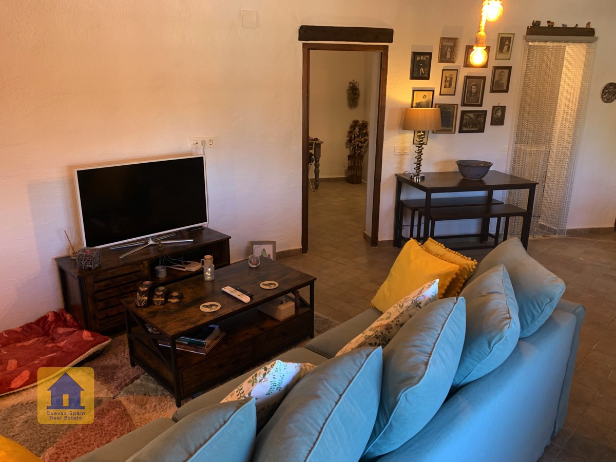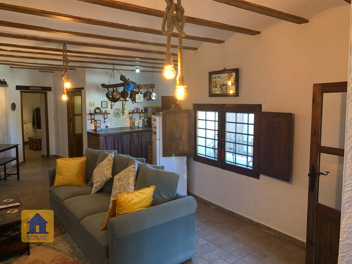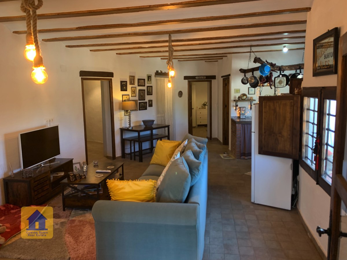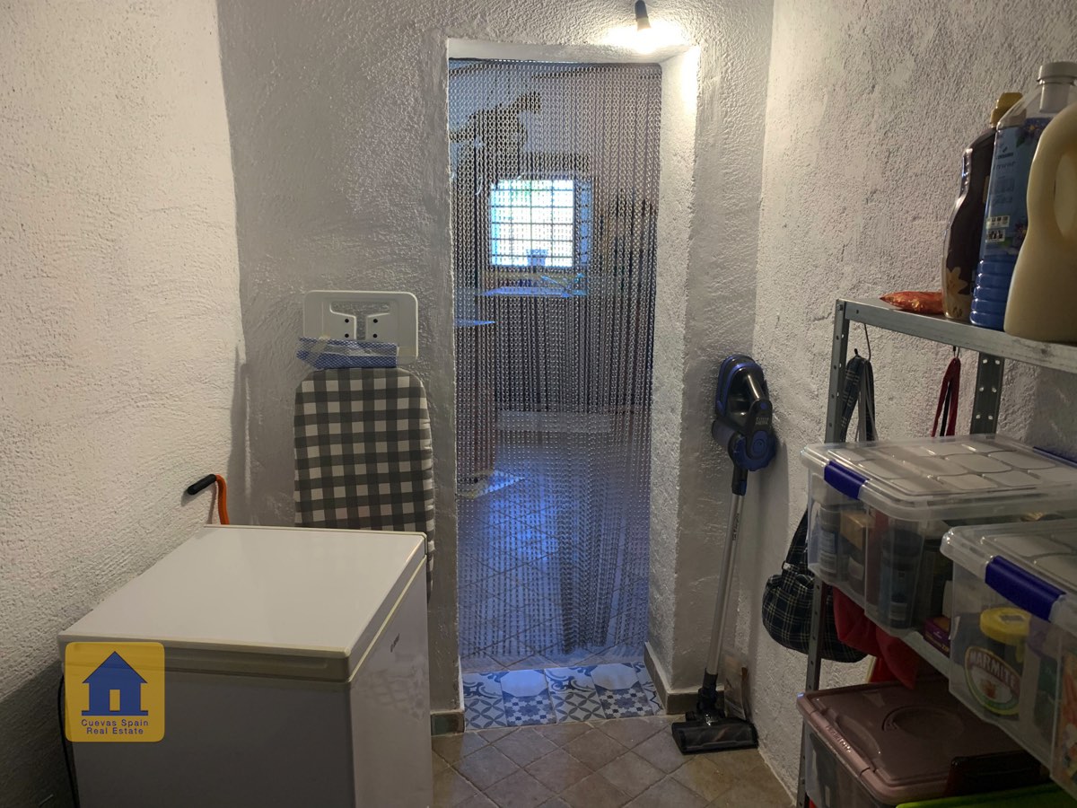 Esta casa cueva es una encantadora casa de vacaciones o de tiempo completo en el hermoso Altiplano de Granada, en el sur de España. La propiedad tiene un patio delantero totalmente vallado con espacio de almacenamiento a lo largo del lado de la casa. La casa ha sido cuidadosamente mantenida y tiene una cocina nueva, construida en el estilo rústico tradicional. La casa cueva tiene un vestíbulo, un amplio salón/comedor/cocina de planta abierta con una estufa de pellets, 3 dormitorios y 1 baño. Uno de los dormitorios sirve actualmente de gran despensa. Los suelos son de baldosas. Esta casa cueva fue anteriormente parte de un negocio de alquiler de vacaciones y una licencia turística puede ser fácilmente obtained.The casa tiene su propia electricidad, agua y conexiones a Internet. El aparcamiento está al otro lado del camino.