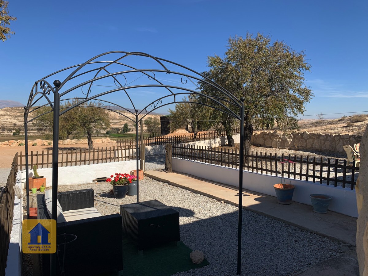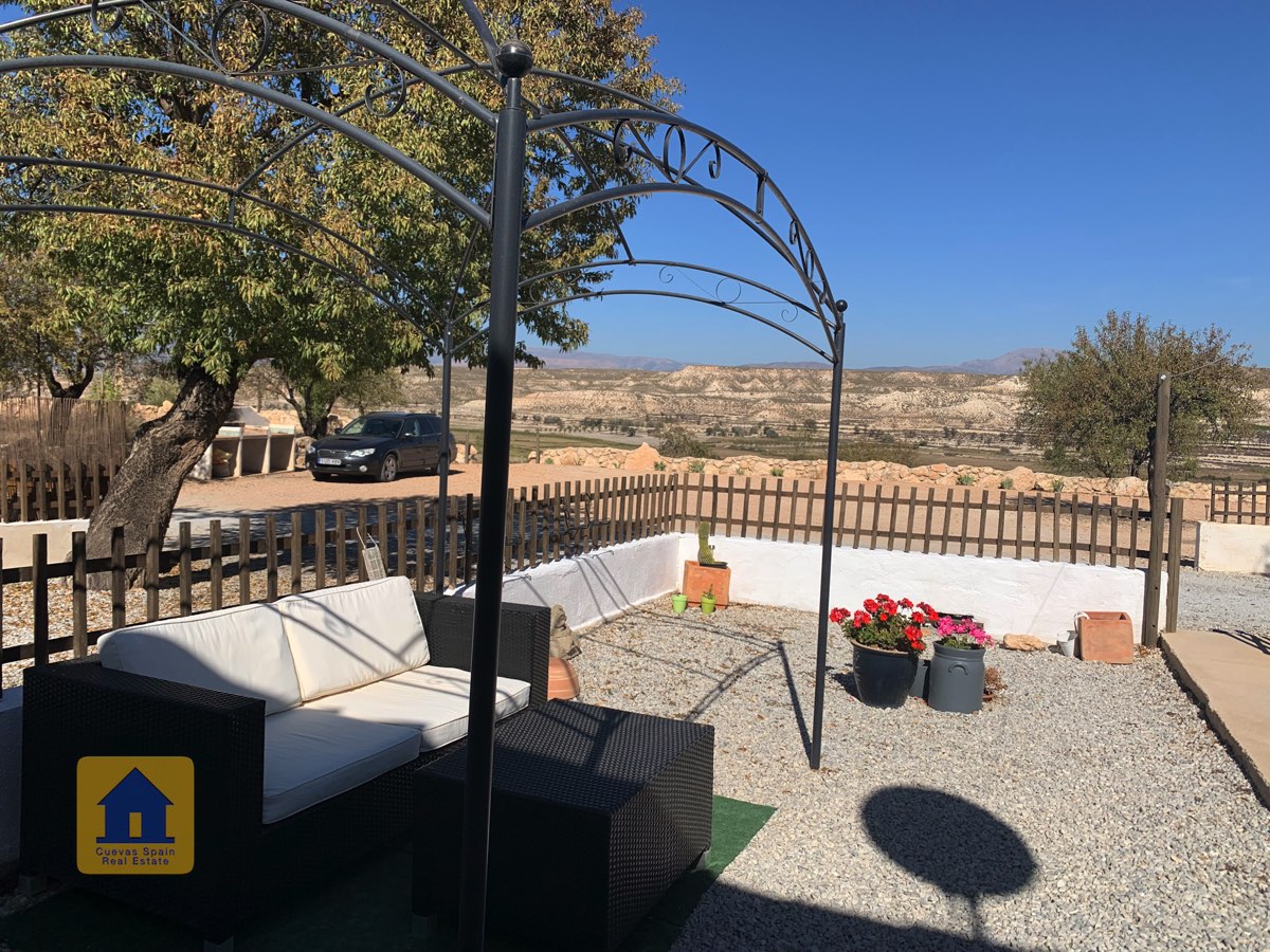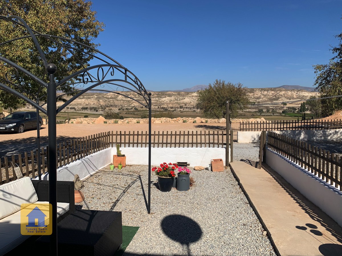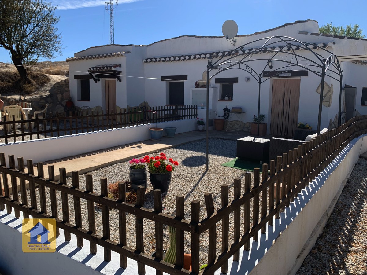 Esta casa cueva es una encantadora casa de vacaciones o de tiempo completo en el hermoso Altiplano de Granada, en el sur de España. La propiedad tiene un patio delantero totalmente vallado con espacio de almacenamiento a lo largo del lado de la casa. La casa ha sido cuidadosamente mantenida y tiene una cocina nueva, construida en el estilo rústico tradicional. La casa cueva tiene un vestíbulo, un amplio salón/comedor/cocina de planta abierta con una estufa de pellets, 3 dormitorios y 1 baño. Uno de los dormitorios sirve actualmente de gran despensa. Los suelos son de baldosas. Esta casa cueva fue anteriormente parte de un negocio de alquiler de vacaciones y una licencia turística puede ser fácilmente obtained.The casa tiene su propia electricidad, agua y conexiones a Internet. El aparcamiento está al otro lado del camino.