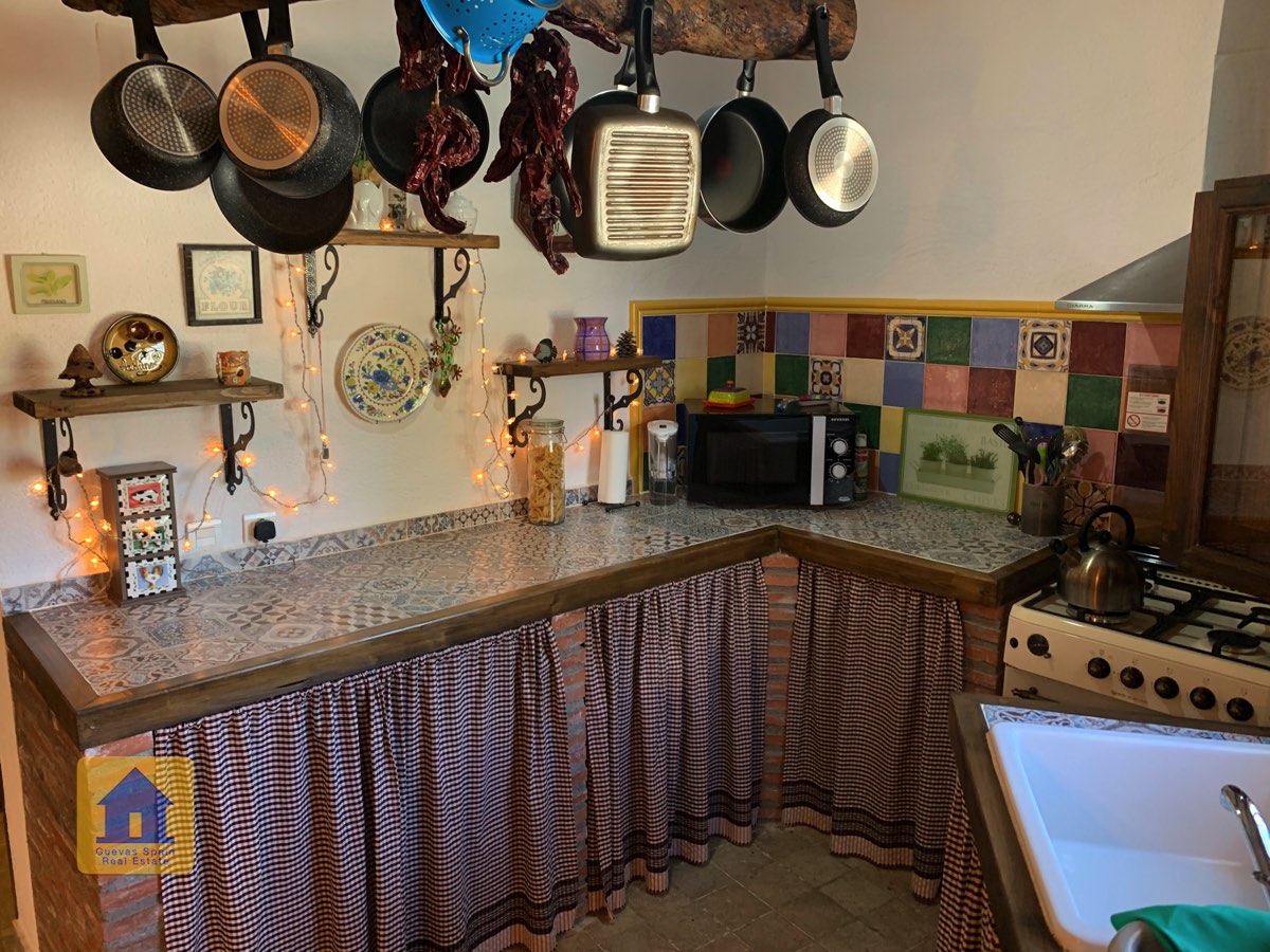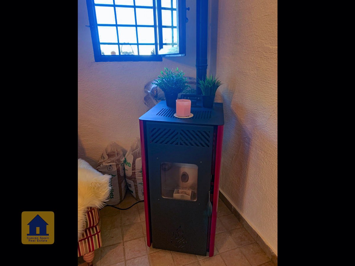 This cave house is a delightful holiday home or full-time home on the beautiful Altiplano de Granada in southern Spain. The property has a fully fenced front patio with storage space along the side of the house. The house has been carefully maintained and has a new kitchen, built in the traditional rustic style. The cave house has a vestibule, a spacious open plan salon/dining room/kitchen with a pellet burner, 3 bedrooms and 1 bathroom. One of the bedrooms currently serves as a large pantry. The floors are fully tiled. This cave house was previously part of a holiday rental business and a tourist licence can be easily obtained. The house has its own electricity, water and internet connections. Parking is across the way.