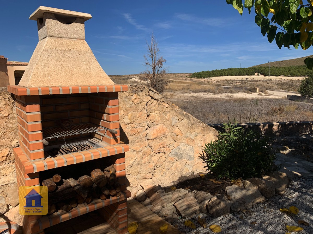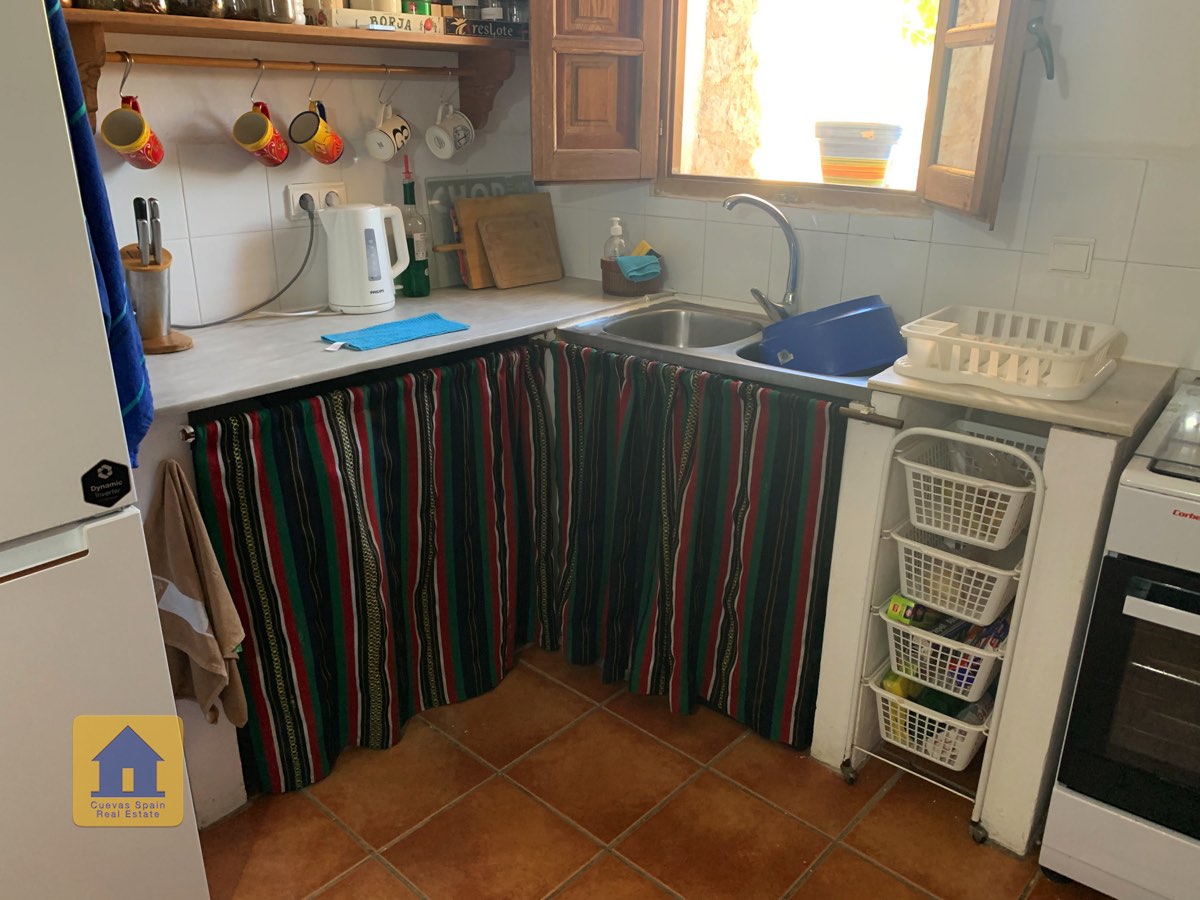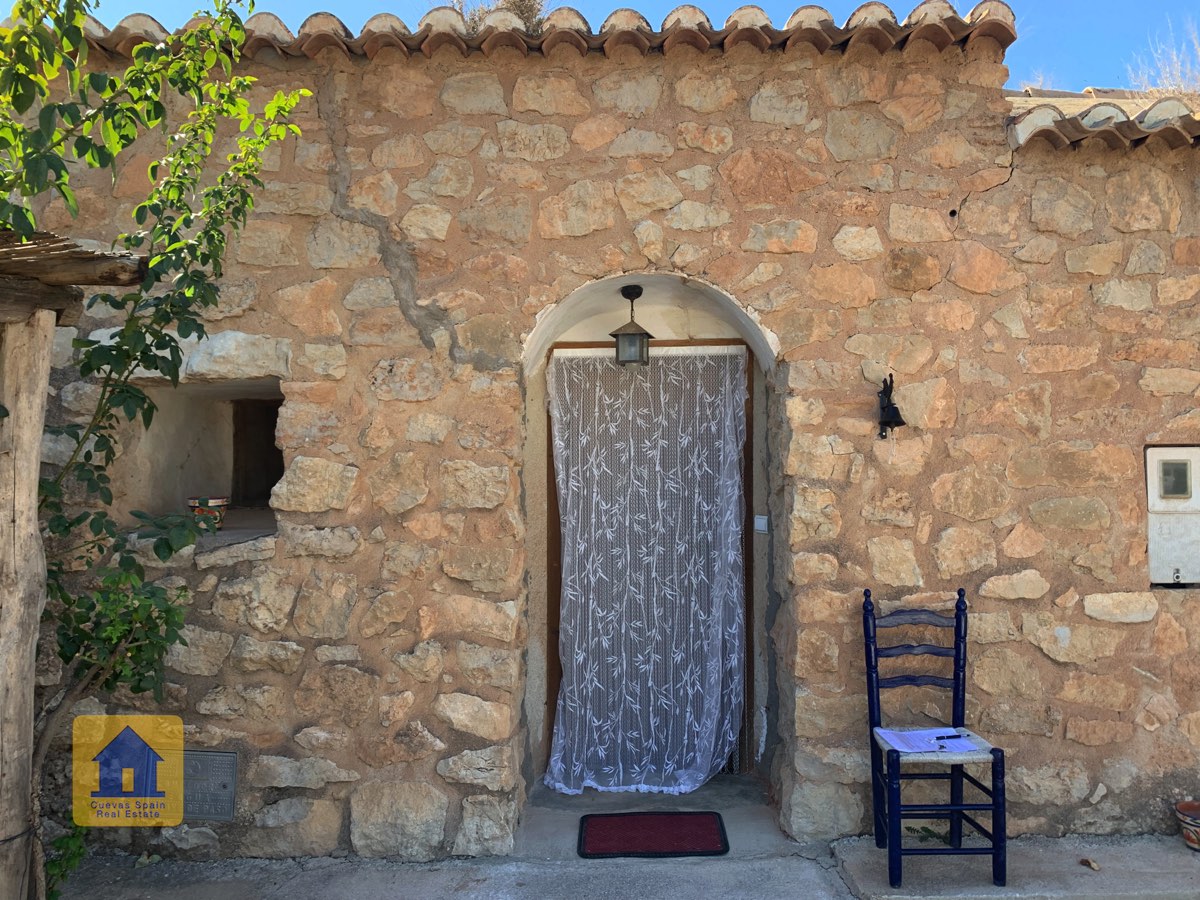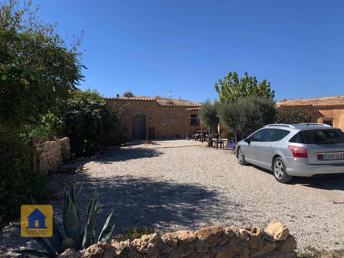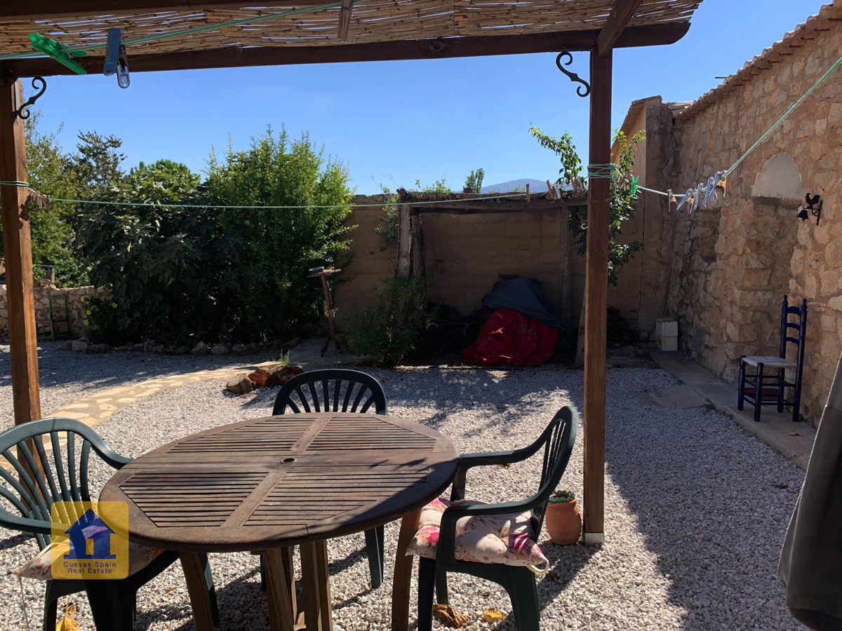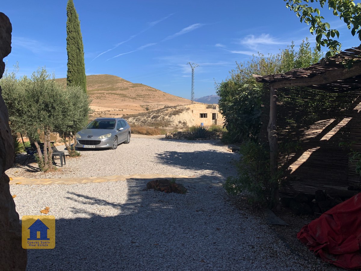 L'extérieur de la grotte présente la pierre caractéristique de Fuente Nueva et une finition rustique dans les tons de terre. La propriété dispose d'un grand patio avec une pergola et un barbecue en briques. Il y a plusieurs oliviers, un cyprès et un figuier. Un gracieux chemin incrusté de pierres traverse le patio. Il y a un grand espace de stationnement. L'espace de stockage couvert en bois pourrait être agrandi pour devenir un abri de voiture. Il y a un mur en pierre de chaque côté de la propriété. Le toit au-dessus de la grotte offre une vue à 360°, idéal pour y faire une terrasse.