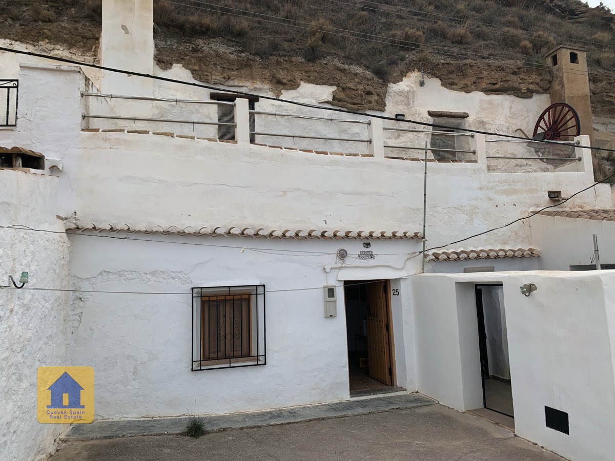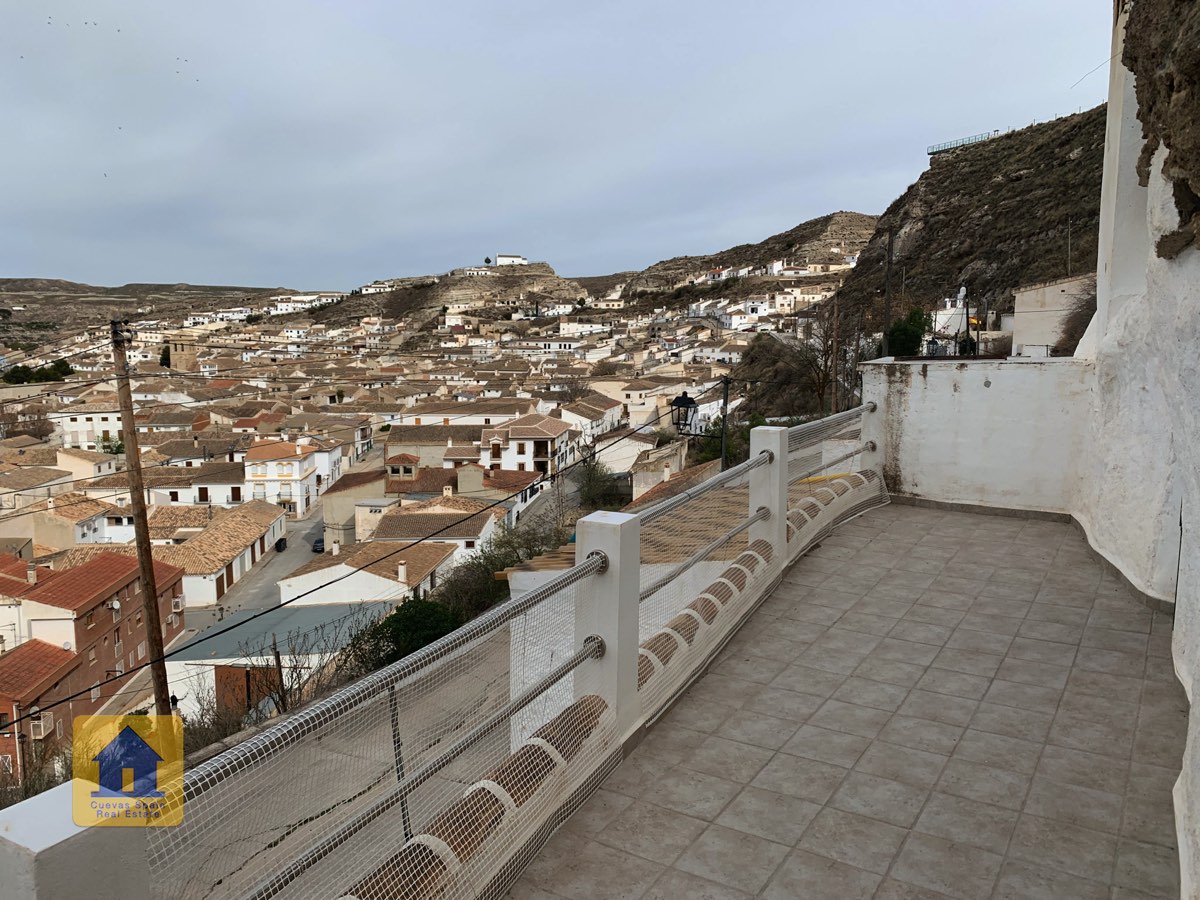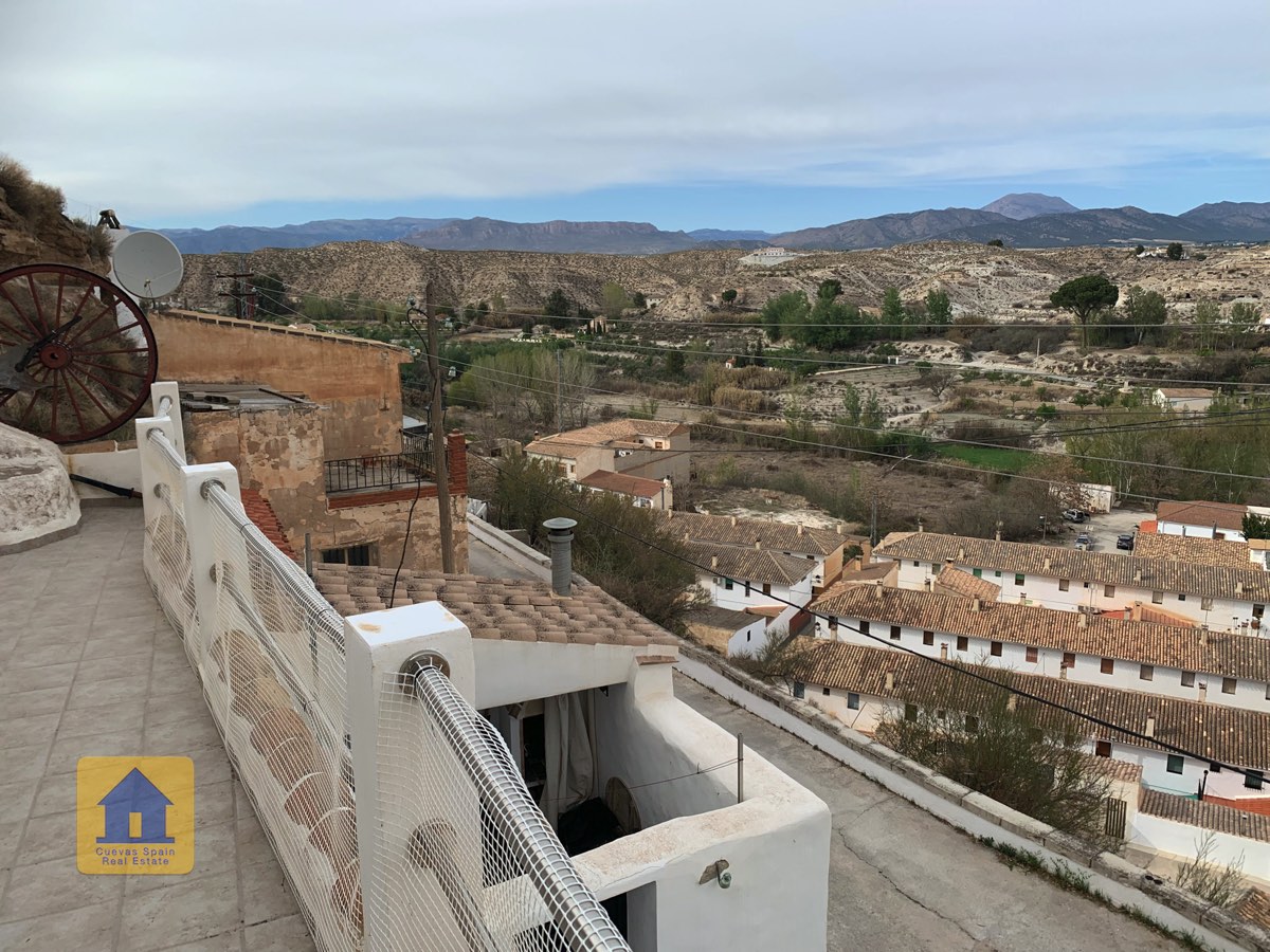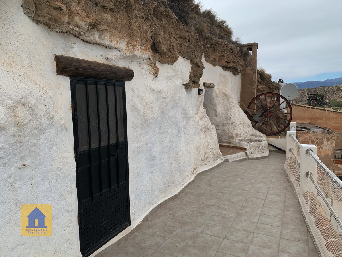 Cueva Las Canalejas is a wonderfully quirky 2-storey cave with lots of traditional character and great views of the beautiful village of Galera and the Sierra de Cazorla mountains. This property offers three outdoor spaces! There is an open front patio, an enclosed front patio, and a wide balcony terrace on the upper floor. Downstairs, the cave comprises a living room, kitchen, bathroom and 2+ bedrooms. Upstairs are 3 bedrooms and the terrace.