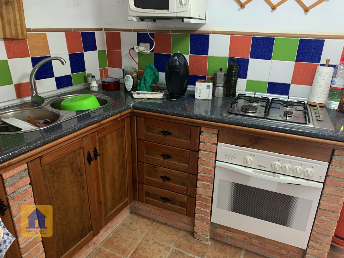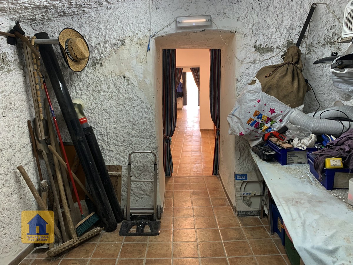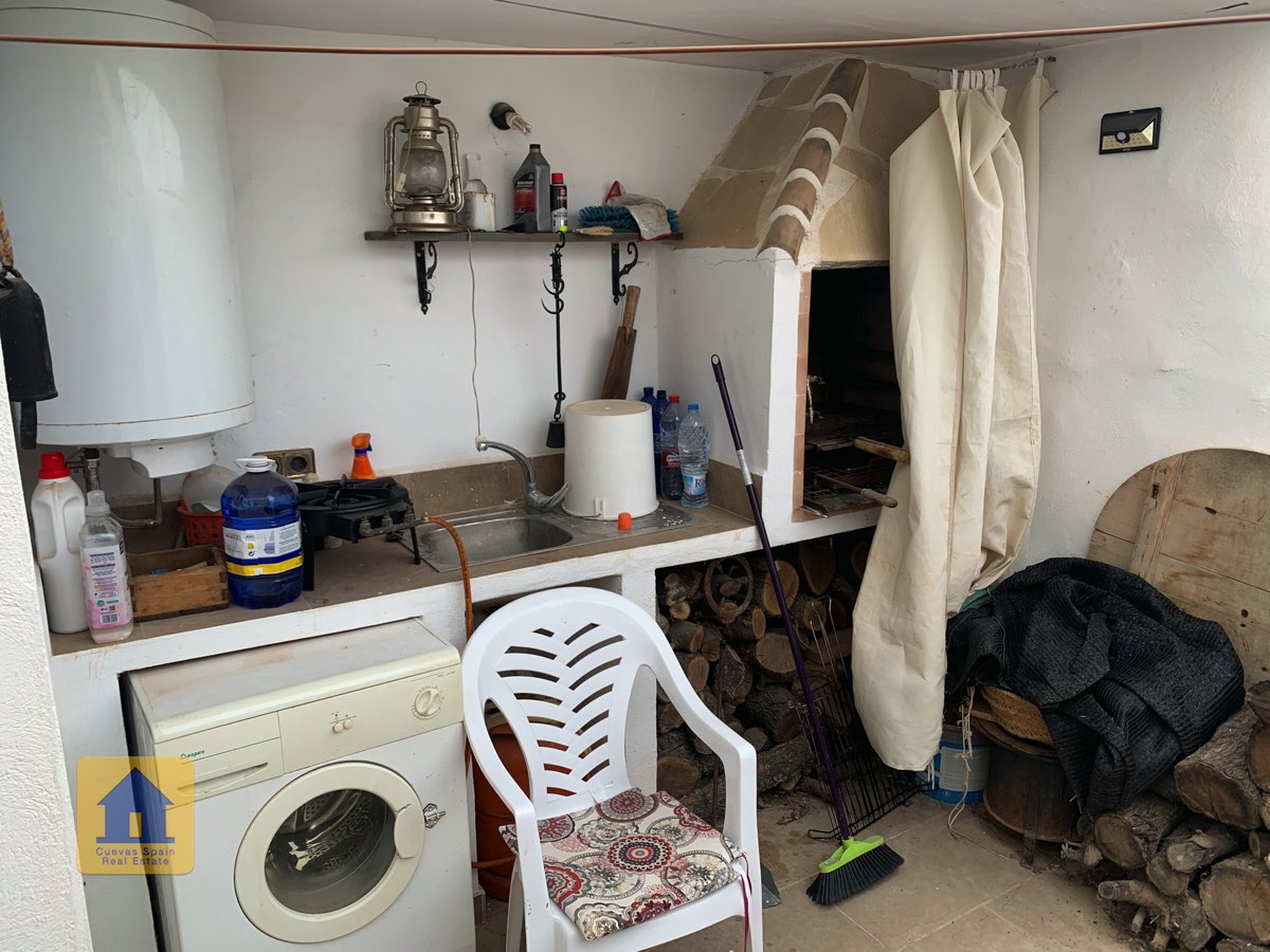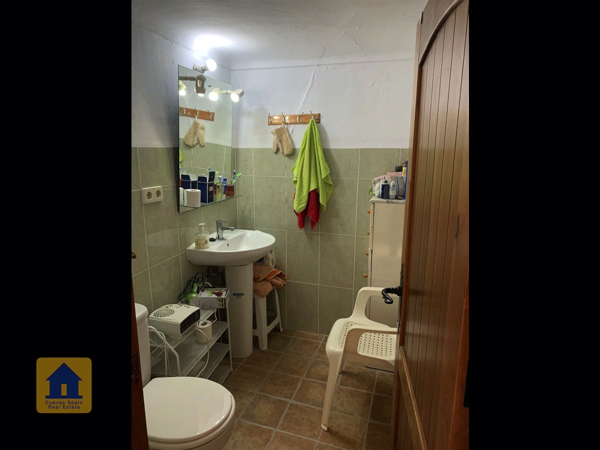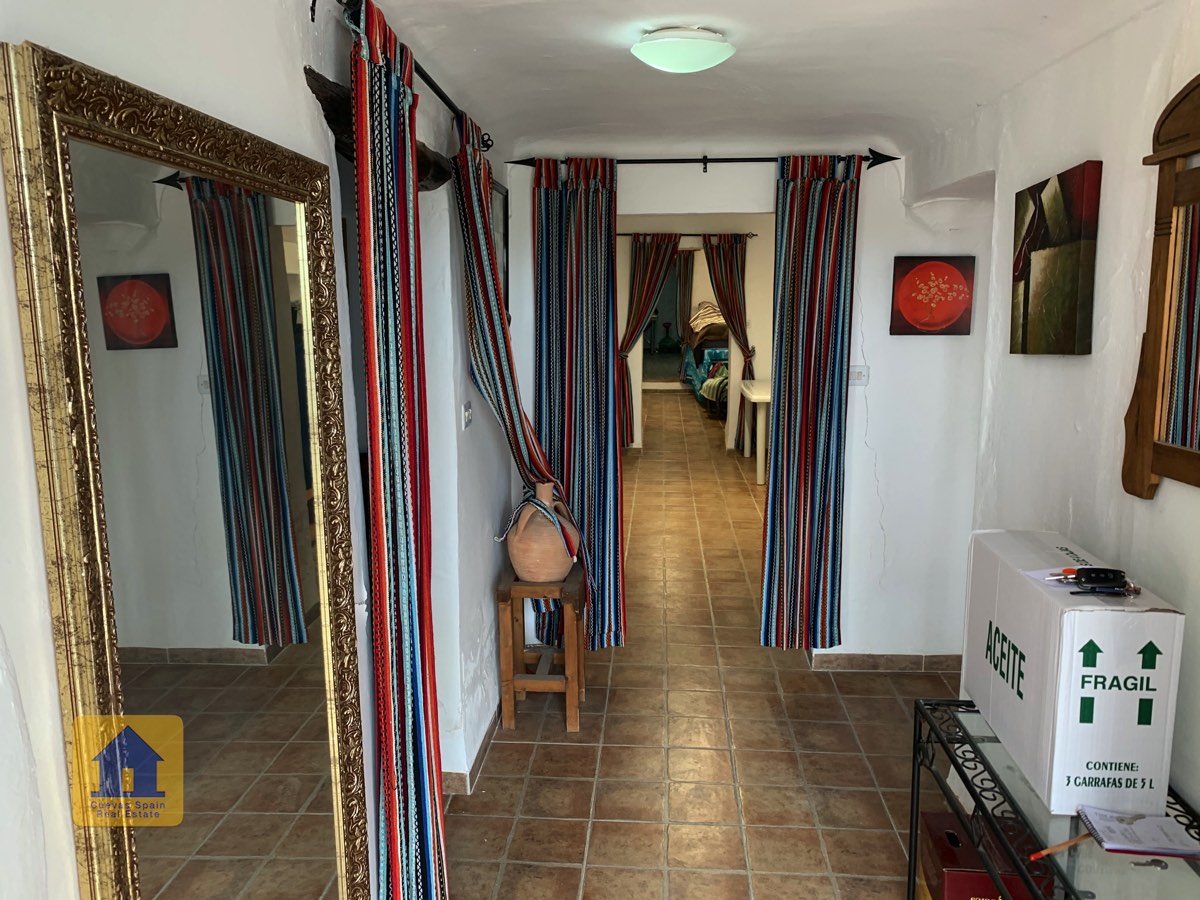 The condition of the cave is basic and it could benefit from some updating. The house is decorated very simply and is sold with little furniture. A nice traditional feature is the curtains hanging at the entrances to the living room and two of the bedrooms. In wintertime, the thick curtains can be used to hold in the heat or minimise the space you need to heat. You could choose to enhance this traditional style or you could decorate this cave with your own personal style. It’s a palette that’s open to your creativity. Either way, there’s lots of potential.