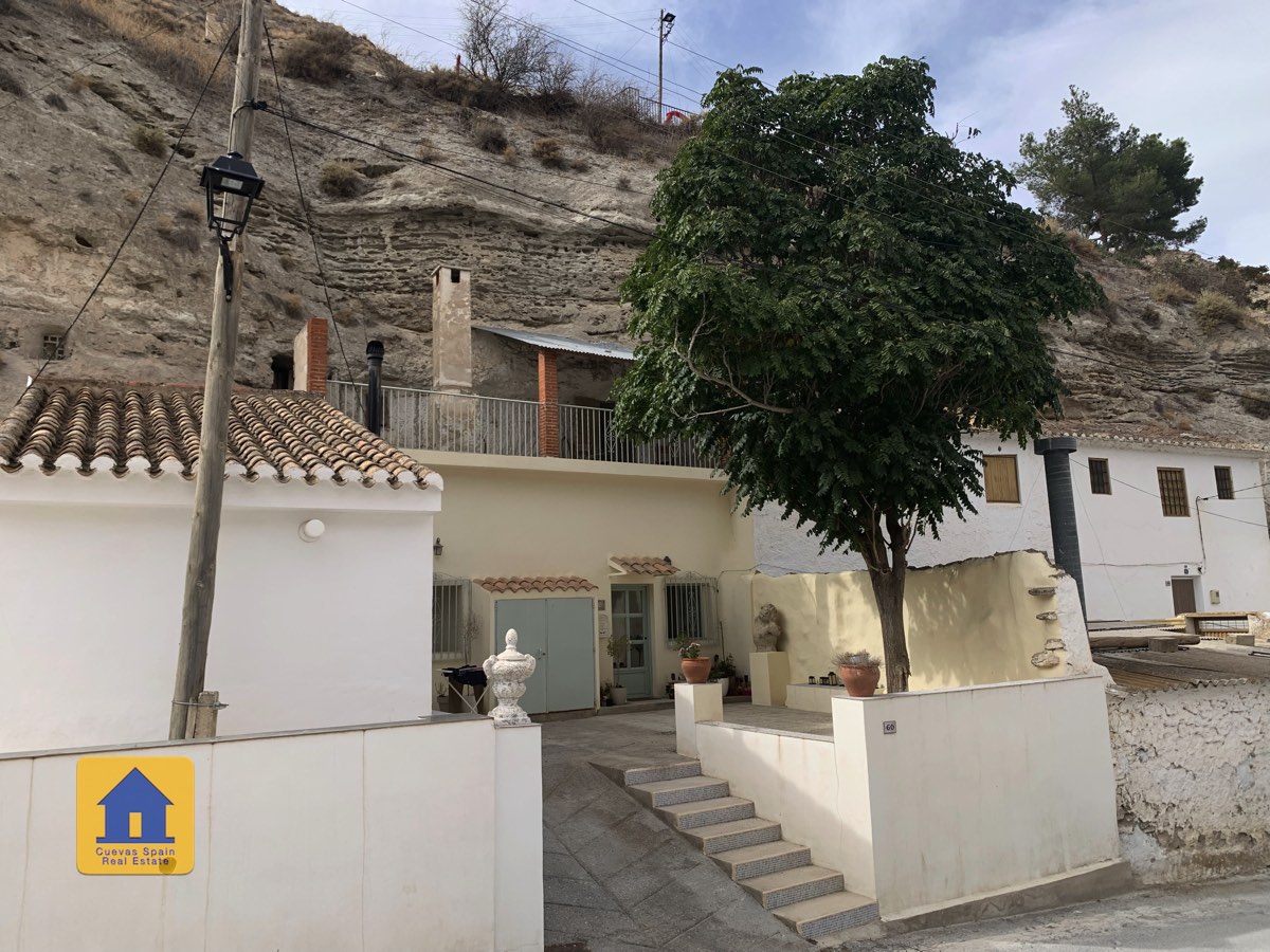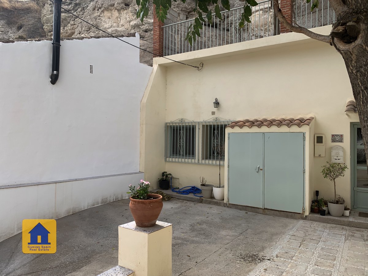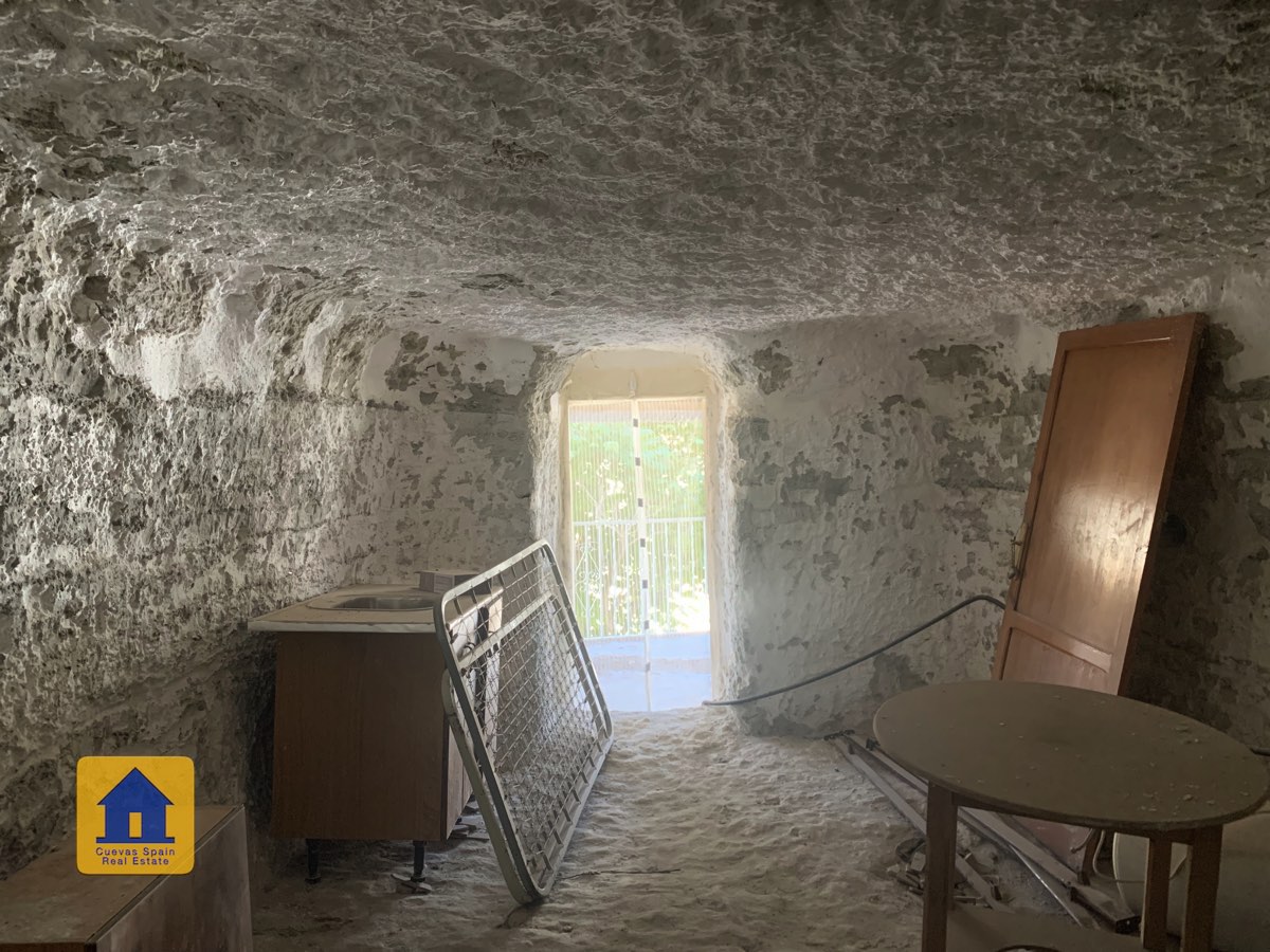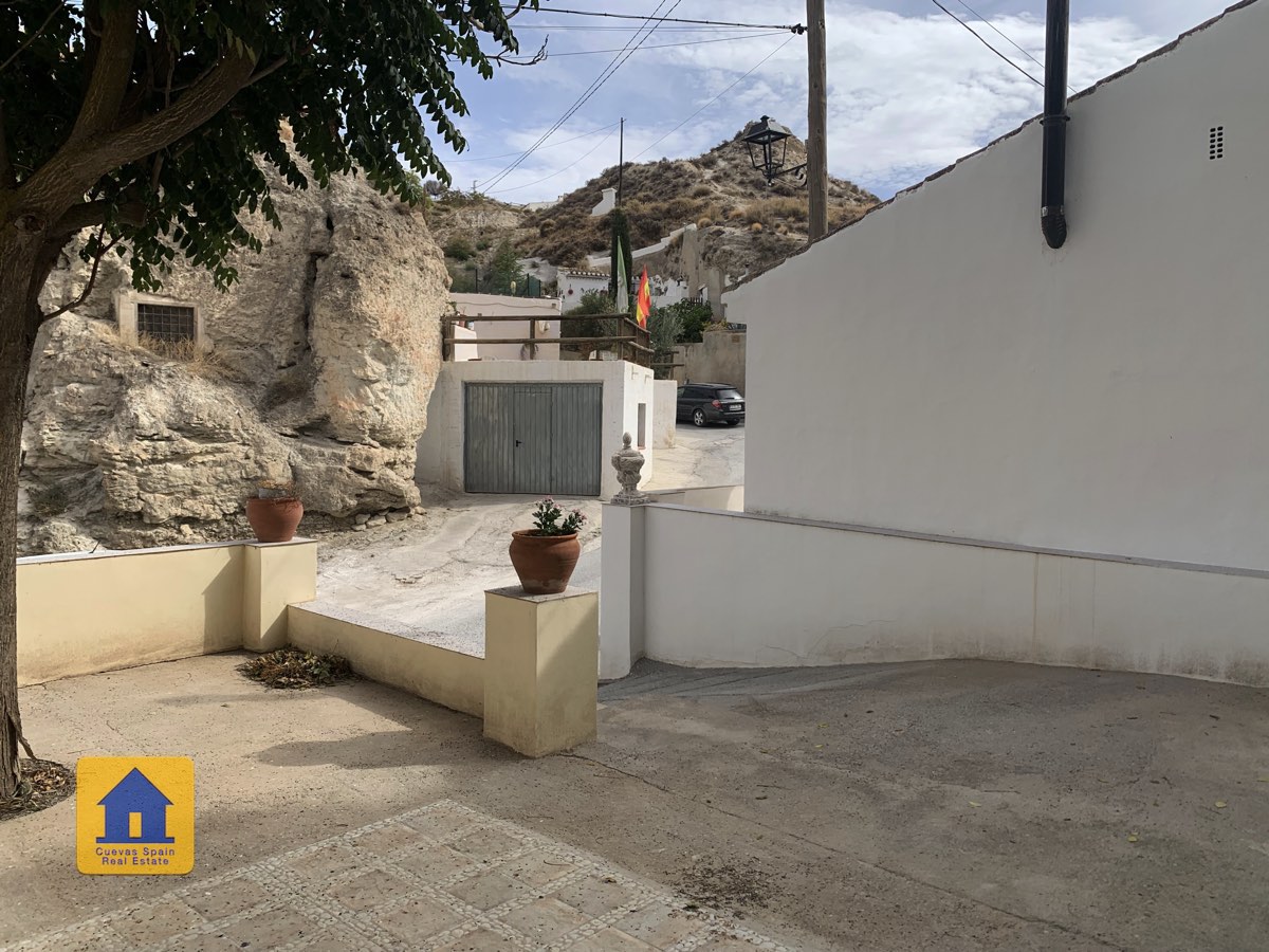 Cette grotte de Galera est magnifiquement rénovée dans un style urbain moderne. La propriété dispose d'un patio spacieux avec un arbre d'ombrage et d'une place de parking. La grotte comprend un salon, une cuisine, un garde-manger, une chambre principale, une salle de bains, une chambre d'amis/bureau et une armoire. A l'étage, il y a 2 chambres non formées et une grande terrasse couverte, avec le potentiel d'être un charmant appartement.