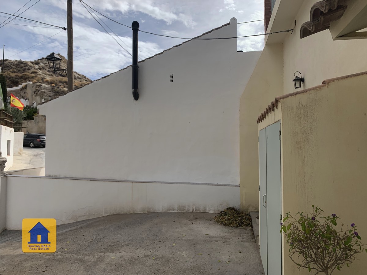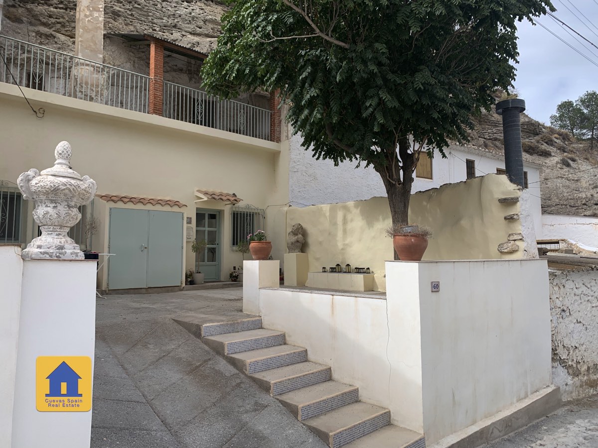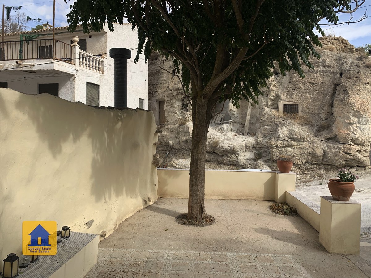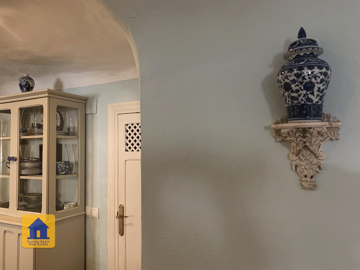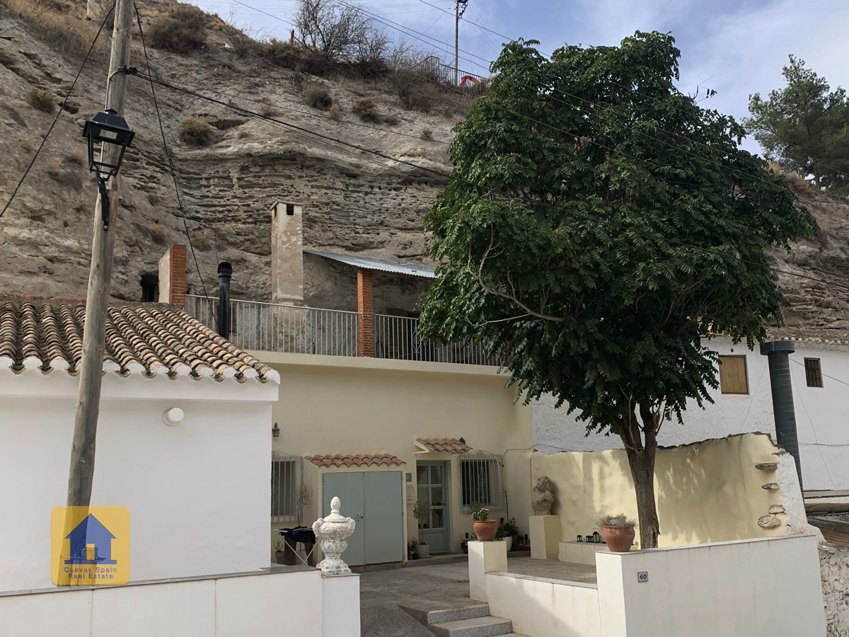 Cette grotte de Galera est magnifiquement rénovée dans un style urbain moderne. La propriété dispose d'un patio spacieux avec un arbre d'ombrage et d'une place de parking. La grotte comprend un salon, une cuisine, un garde-manger, une chambre principale, une salle de bains, une chambre d'amis/bureau et une armoire. A l'étage, il y a 2 chambres non formées et une grande terrasse couverte, avec le potentiel d'être un charmant appartement.