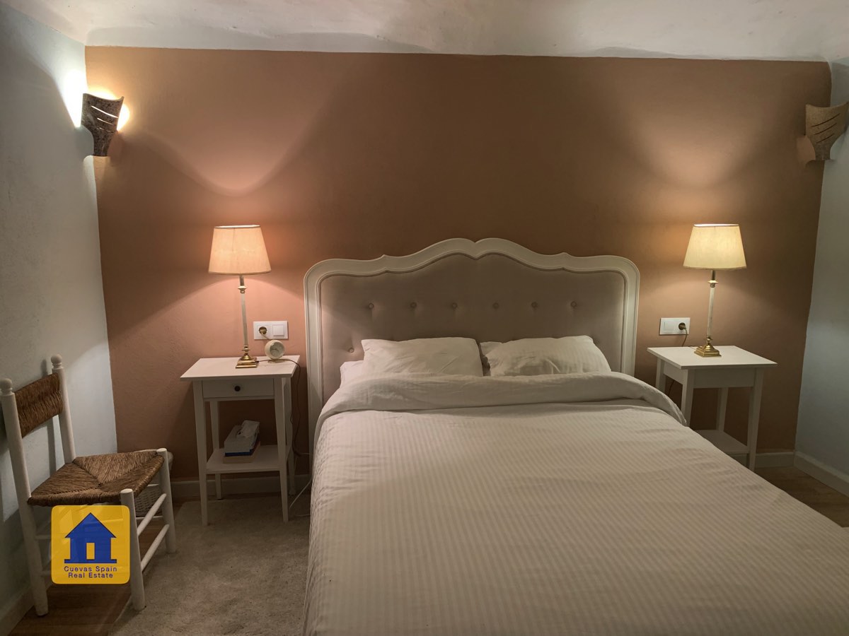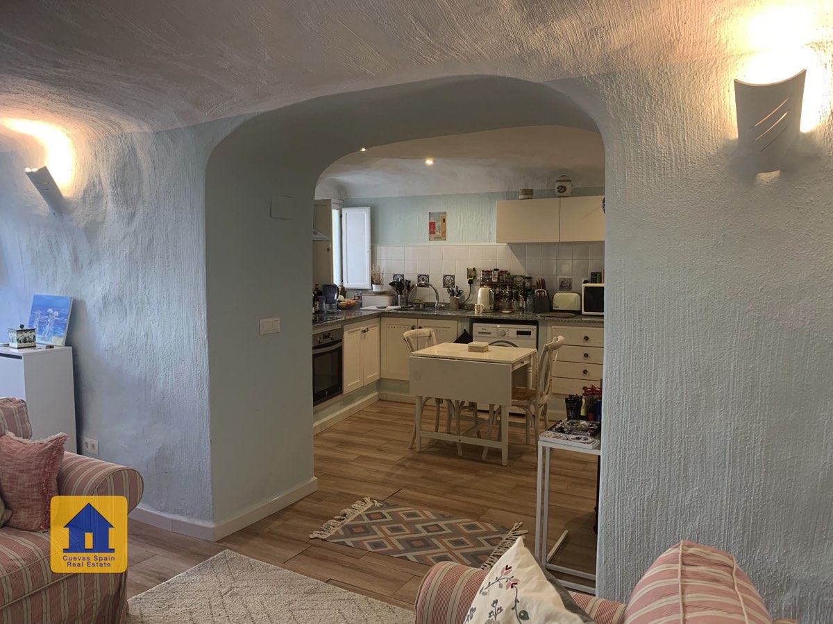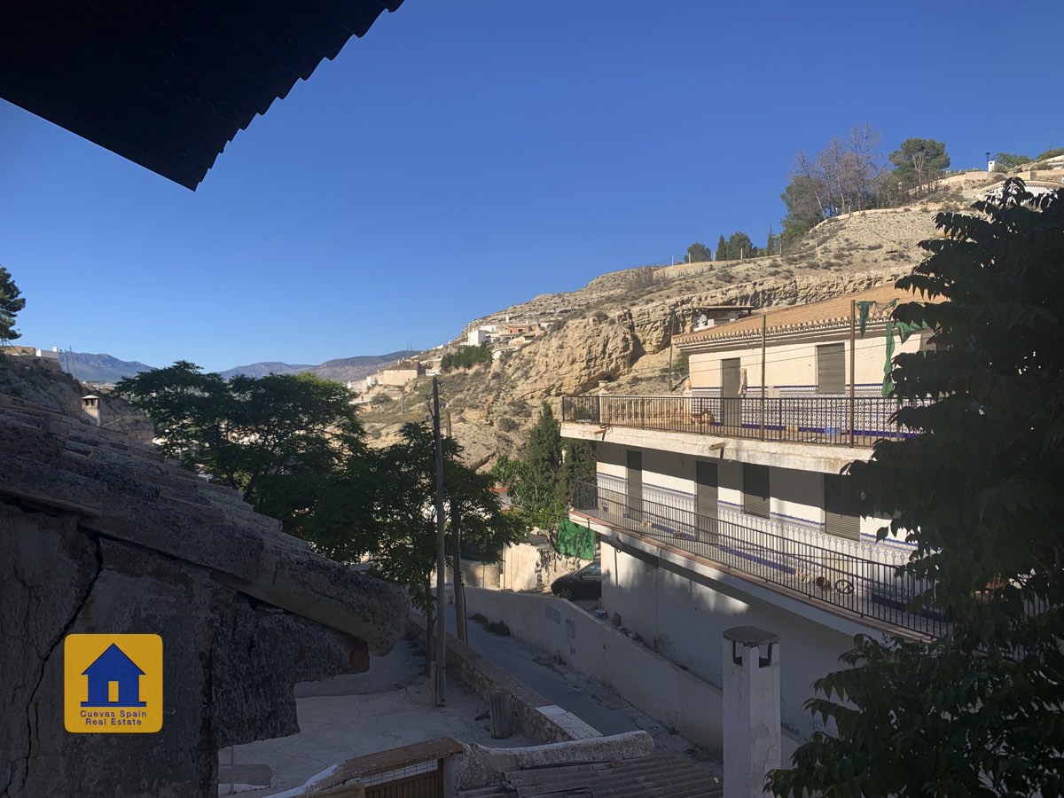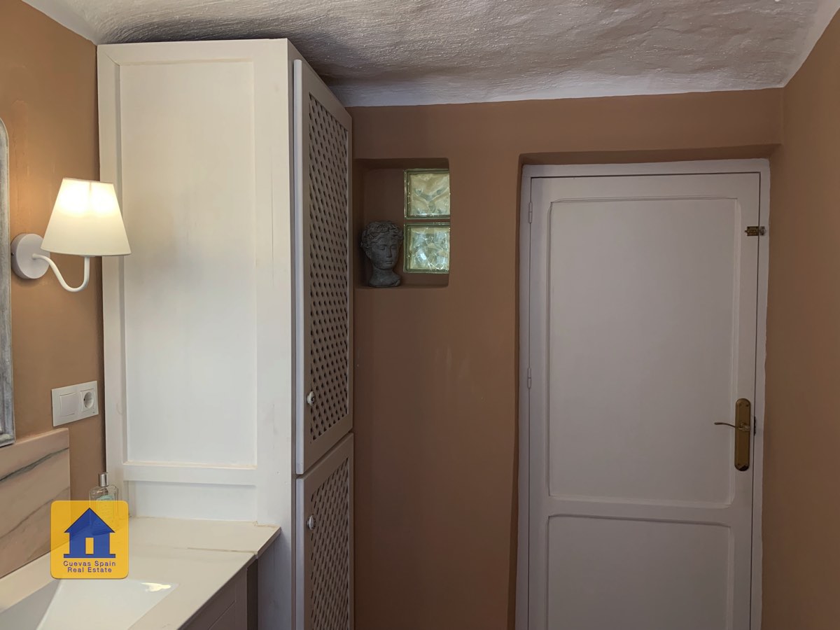 Cette grotte de Galera est magnifiquement rénovée dans un style urbain moderne. La propriété dispose d'un patio spacieux avec un arbre d'ombrage et d'une place de parking. La grotte comprend un salon, une cuisine, un garde-manger, une chambre principale, une salle de bains, une chambre d'amis/bureau et une armoire. A l'étage, il y a 2 chambres non formées et une grande terrasse couverte, avec le potentiel d'être un charmant appartement.