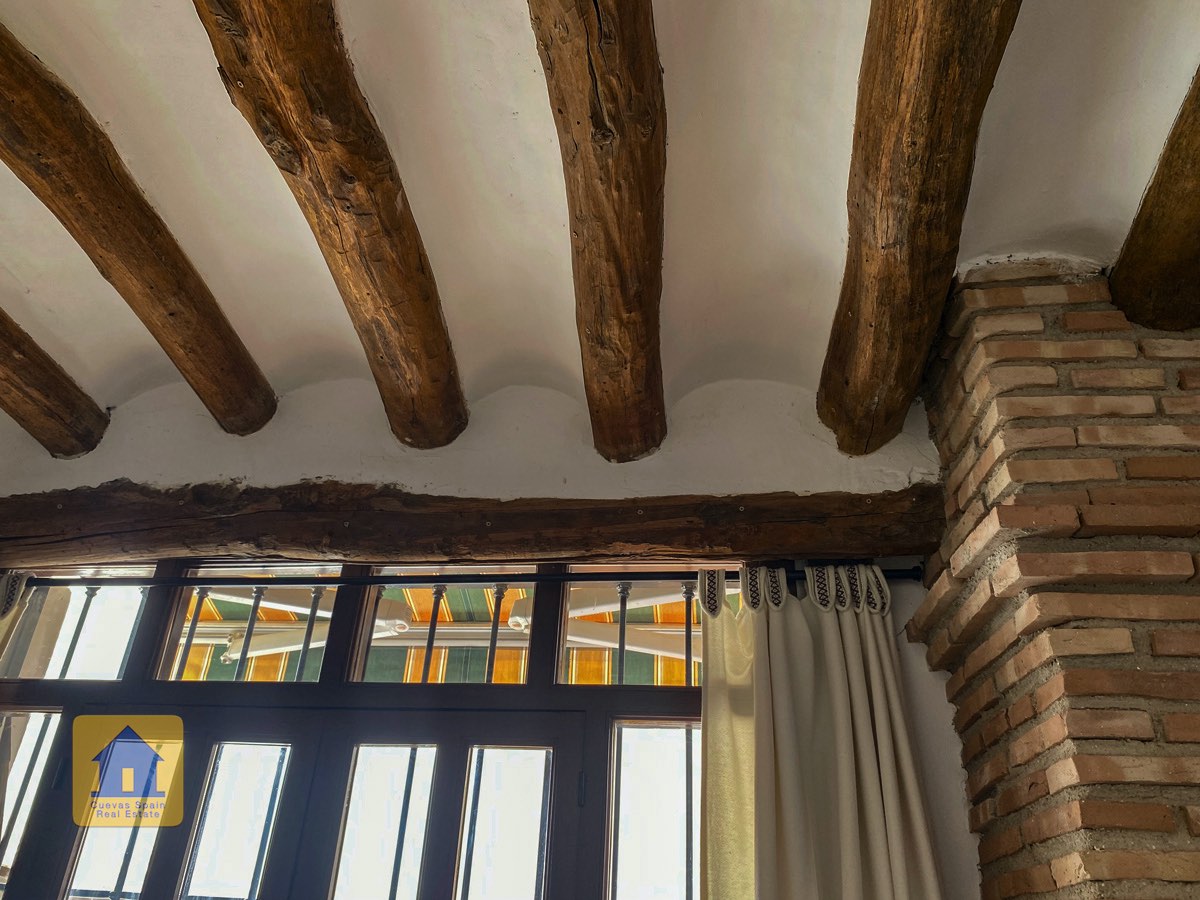 La maison est un magnifique exemple de style ancien avec de hauts plafonds, d'épaisses poutres en bois et des carreaux de sol en terre cuite d'origine. Les pièces de jour sont lumineuses et dotées de grandes fenêtres. La maison est meublée avec des meubles de qualité qui sont négociables.
