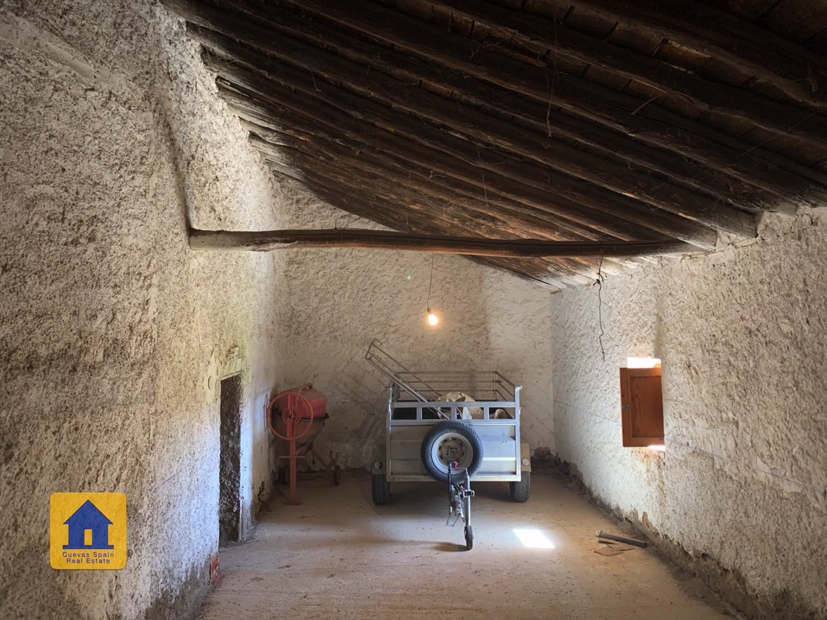 Cueva Joana se encuentra en una cresta por encima del impresionante Cañón de Gor en el Geoparque de Granada. Esta propiedad está orientada al este-sureste y consta de una gran casa cueva con un enorme patio delantero, un garaje para 2 coches con un taller, y 1800m2 de terreno abierto con 650m2 de zona vallada y cochera para 4 coches. La casa tiene una sala de estar, 2 comedores, cocina, una despensa, 3-5 dormitorios y un baño. La propiedad tiene toneladas de potencial como una casa de familia con un taller, un negocio, o para el turismo.