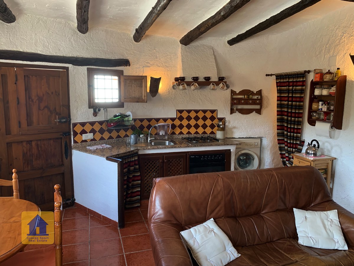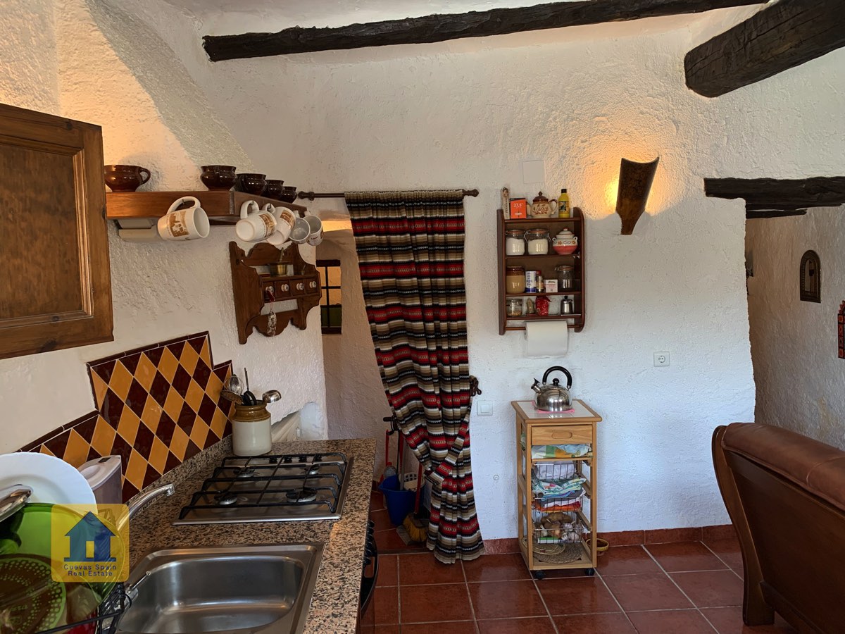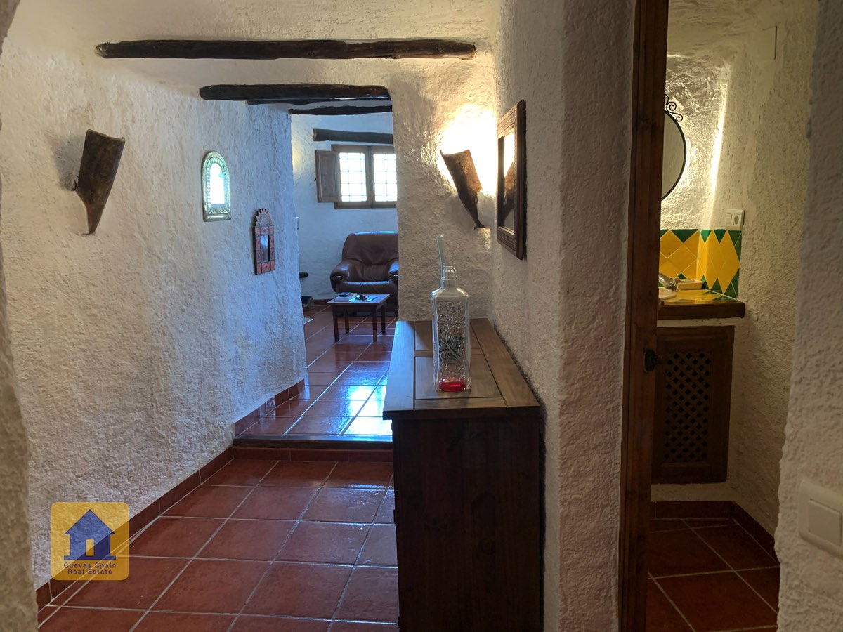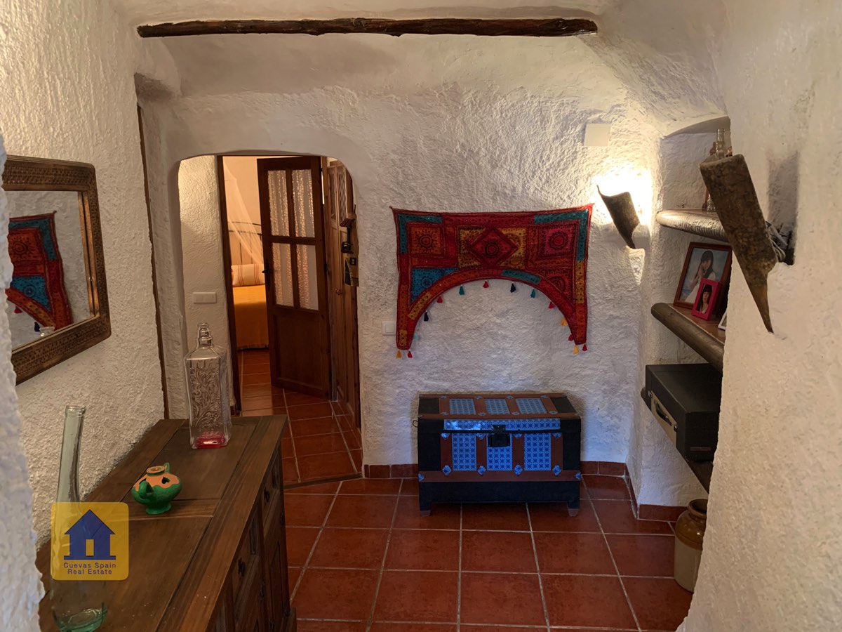 La casa cueva está bellamente embaldosada. Ha sido cuidadosamente diseñado con espacio para todos los elementos esenciales. La propiedad está impecablemente acabada con materiales de calidad. Está lista para entrar a vivir.