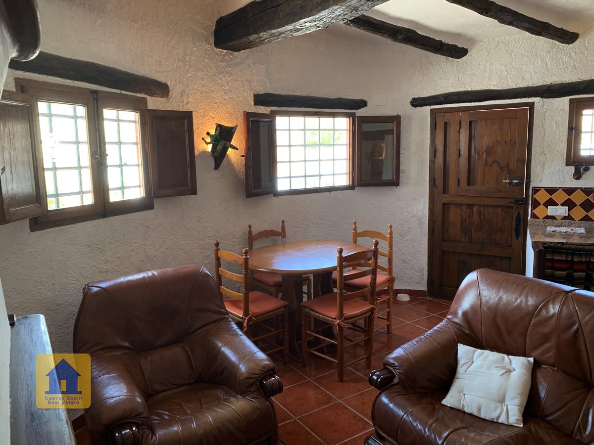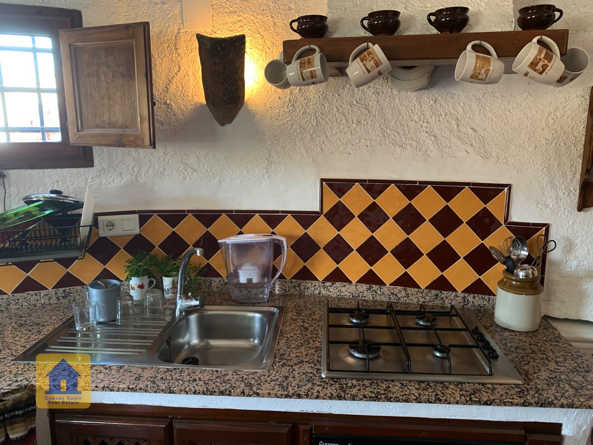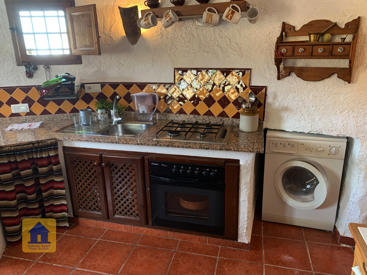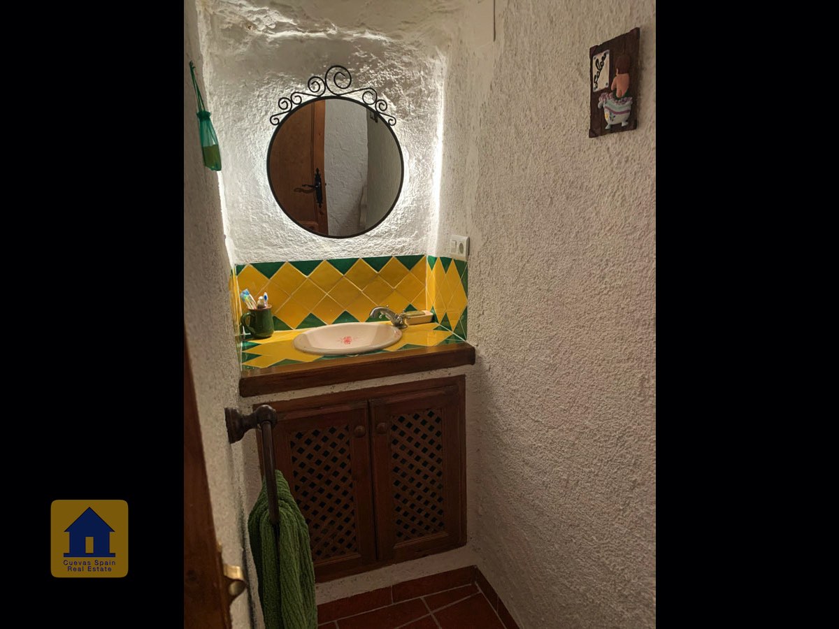 La casa cueva está bellamente embaldosada. Ha sido cuidadosamente diseñado con espacio para todos los elementos esenciales. La propiedad está impecablemente acabada con materiales de calidad. Está lista para entrar a vivir.