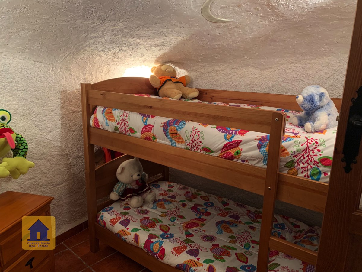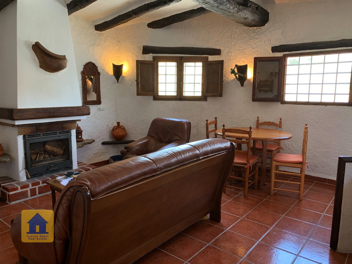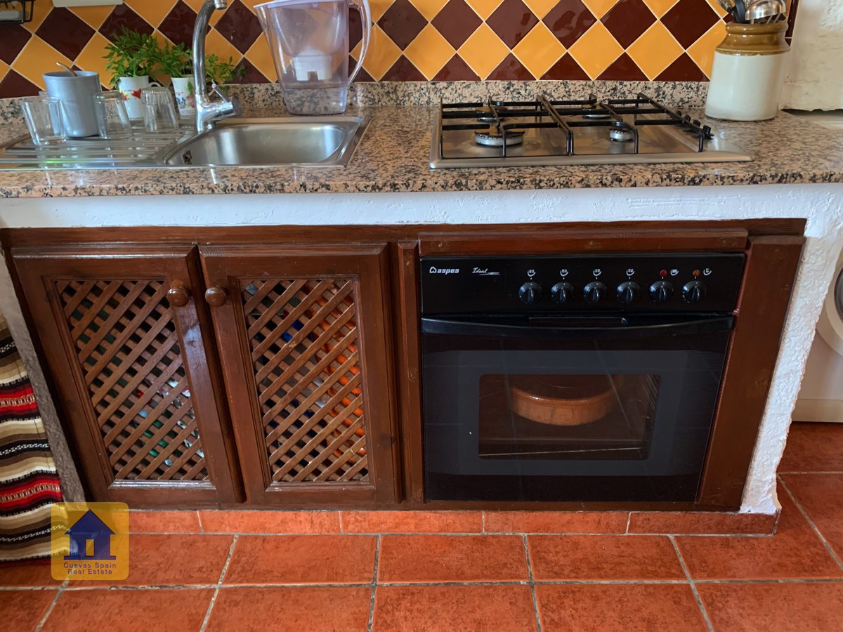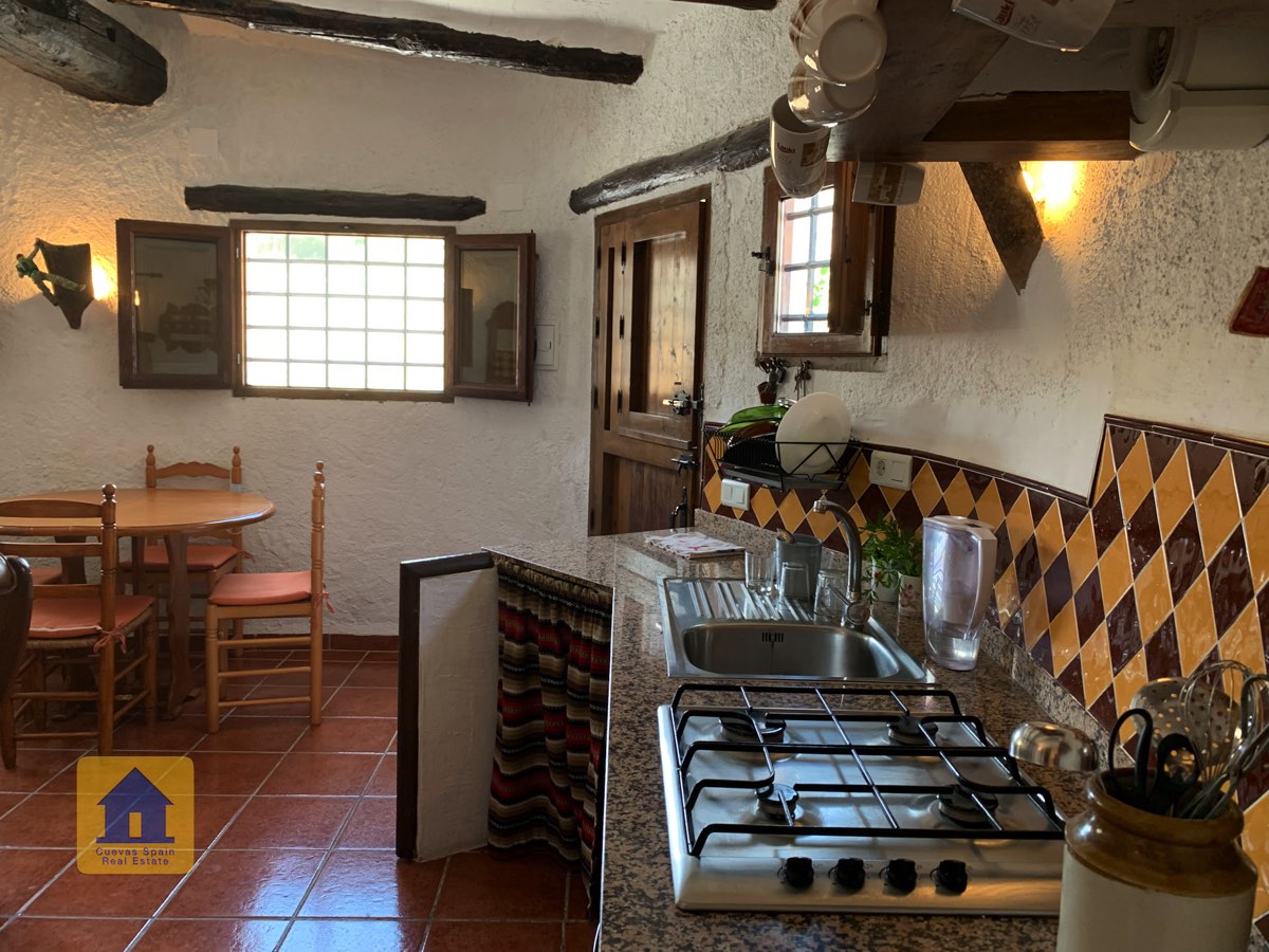 La casa cueva está bellamente embaldosada. Ha sido cuidadosamente diseñado con espacio para todos los elementos esenciales. La propiedad está impecablemente acabada con materiales de calidad. Está lista para entrar a vivir.
