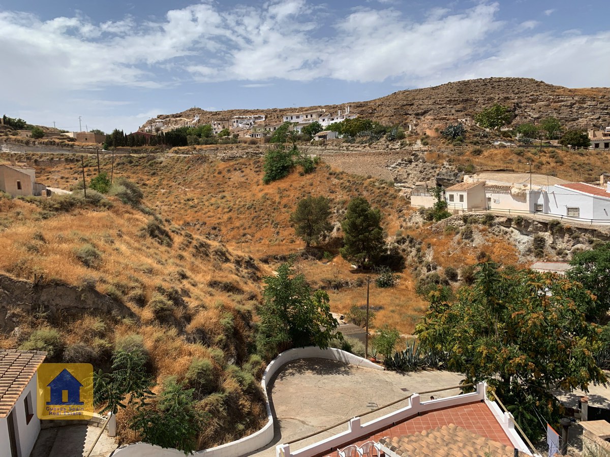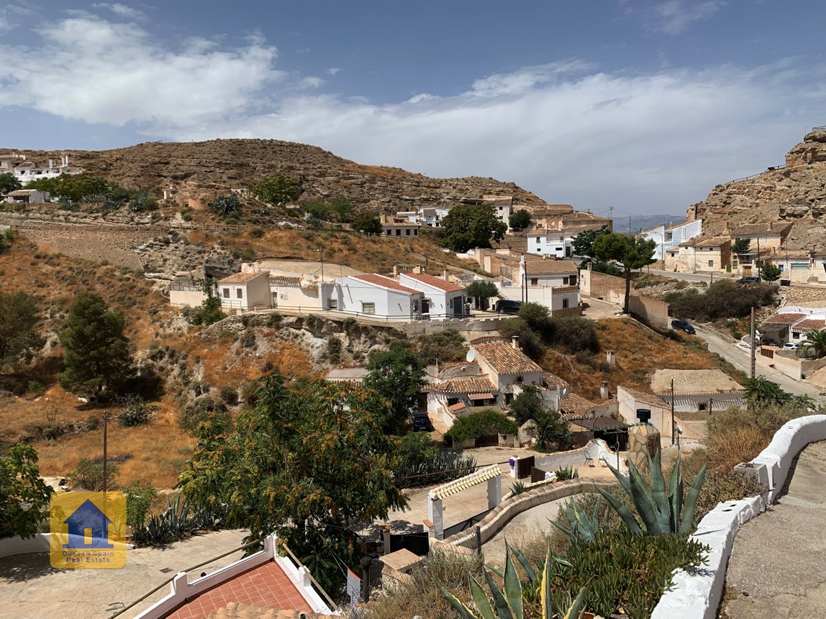 This is a very pretty cave house situated in the heights of the village of Galera with beautiful views across the valley. The cave has a living room/dining room/kitchen, hall, 2 bedrooms and a bathroom. The property has a charming patio and a private parking space.