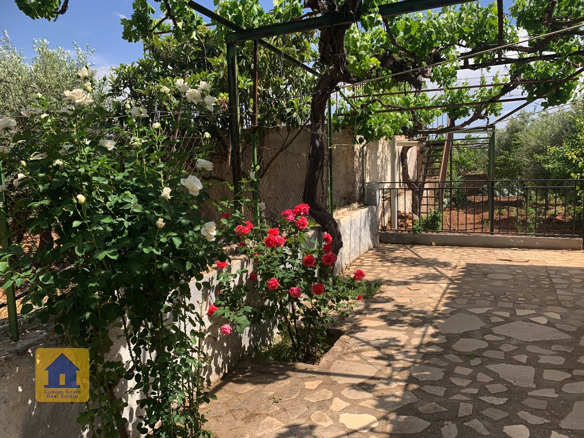 Cette maison avec terrain est un oasis rural et intime entouré d’oliviers et de champs cultivés.