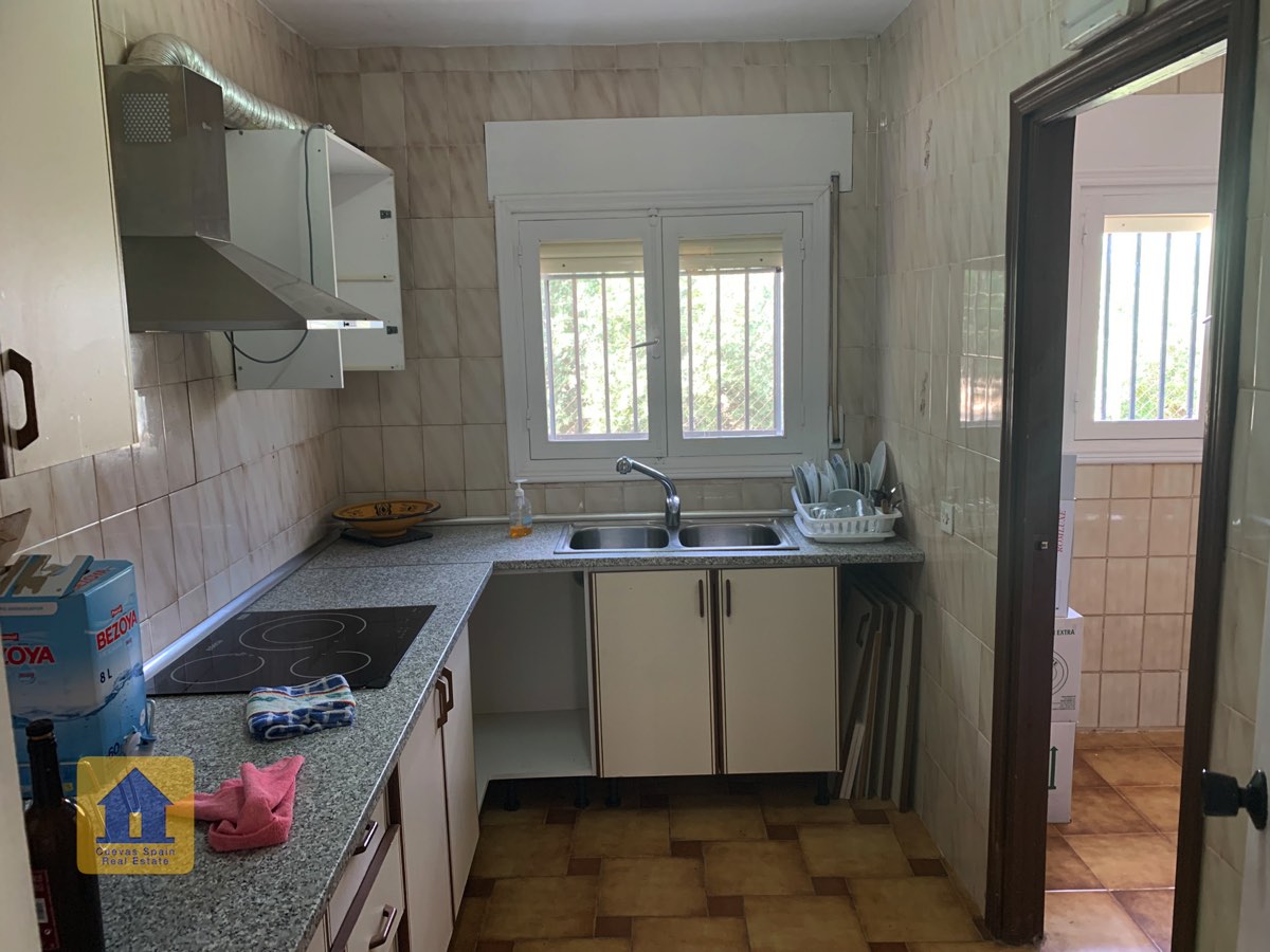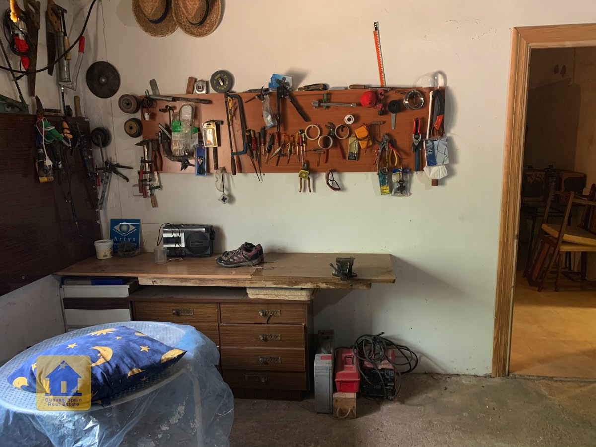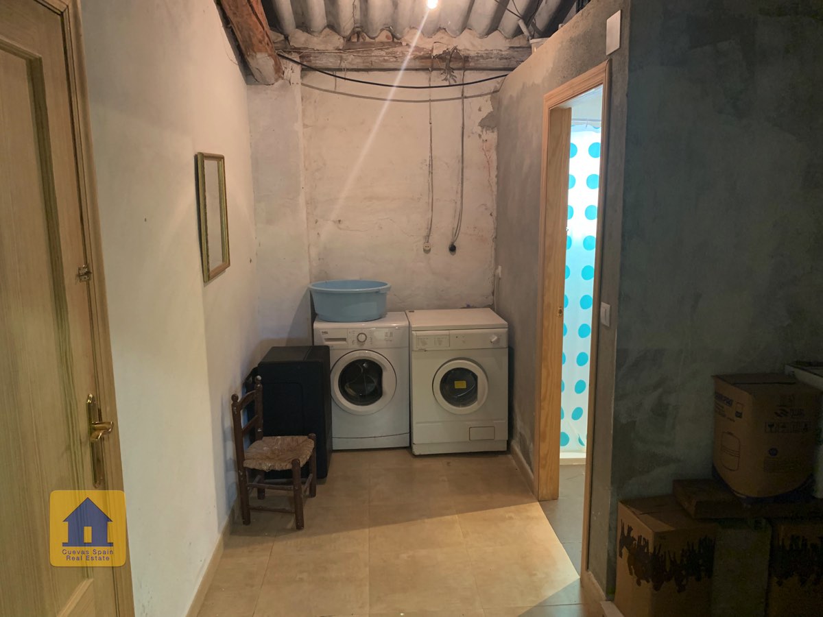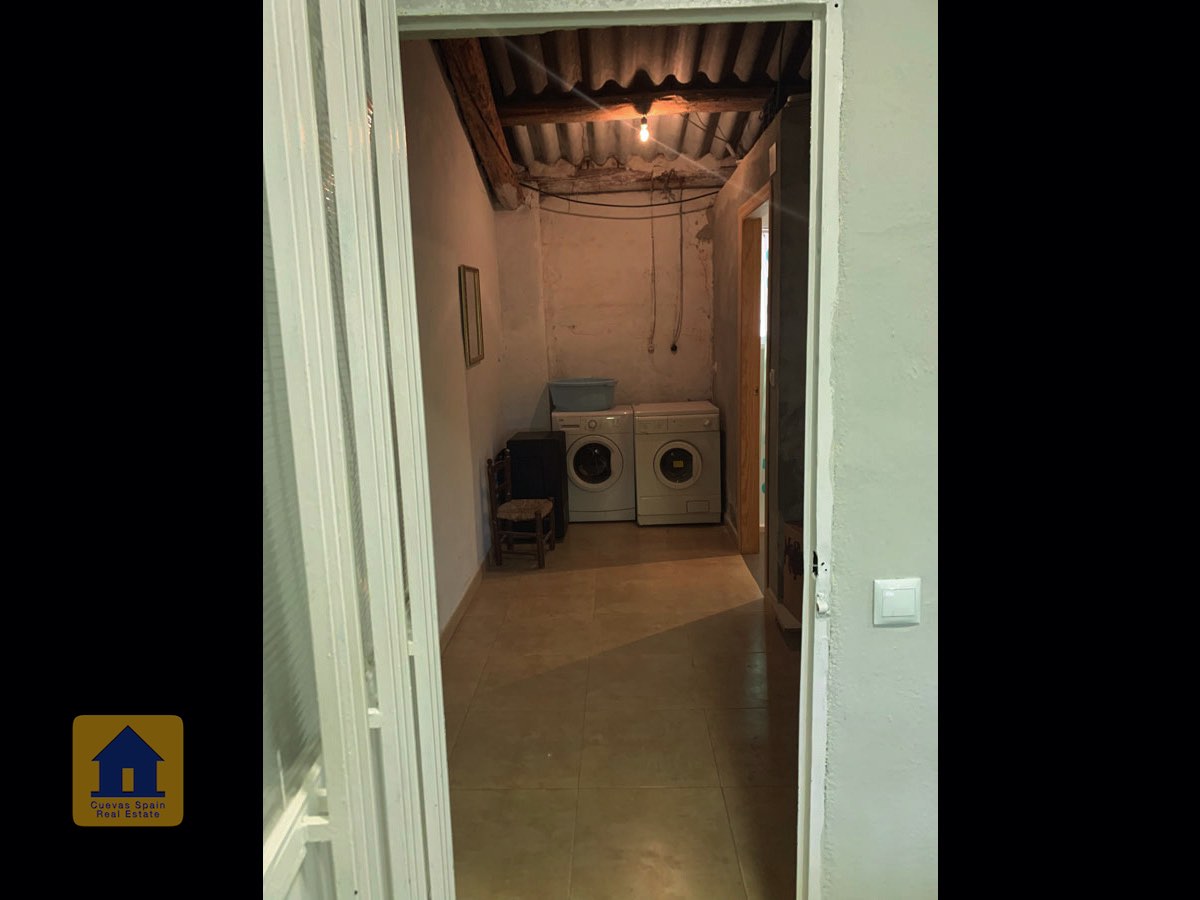 Depuis le salon, on accède à la buanderie et débarras/garde-manger, une deuxième salle de bains avec douche et un grand garage/almacen pouvant accueillir plusieurs deux voitures, également aménagé comme atelier.