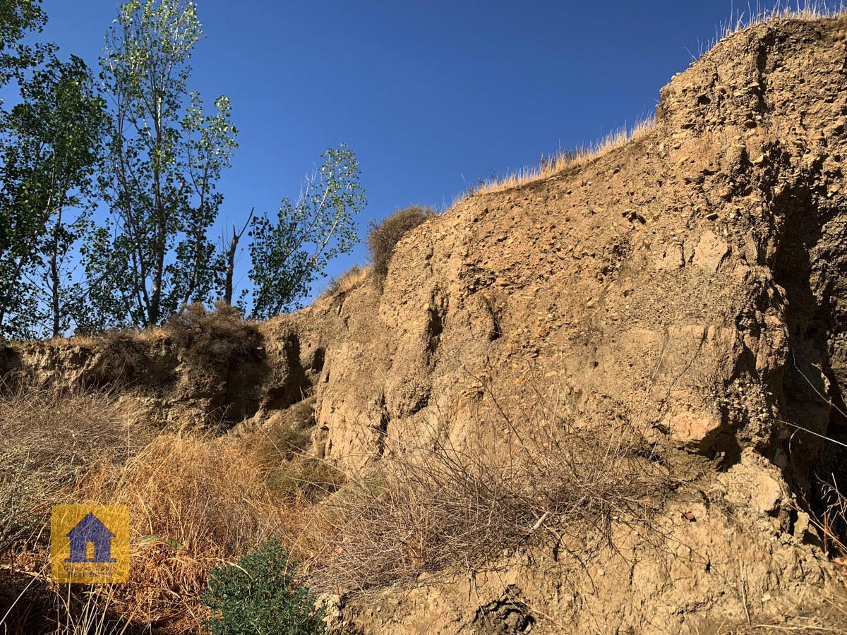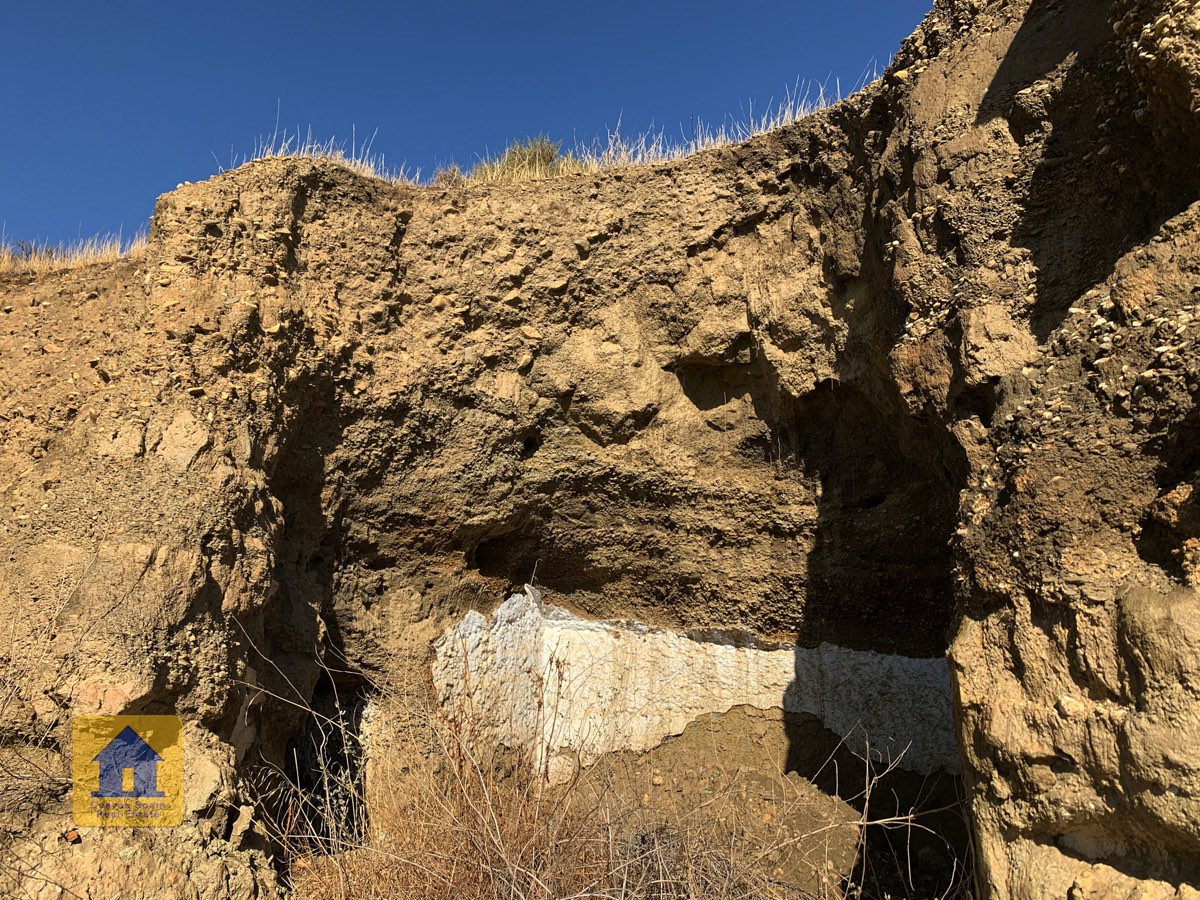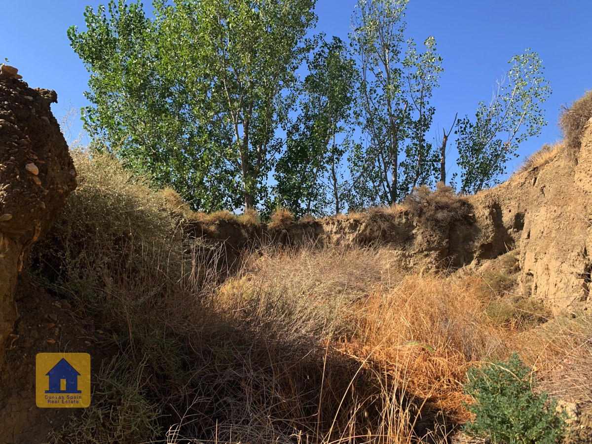 En arrivant à la propriété, sur la gauche se trouve une grotte non aménagée qui pourrait être réaménagée en maison troglodyte de deux chambres. Il y a également une zone ouverte, protégée par des murs de roche, qui pourrait être utilisée pour un jardin potager ou une petite piscine. La grotte principale se trouve ensuite. Après la grotte principale, on monte une petite pente jusqu'à un patio surélevé avec une pergola et une vue imprenable.