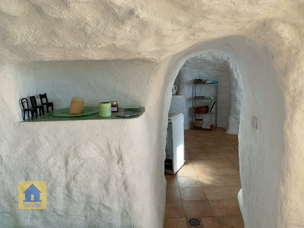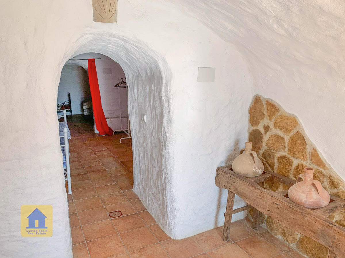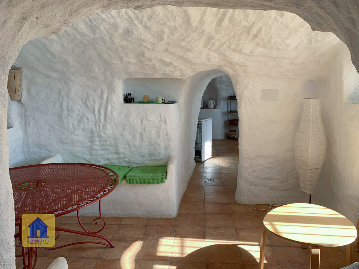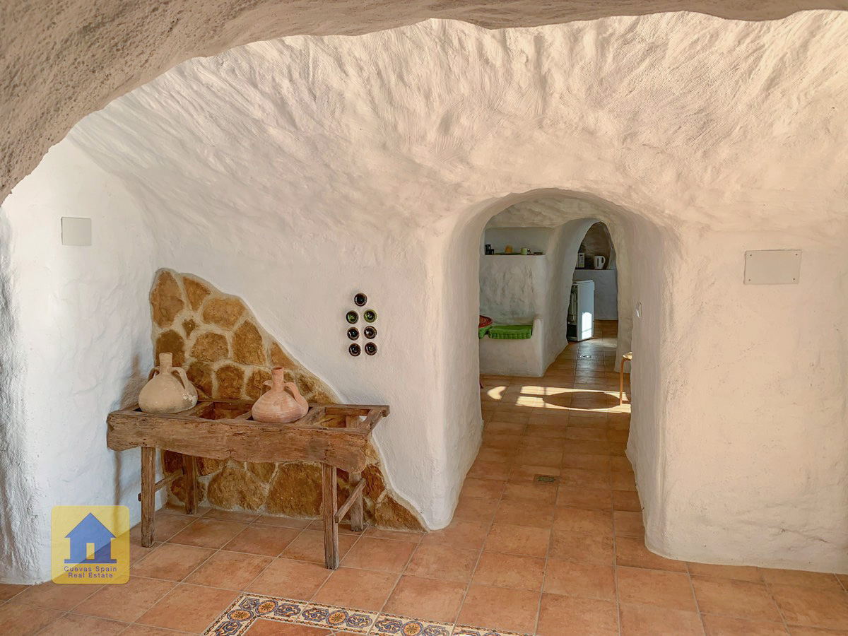 Dans l'ensemble, il s'agit d'une charmante propriété troglodyte avec beaucoup de potentiel en tant que maison de vacances ou pour une vie à plein temps. Les murs et les plafonds de la grotte sont joliment et uniformément finis. L'ensemble de la grotte semble soigneusement sculpté, y compris les fenêtres et les portes dans un design légèrement arqué. Les sols sont carrelés sur toute la surface.