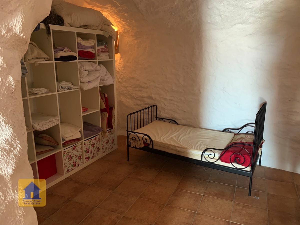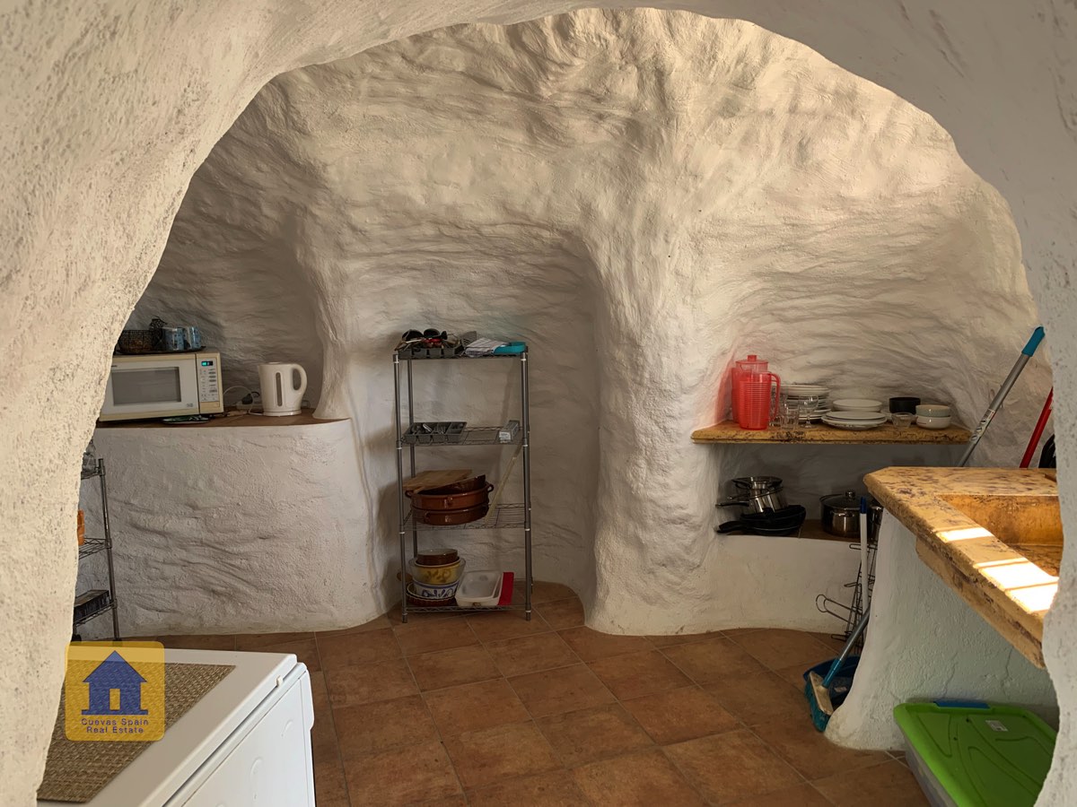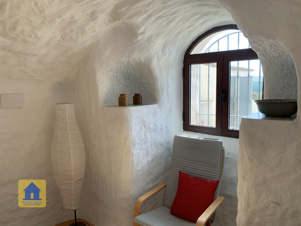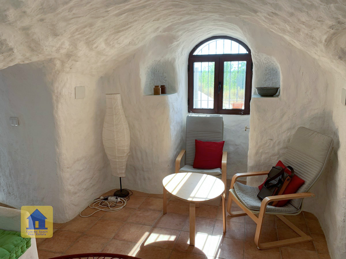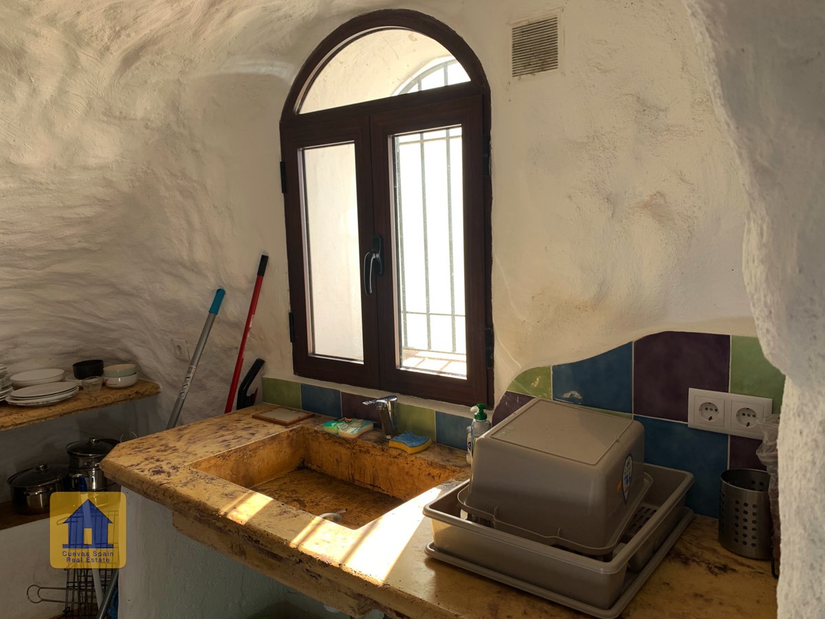 Dans l'ensemble, il s'agit d'une charmante propriété troglodyte avec beaucoup de potentiel en tant que maison de vacances ou pour une vie à plein temps. Les murs et les plafonds de la grotte sont joliment et uniformément finis. L'ensemble de la grotte semble soigneusement sculpté, y compris les fenêtres et les portes dans un design légèrement arqué. Les sols sont carrelés sur toute la surface.