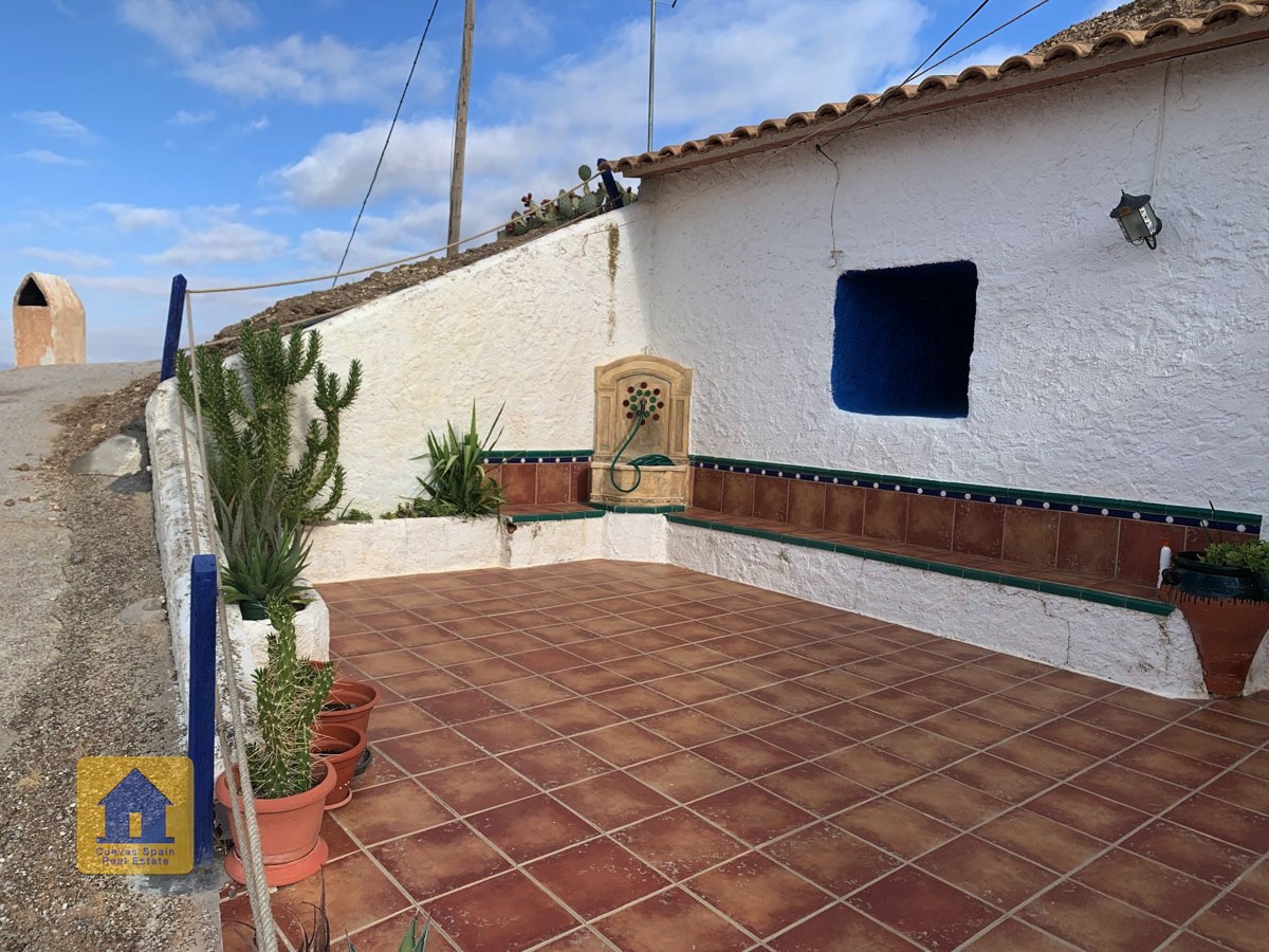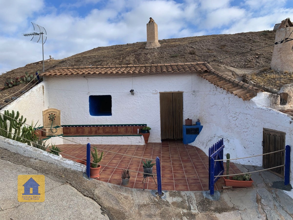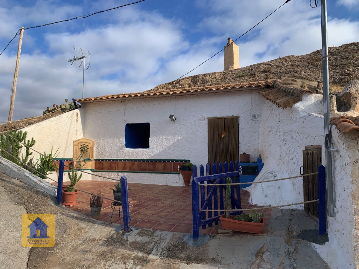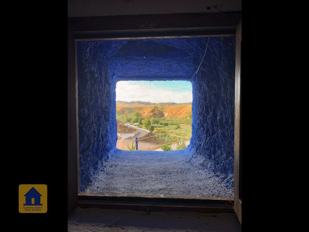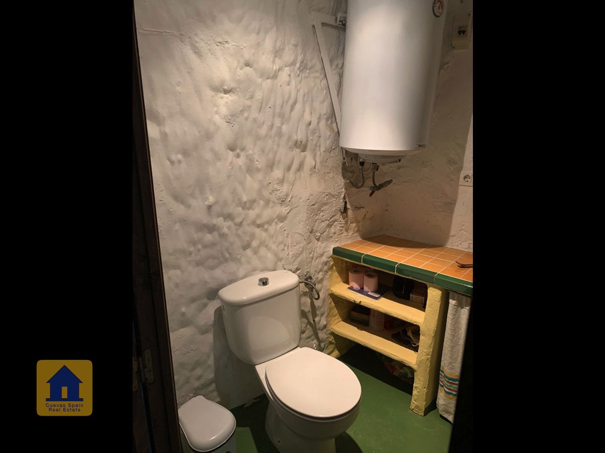 La grotte est magnifiquement authentique. Elle est prête à être emménagée ou à être redécorée pour y apporter votre propre touche. Le hall d'entrée est spacieux, accueillant et pratique. Sur la gauche se trouve le salon avec une pittoresque fenêtre de grotte profonde et d'anciennes mangeoires décoratives. Tout droit se trouve la cuisine/salle à manger traditionnelle espagnole avec une cheminée. De la cuisine, on accède aux chambres. Dans le couloir il y a un espace pour un lit simple, et la salle de bains se trouve juste de l'autre côté du couloir. Au fond de la grotte se trouve une chambre double confortable. À gauche de la cuisine se trouve une chambre double avec un couloir, une longue pièce pouvant servir de rangement, avec une fenêtre donnant sur le l'arrière de la grotte.