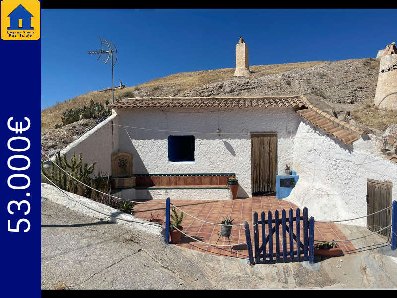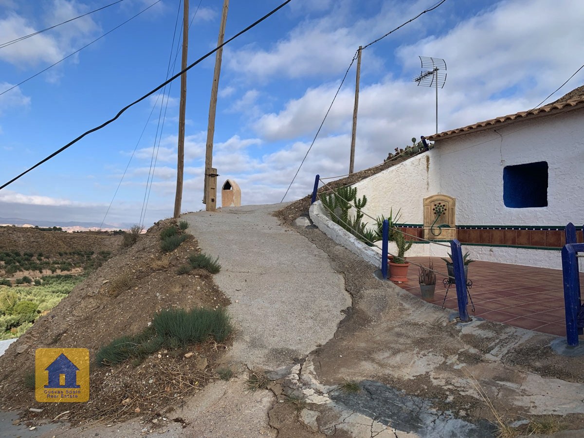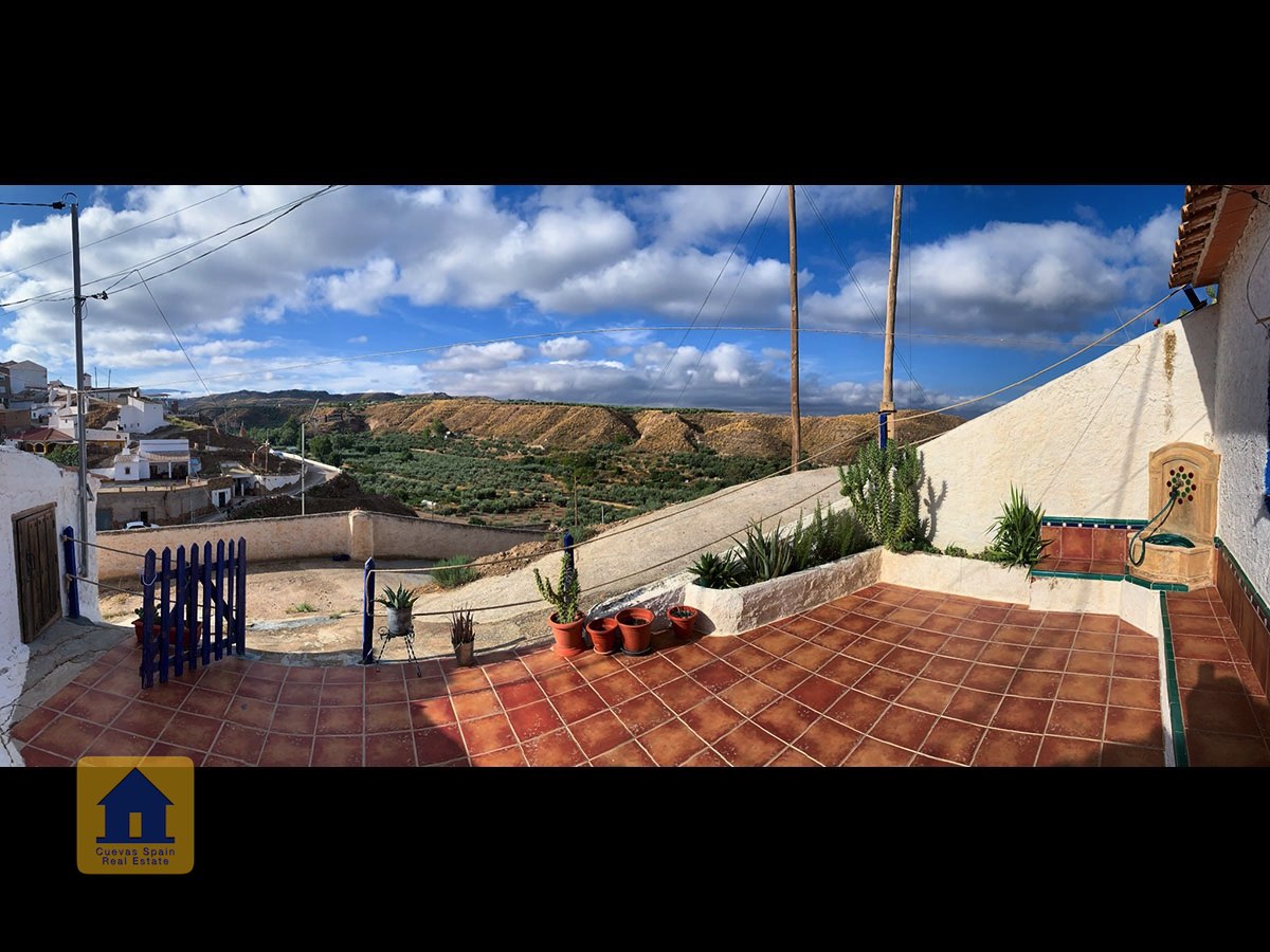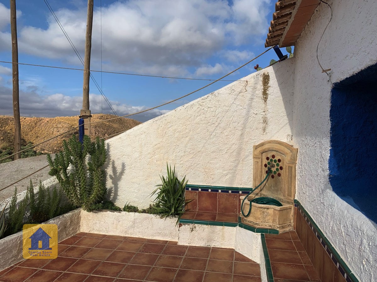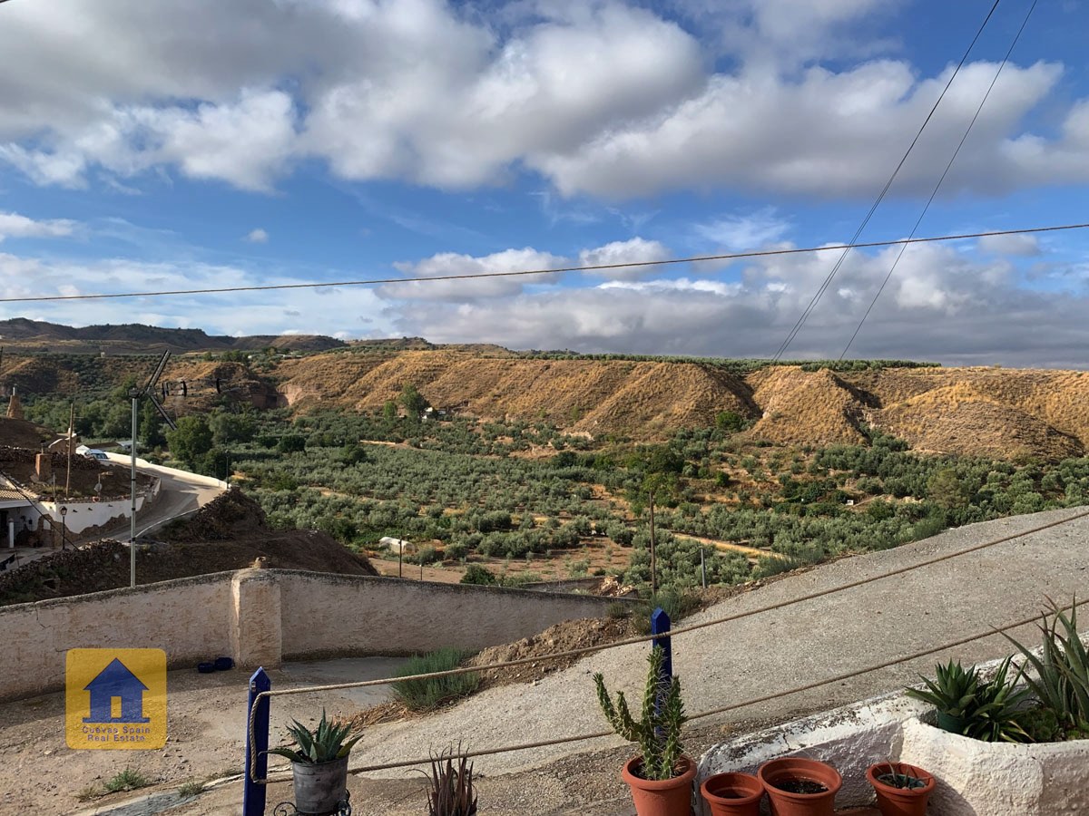 La grotte est magnifiquement authentique. Elle est prête à être emménagée ou à être redécorée pour y apporter votre propre touche. Le hall d'entrée est spacieux, accueillant et pratique. Sur la gauche se trouve le salon avec une pittoresque fenêtre de grotte profonde et d'anciennes mangeoires décoratives. Tout droit se trouve la cuisine/salle à manger traditionnelle espagnole avec une cheminée. De la cuisine, on accède aux chambres. Dans le couloir il y a un espace pour un lit simple, et la salle de bains se trouve juste de l'autre côté du couloir. Au fond de la grotte se trouve une chambre double confortable. À gauche de la cuisine se trouve une chambre double avec un couloir, une longue pièce pouvant servir de rangement, avec une fenêtre donnant sur le l'arrière de la grotte.