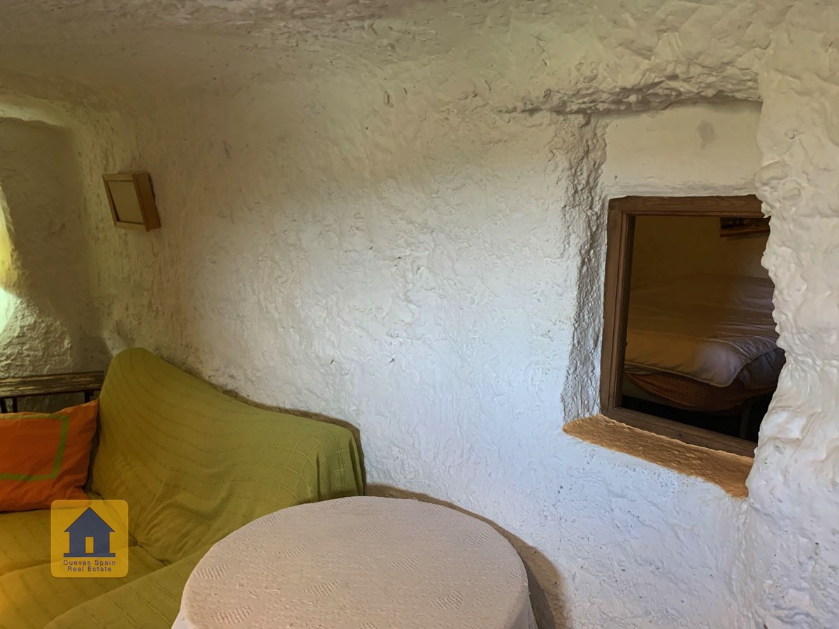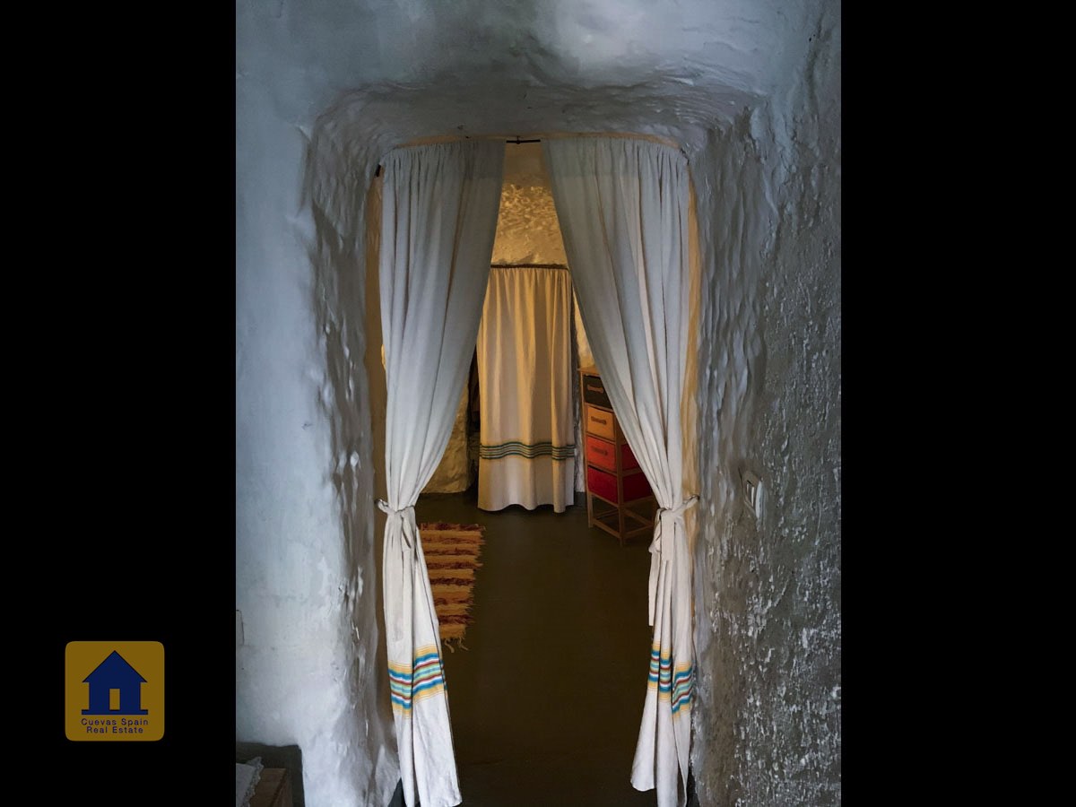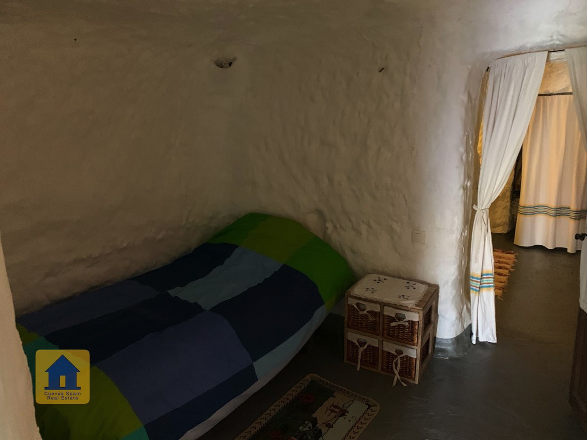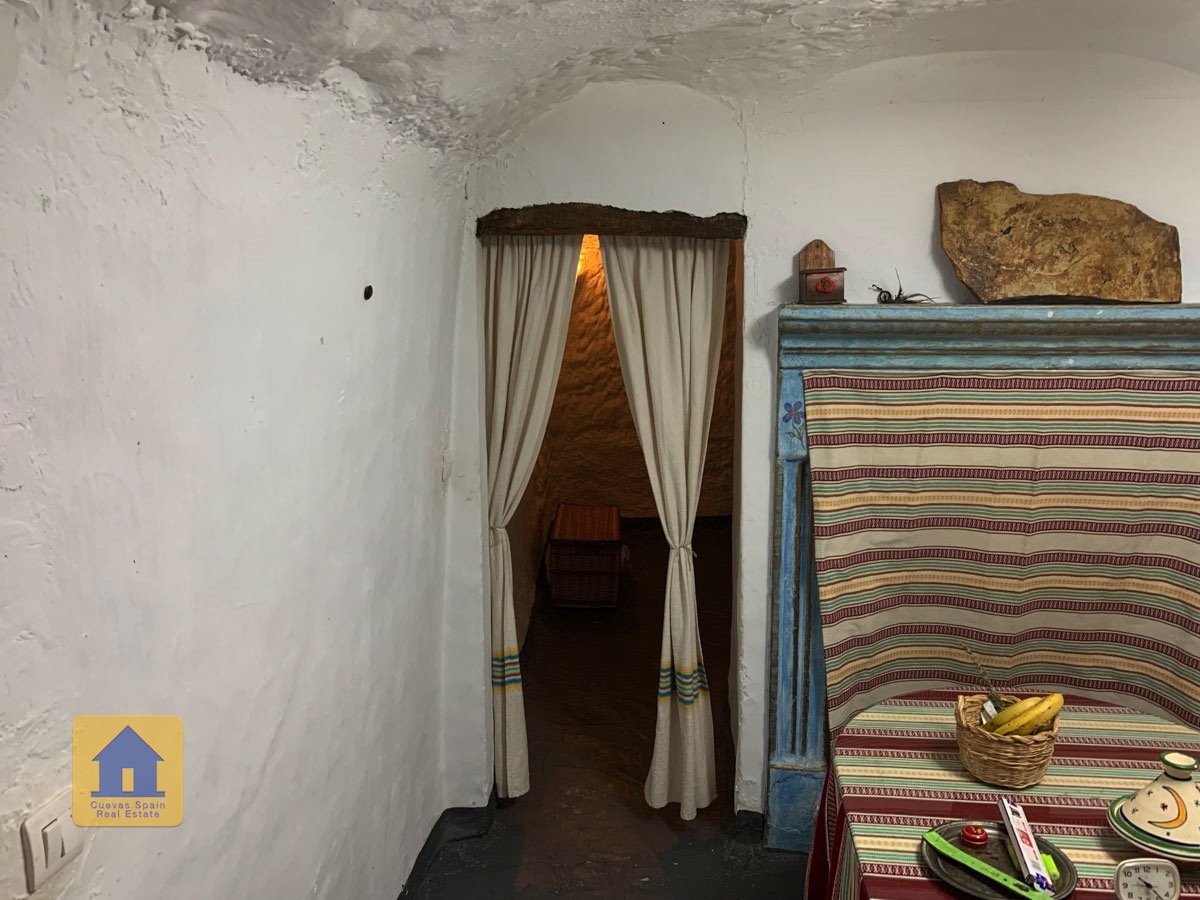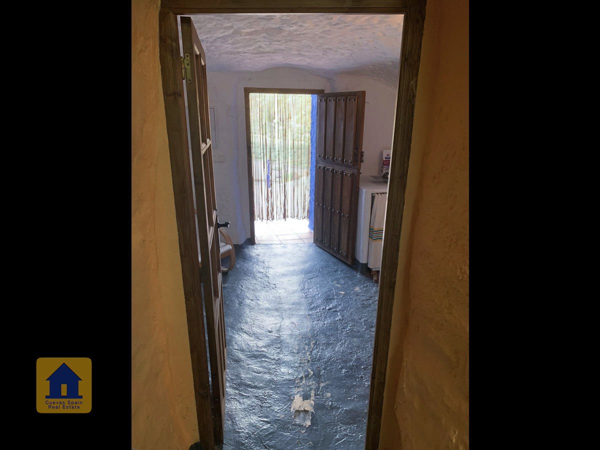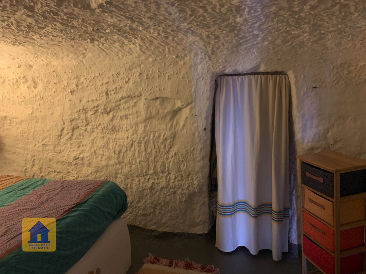 La cueva es muy auténtica. Está lista para entrar a vivir o actualizarla para darle su propio toque. Hay un amplio recibidor, acogedor y práctico. A la izquierda está el salón con una pintoresca ventana profunda de la cueva y antiguos comederos decorativos para animales. Más adelante está la cocina/comedor tradicional con chimenea. Desde la cocina se pasa a los dormitorios. Al fondo del pasillo hay un «cubículo» para una cama individual, con el cuarto de baño al otro lado del pasillo. Al fondo de la cueva hay un acogedor dormitorio doble. A la izquierda de la cocina hay un dormitorio doble con un pasillo/guardarropa/trastero que tiene una ventana que da al lateral de la cueva.