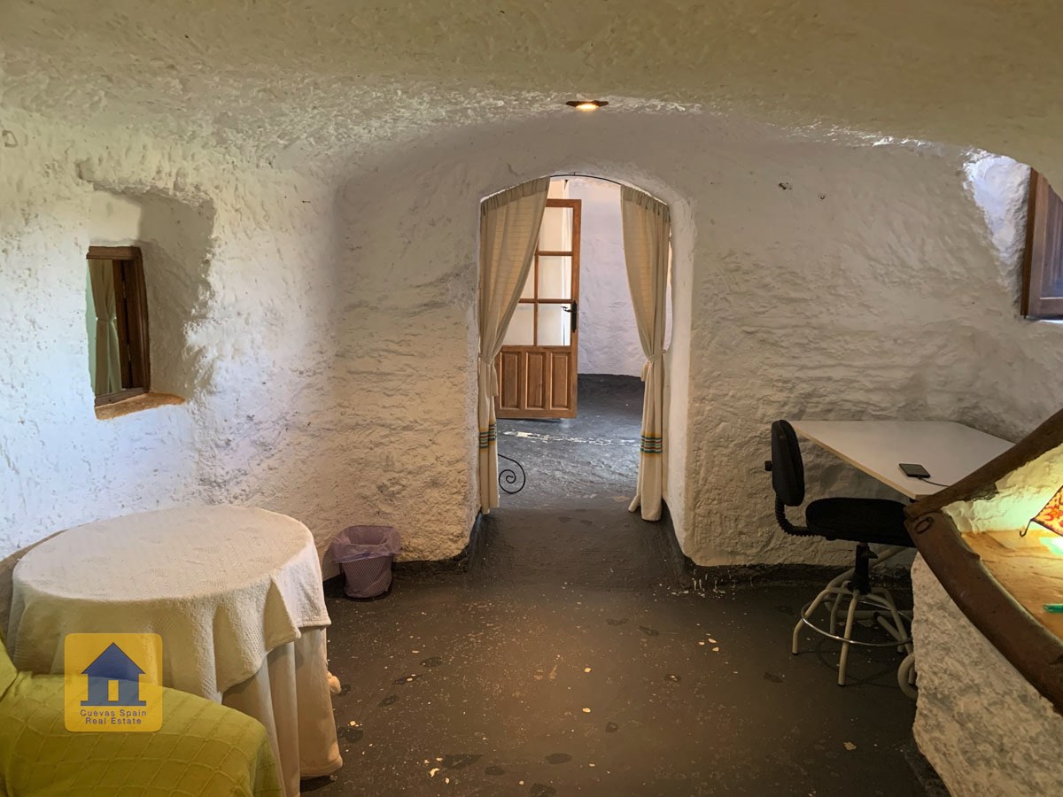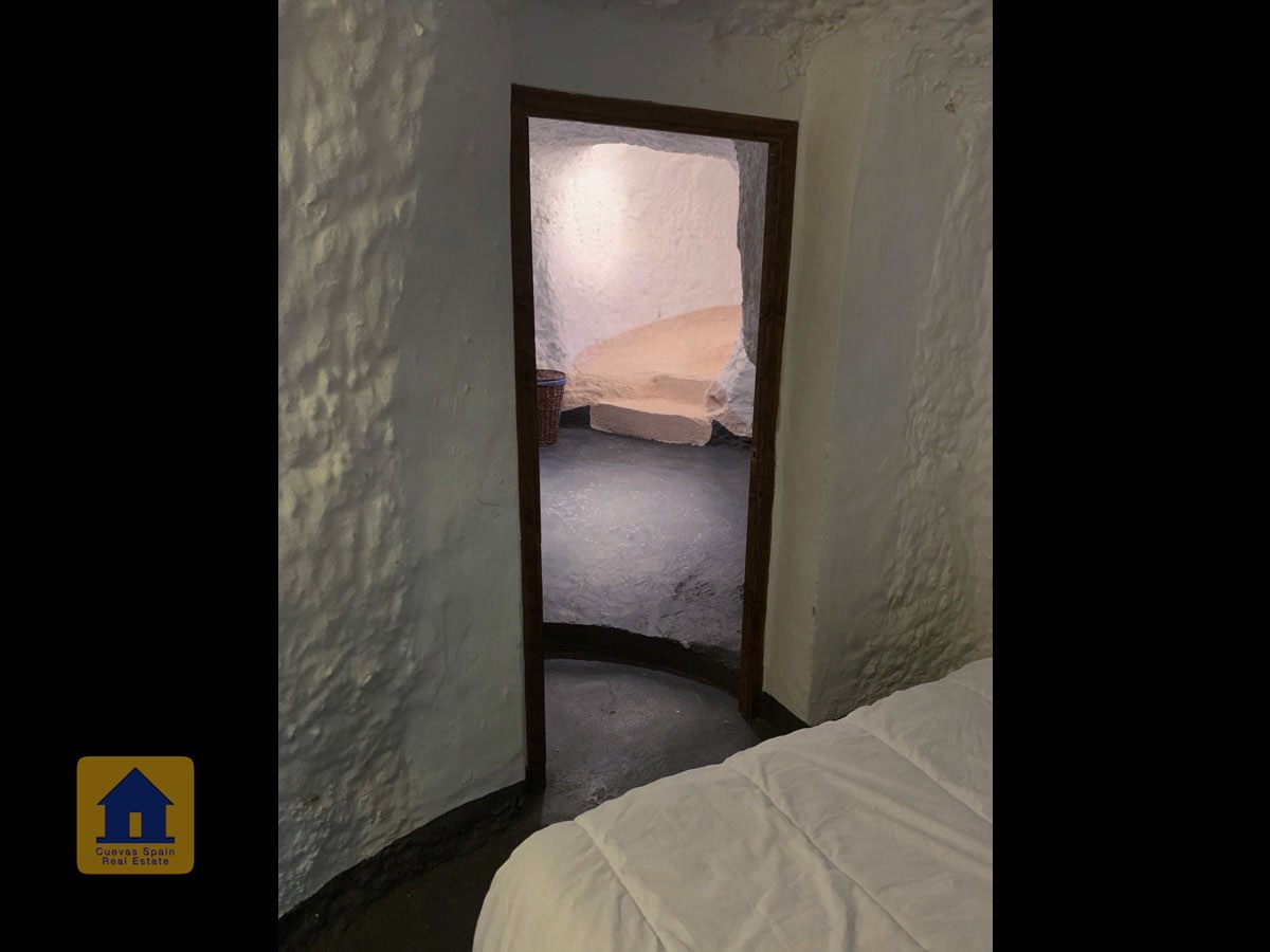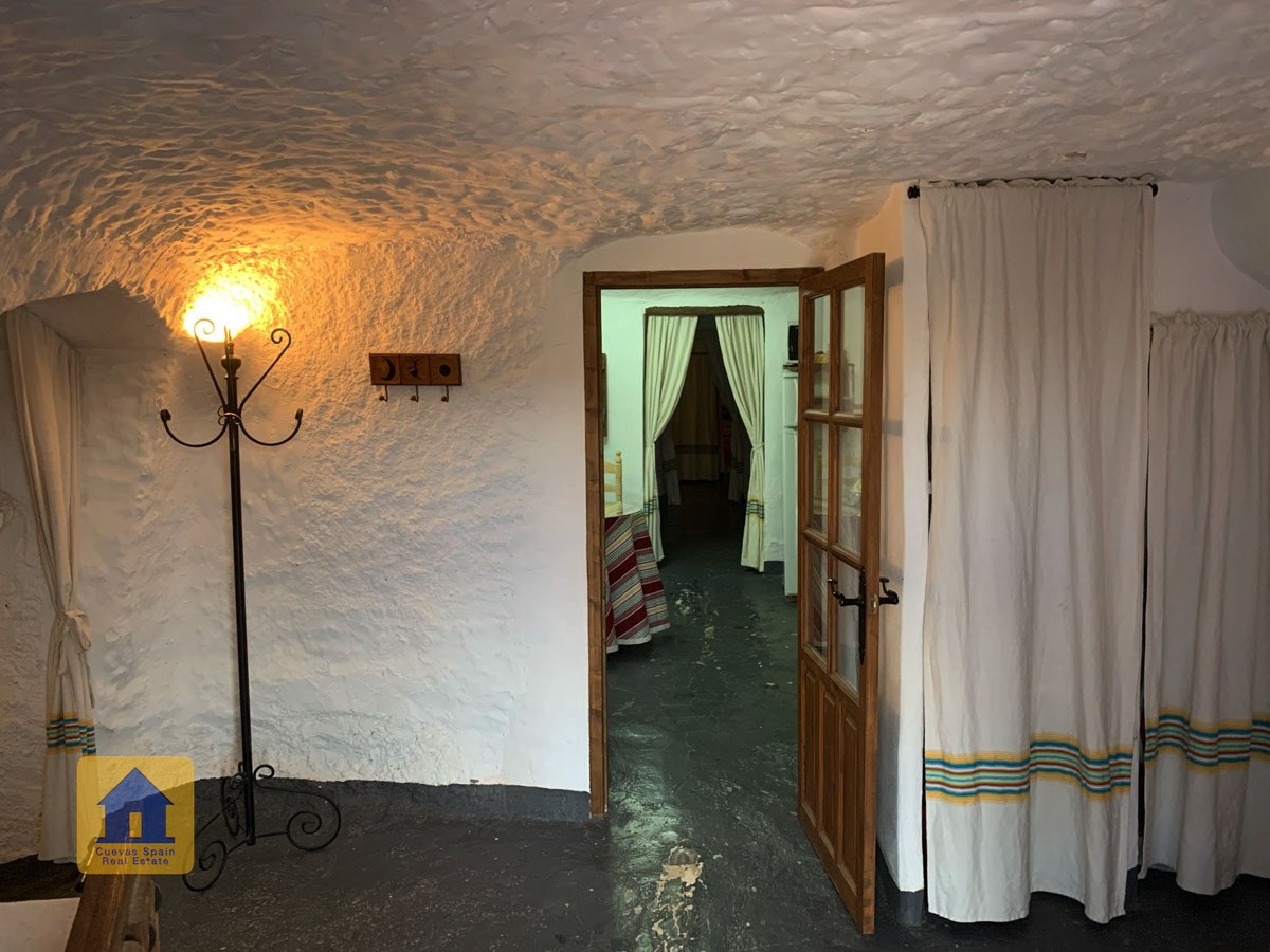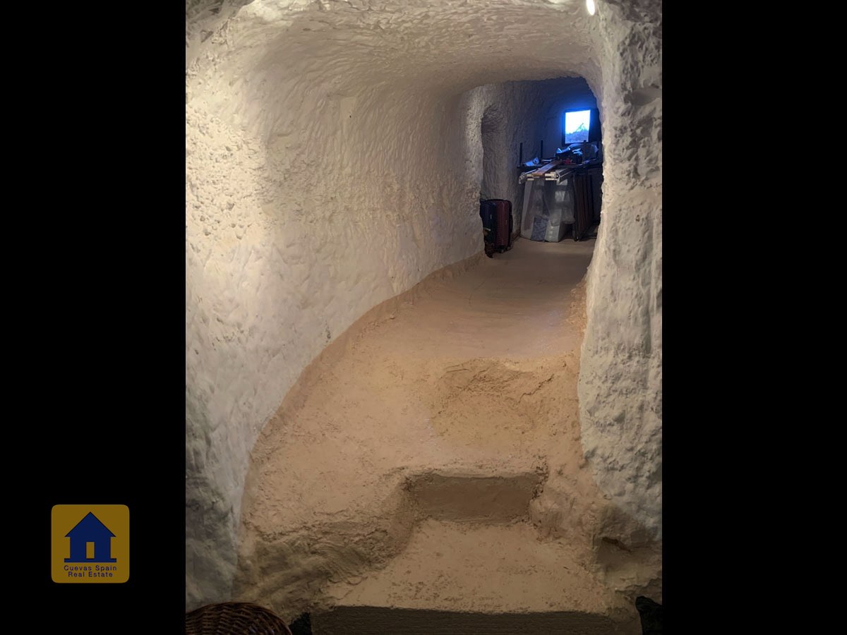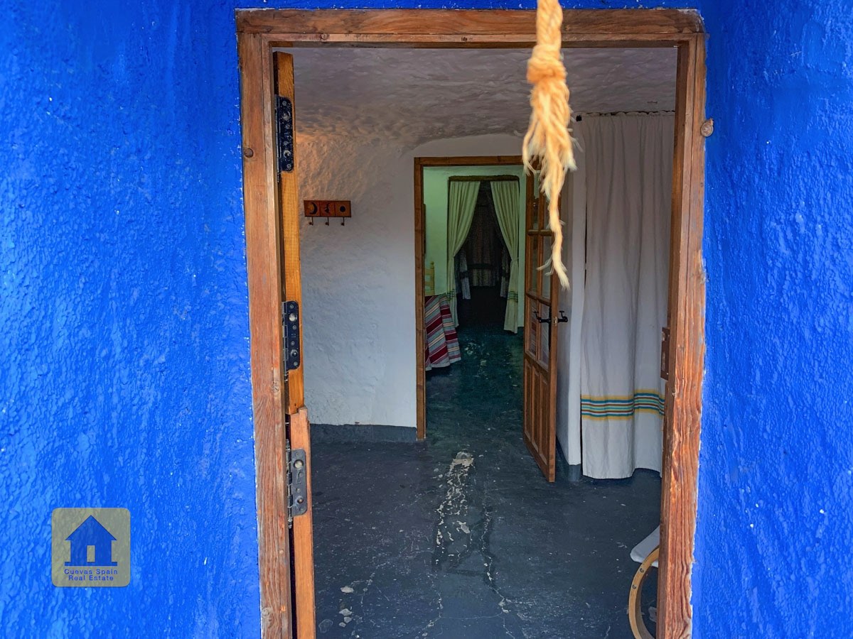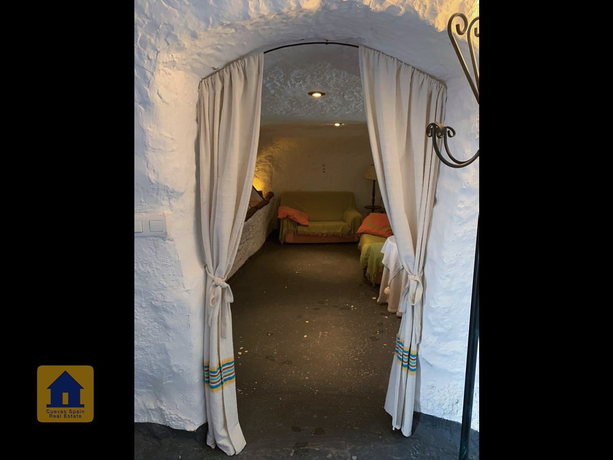 La cueva es muy auténtica. Está lista para entrar a vivir o actualizarla para darle su propio toque. Hay un amplio recibidor, acogedor y práctico. A la izquierda está el salón con una pintoresca ventana profunda de la cueva y antiguos comederos decorativos para animales. Más adelante está la cocina/comedor tradicional con chimenea. Desde la cocina se pasa a los dormitorios. Al fondo del pasillo hay un «cubículo» para una cama individual, con el cuarto de baño al otro lado del pasillo. Al fondo de la cueva hay un acogedor dormitorio doble. A la izquierda de la cocina hay un dormitorio doble con un pasillo/guardarropa/trastero que tiene una ventana que da al lateral de la cueva.
