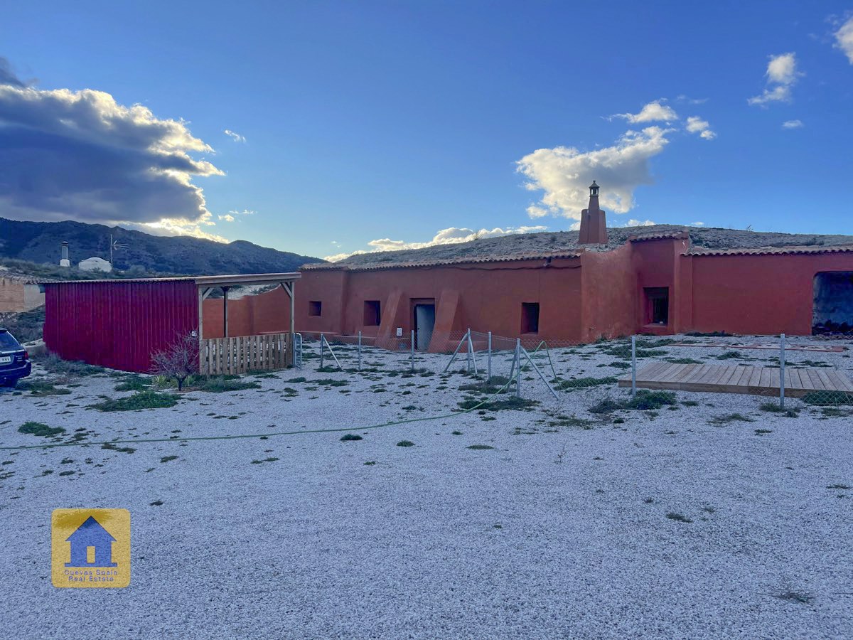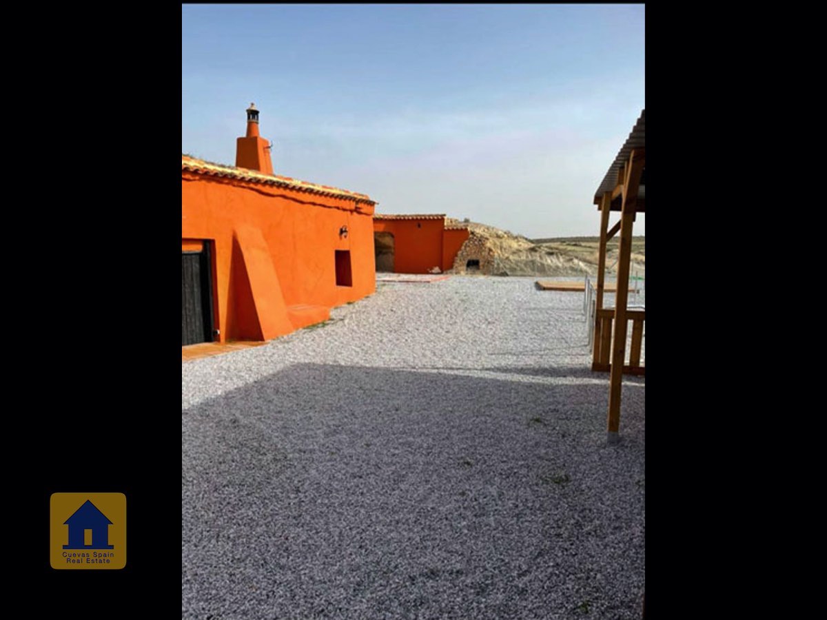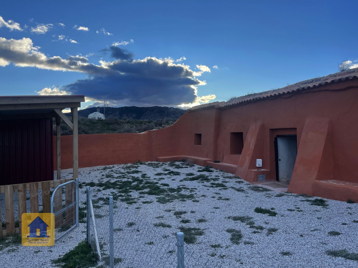 Cueva Roja is a charming, rustic cave house with a huge front patio and expansive views of the Sierra Maria-Los Velez mountains. The cave has a living room, 2 bedrooms, kitchen, bathroom and pantry. This cave property is the last house on a small country road so there is very little passage. The location is stunning, surrounded by wide open space in nature.