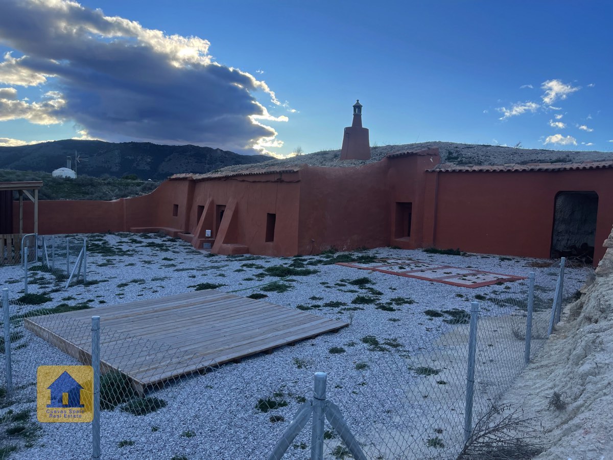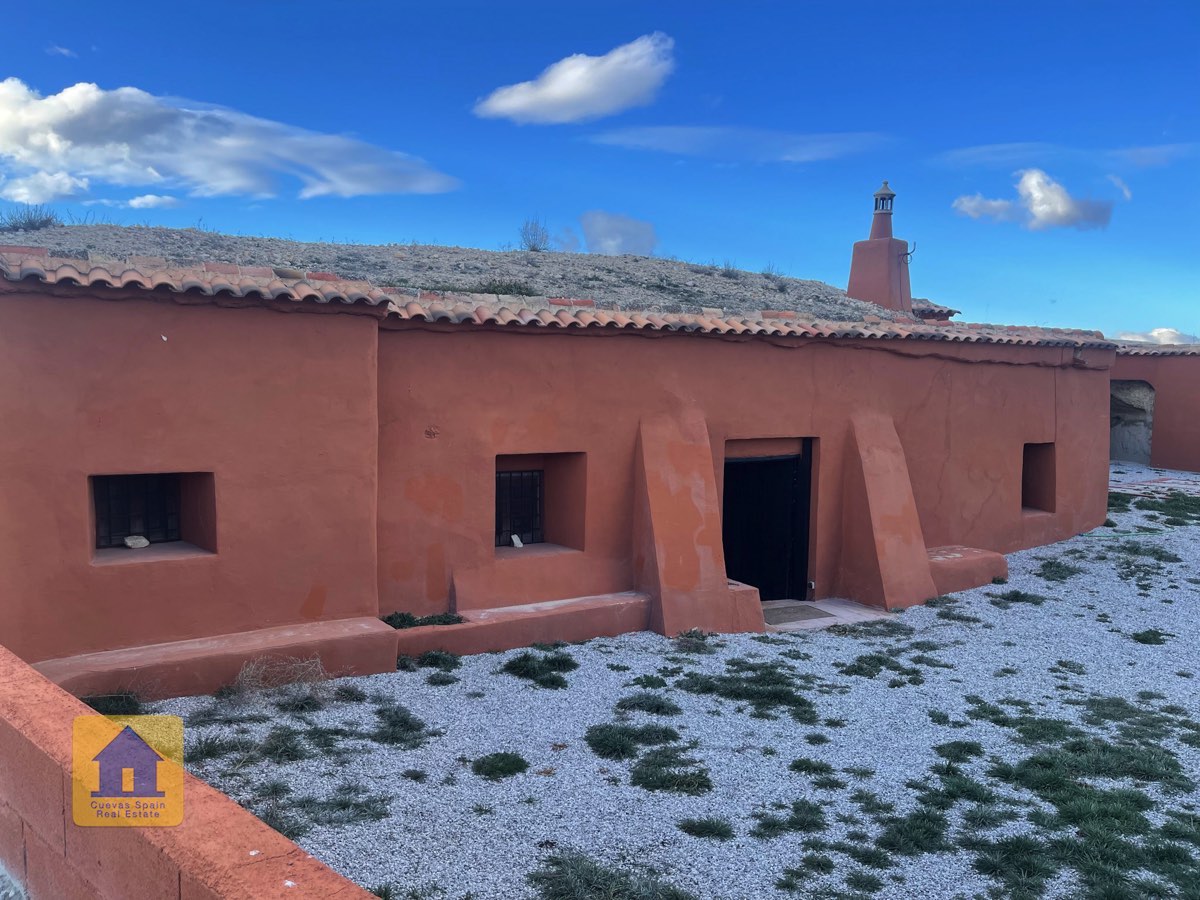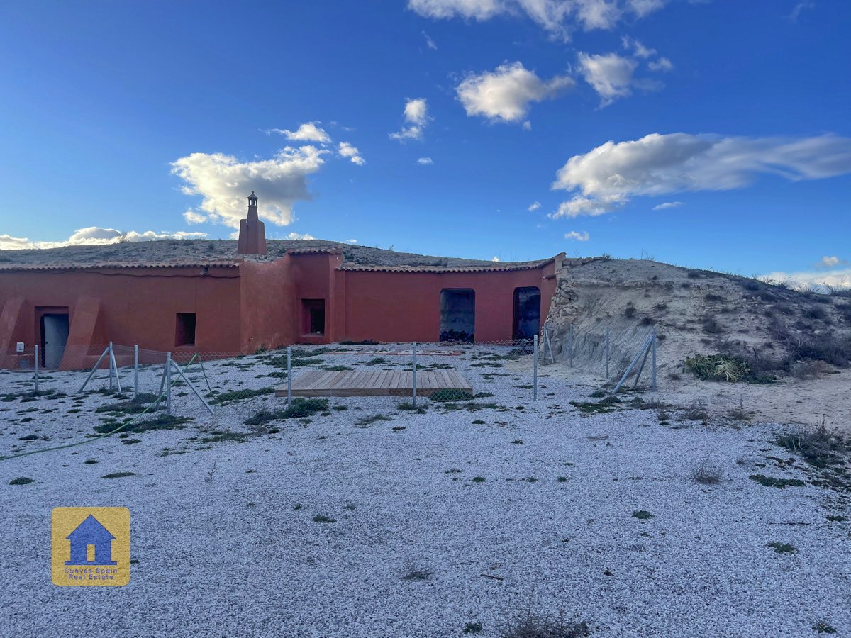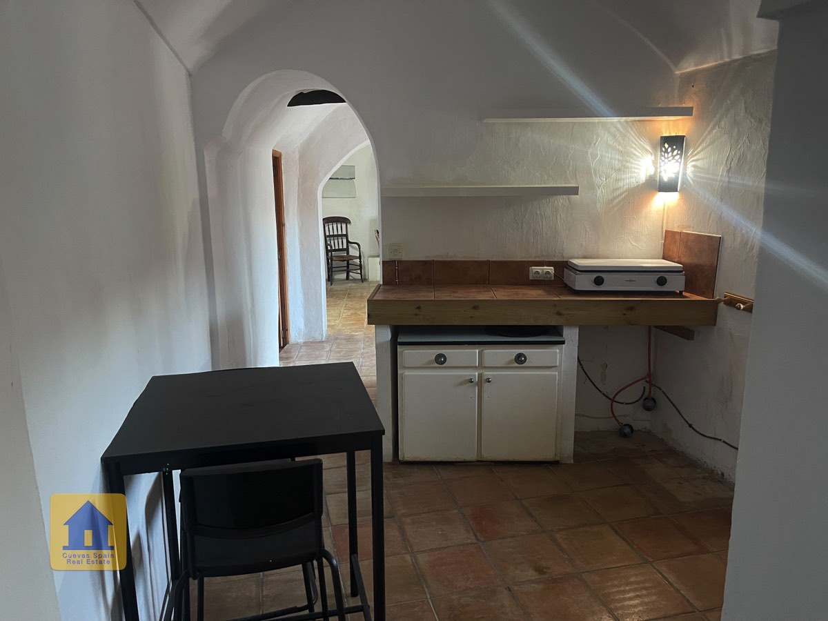Cueva Roja is a charming, rustic cave house with a huge front patio and expansive views of the Sierra Maria-Los Velez mountains. The cave has a living room, 2 bedrooms, kitchen, bathroom and pantry. This cave property is the last house on a small country road so there is very little passage. The location is stunning, surrounded by wide open space in nature.