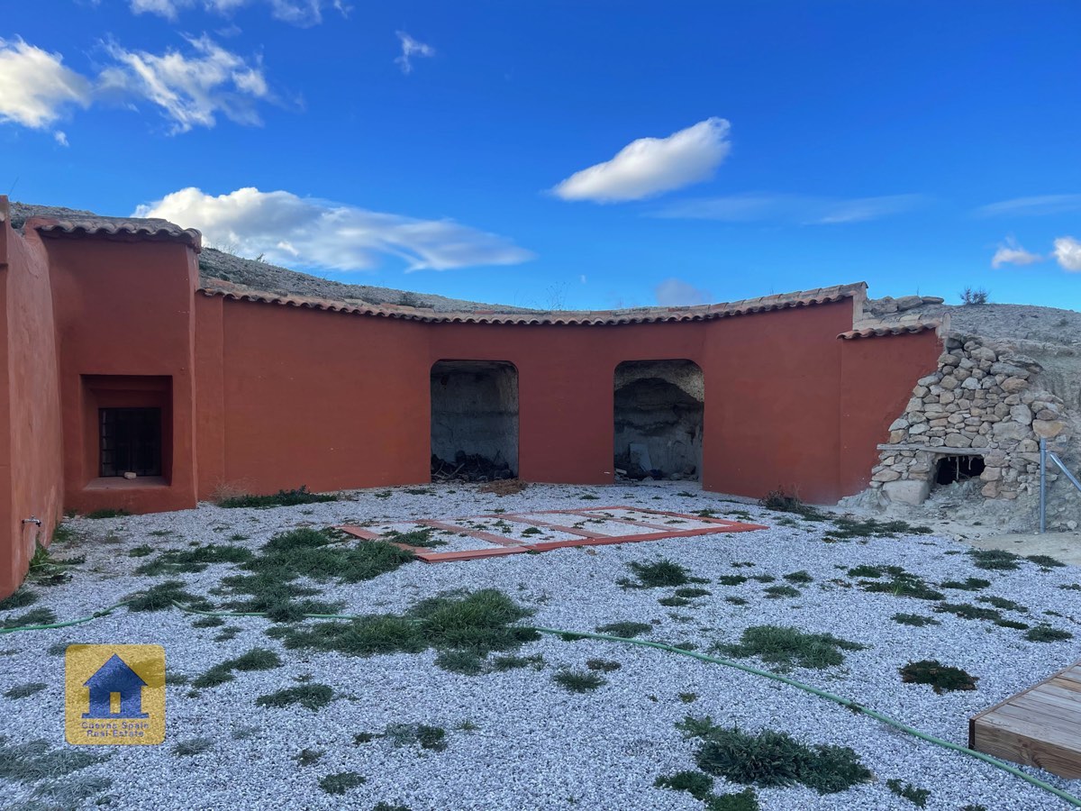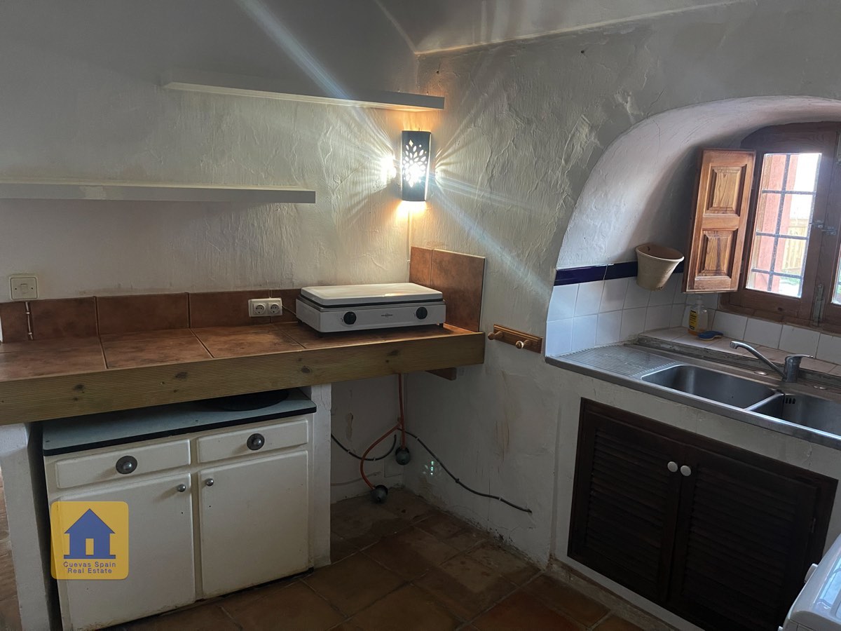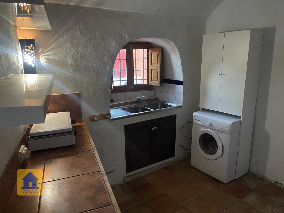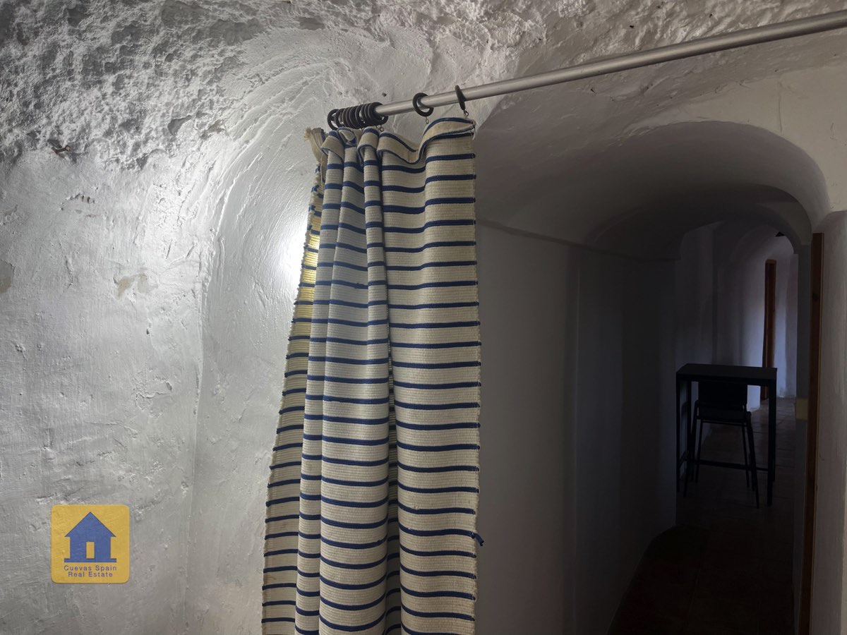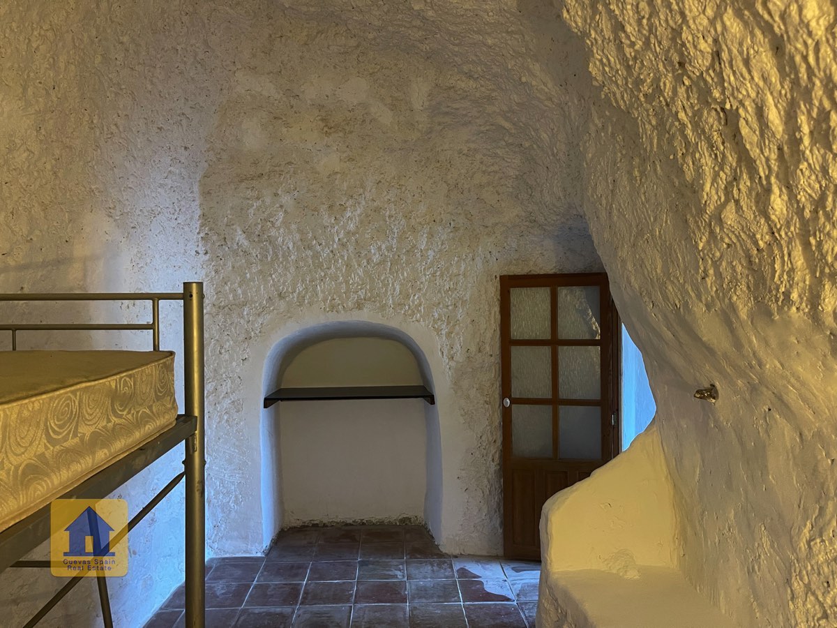 The house is pure cave and is set back into the mountain so it has all the qualities of cool temperatures in summer and easy to warm in winter. The cave is east facing. All of the rooms have a window except the smaller bedroom. The floors are tiled throughout with quality terracotta tiles. The house was recently painted inside and out.