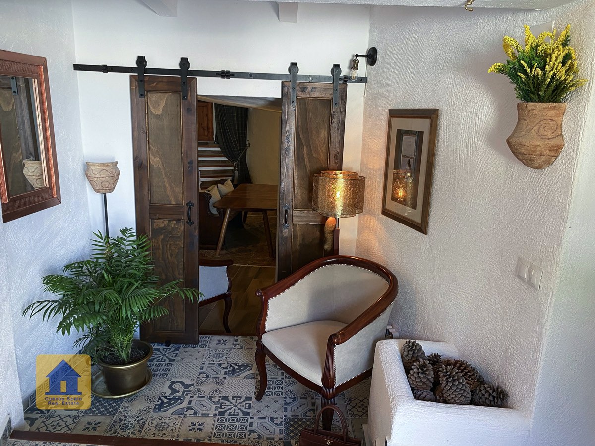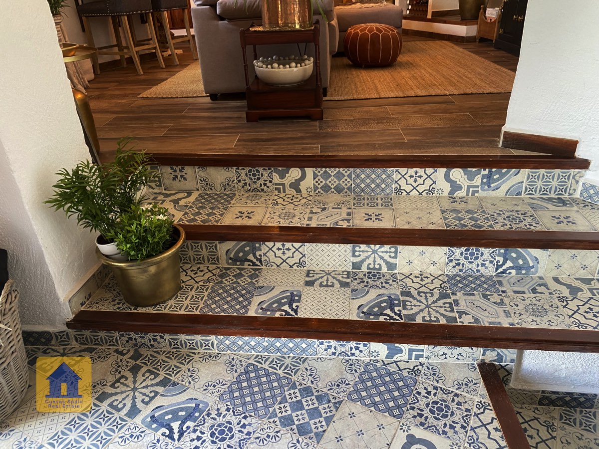 Cette propriété a bénéficié de finitions soignées et est impeccablement entretenue. Les sols sont recouverts de carrelage en motif de chêne foncé, assorti à une version moderne du carrelage à motifs bleu traditionnel. Les salles de bains sont décorées de carrelages contrastant, au sol et aux murs, et d'accents en bois. Les plafonds à poutres apparentes en acier peint apportent une touche de modernité. La maison est meublée avec des meubles de qualité, dont la plupart sont inclus dans la vente.