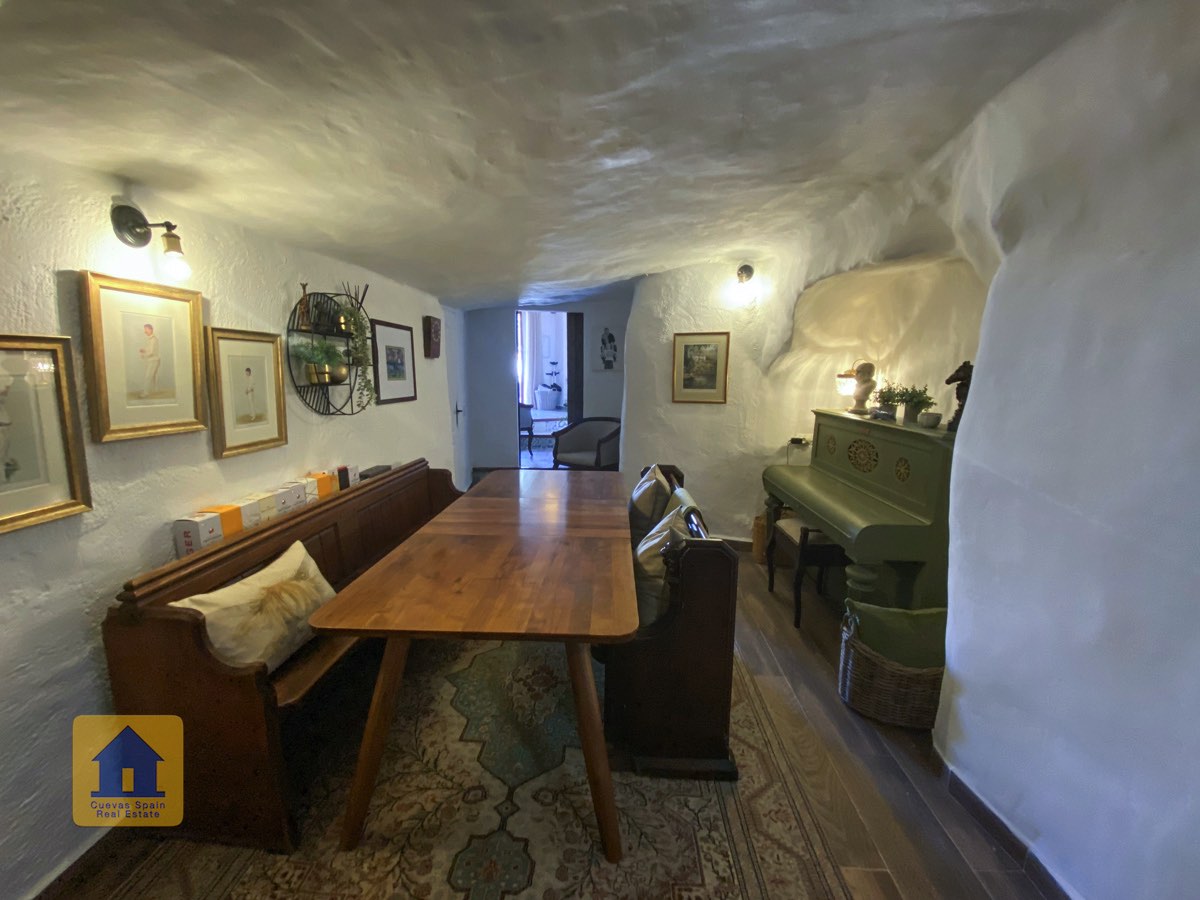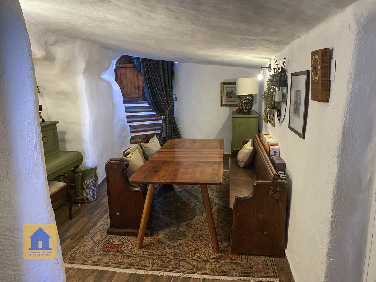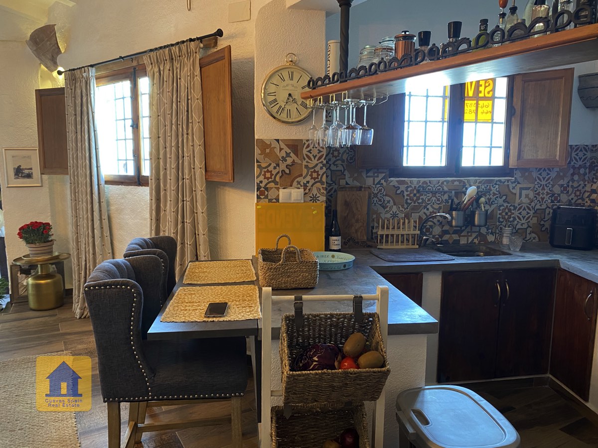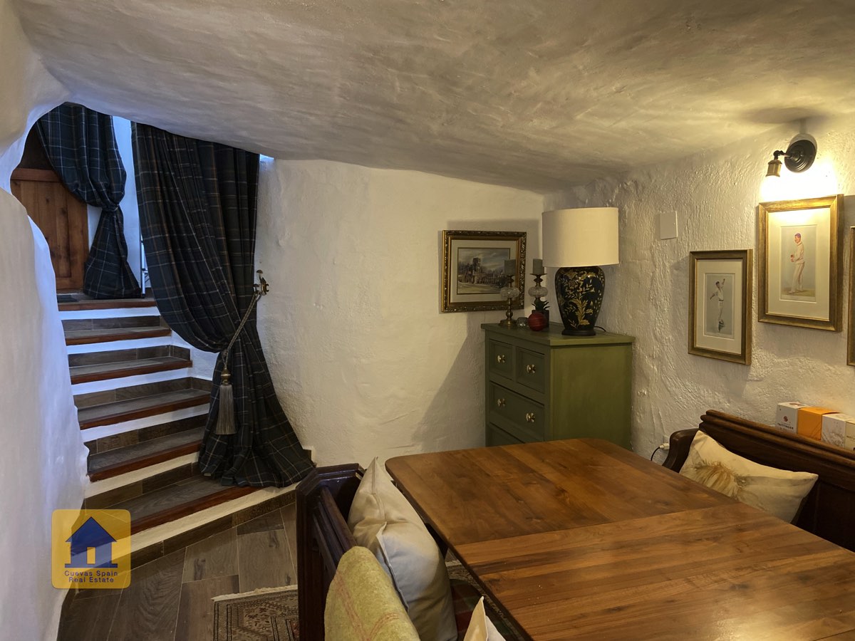 La maison troglodyte comprend un hall d'entrée, un séjour/cuisine ouvert avec un bar à petit-déjeuner de comptoir, une salle à manger, deux chambres doubles, deux salles de bain complètes et une buanderie.