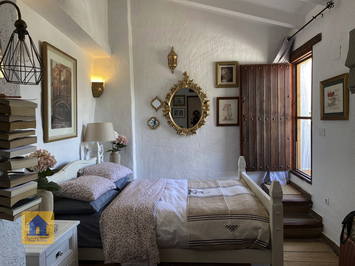 À l'étage, depuis le salon, se trouve une chambre double avec une charmante salle de bain attenante et une terrasse ensoleillée offrant une vue imprenable.