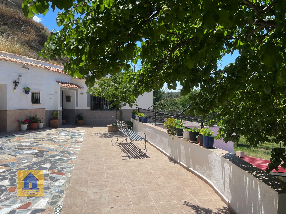 La Cueva Juan de Dios es una hermosa casa cueva adosada y soleada, ubicada en un lugar tranquilo a las afueras del pueblo de Castilléjar. La casa cuenta con un patio delantero y tres terrazas con impresionantes vistas al bosque y a las tierras de cultivo.