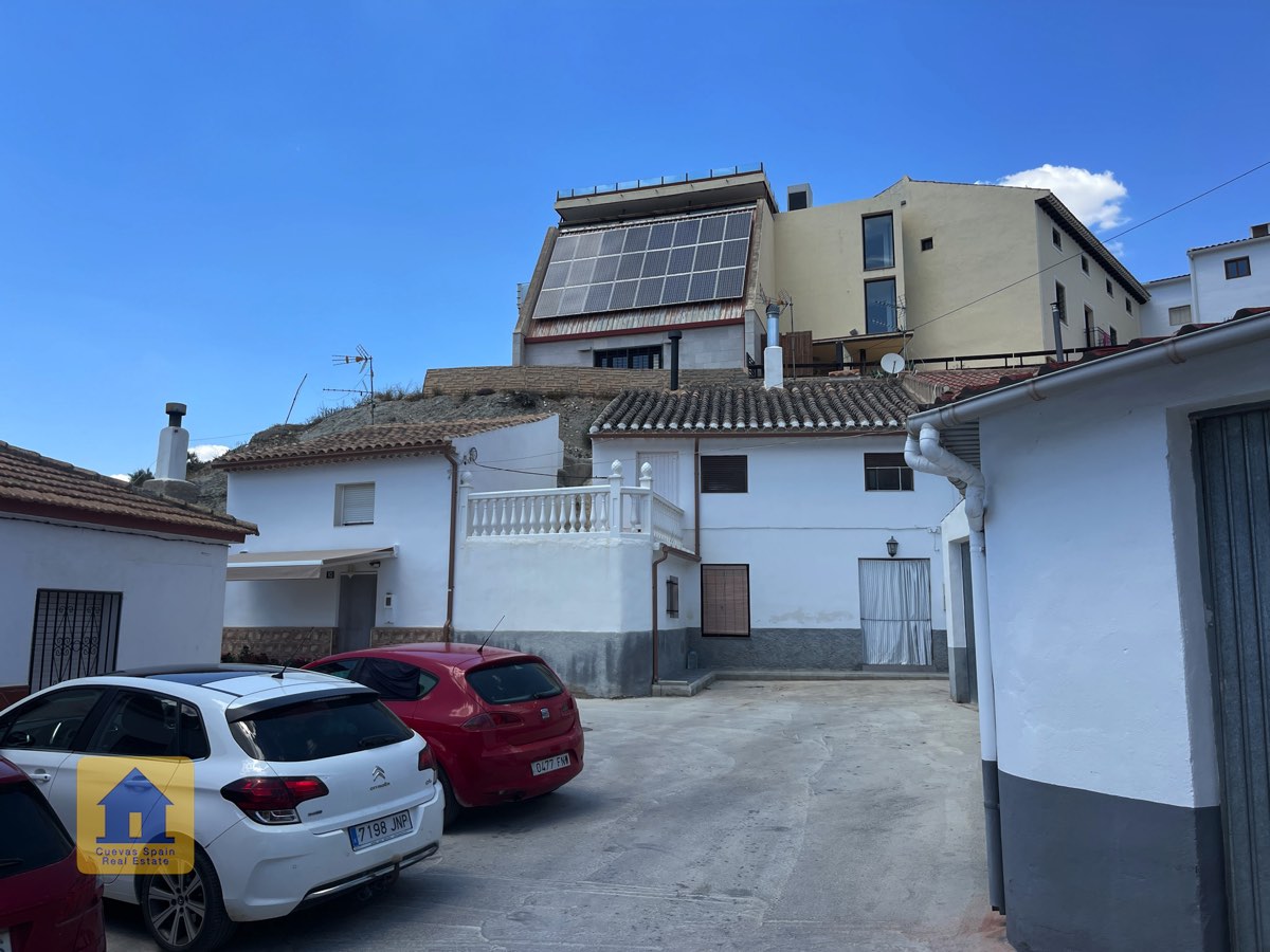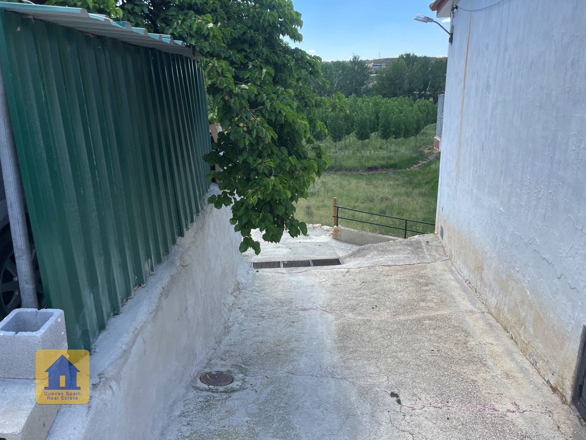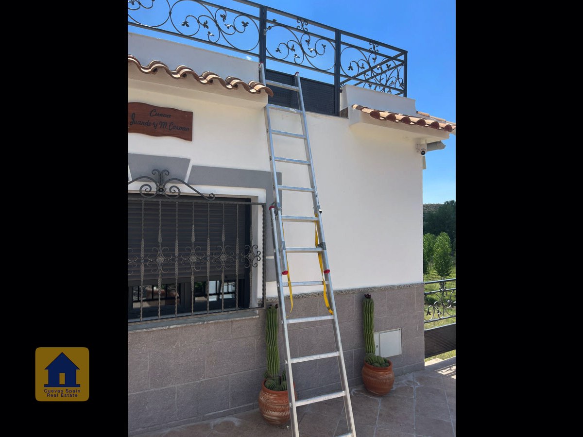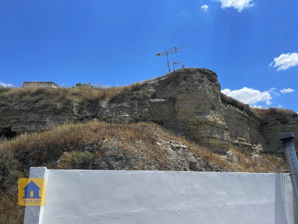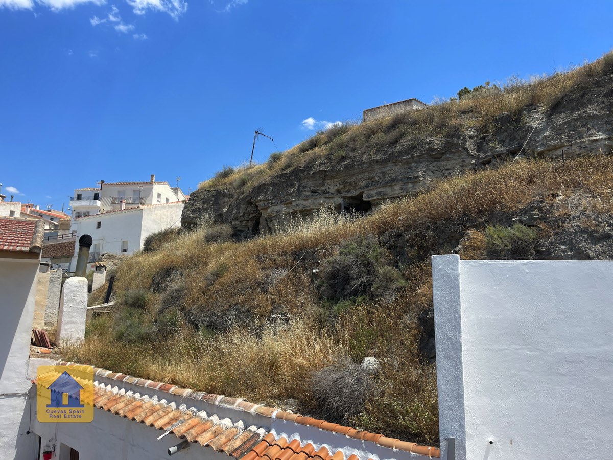Esta propiedad se encuentra al final de una encantadora plaza peatonal, con bancos para relajarse y disfrutar de las vistas. Frente a la cueva hay un patio. Arriba hay una gran terraza privada con vistas. El acceso a esta terraza se realiza actualmente mediante una escalera, aunque se pueden construir escaleras. El aparcamiento está en la calle.