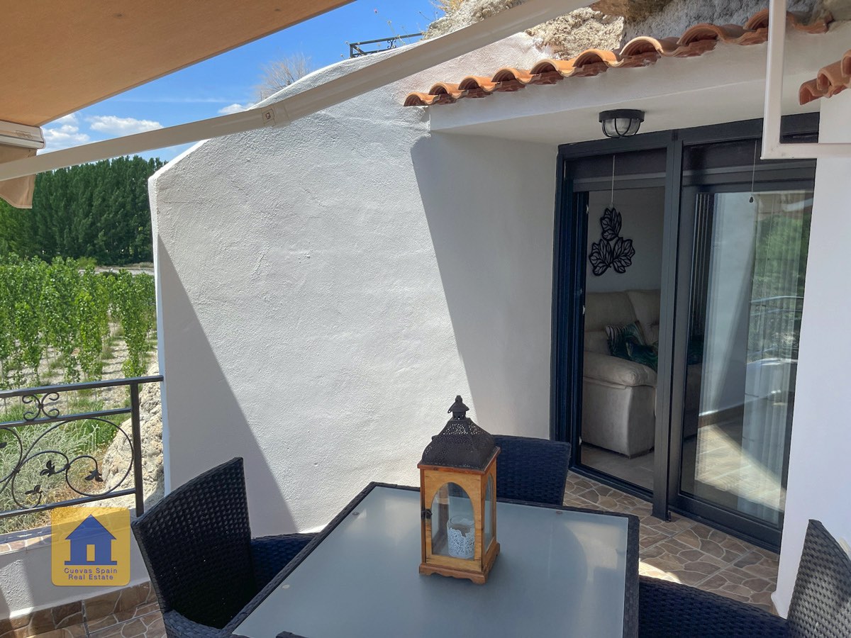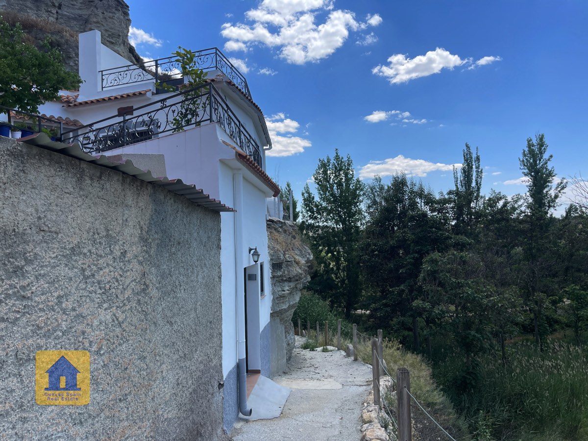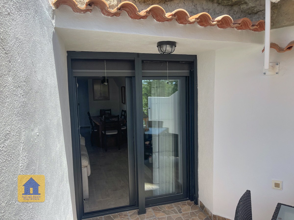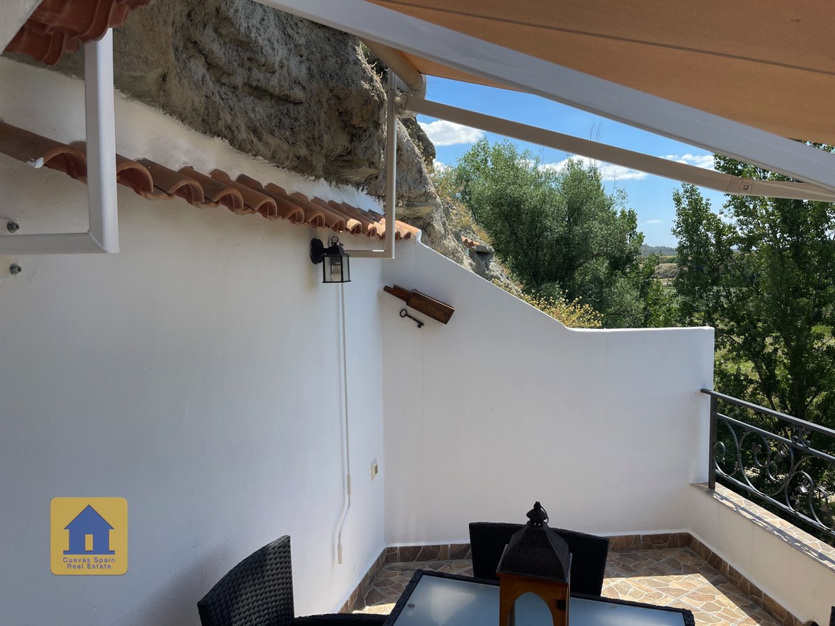Esta propiedad se encuentra al final de una encantadora plaza peatonal, con bancos para relajarse y disfrutar de las vistas. Frente a la cueva hay un patio. Arriba hay una gran terraza privada con vistas. El acceso a esta terraza se realiza actualmente mediante una escalera, aunque se pueden construir escaleras. El aparcamiento está en la calle.