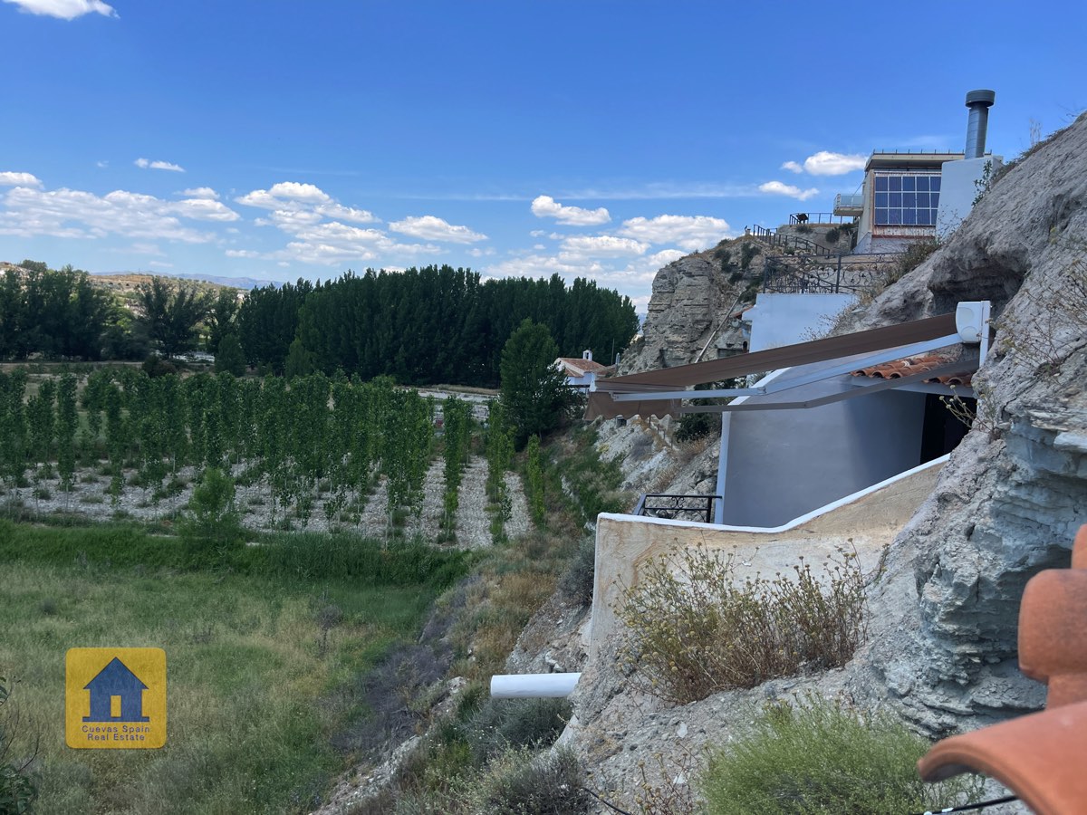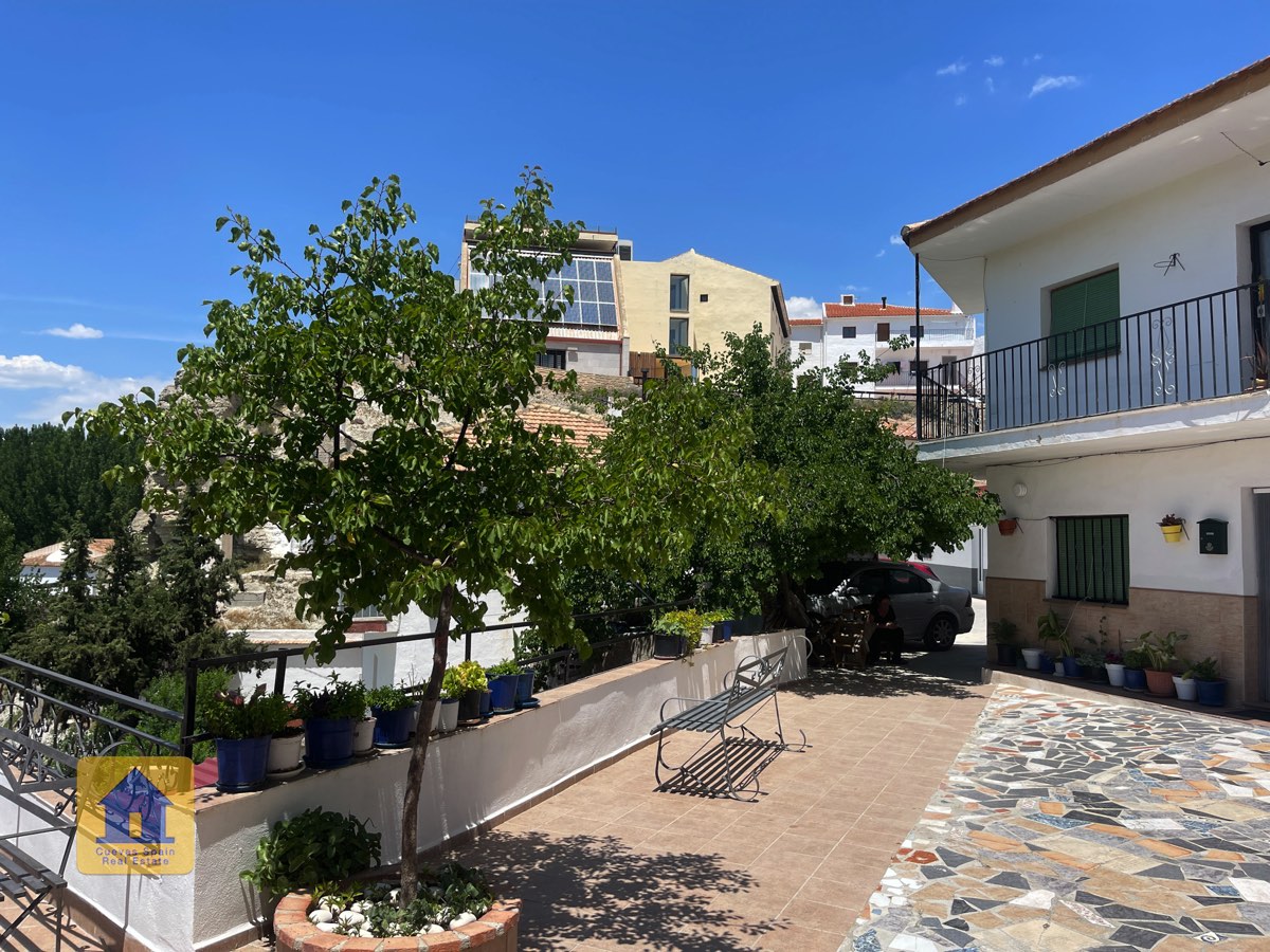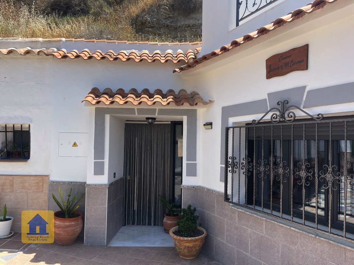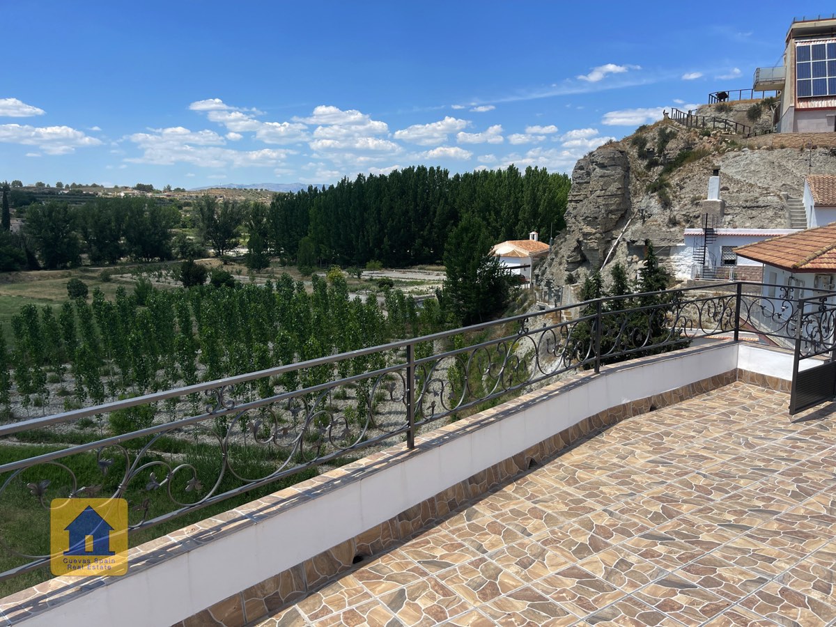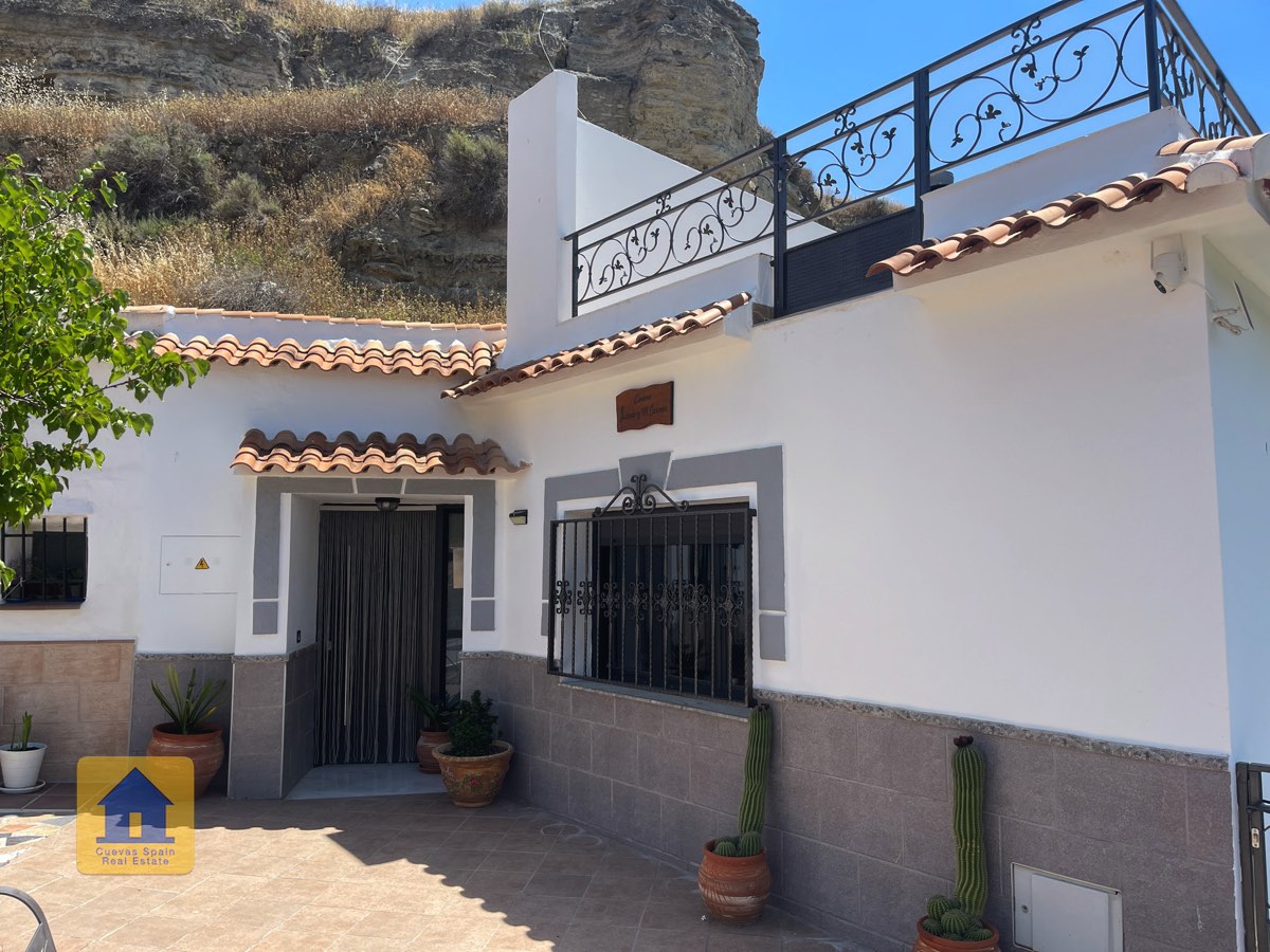 Esta propiedad se encuentra al final de una encantadora plaza peatonal, con bancos para relajarse y disfrutar de las vistas. Frente a la cueva hay un patio. Arriba hay una gran terraza privada con vistas. El acceso a esta terraza se realiza actualmente mediante una escalera, aunque se pueden construir escaleras. El aparcamiento está en la calle.