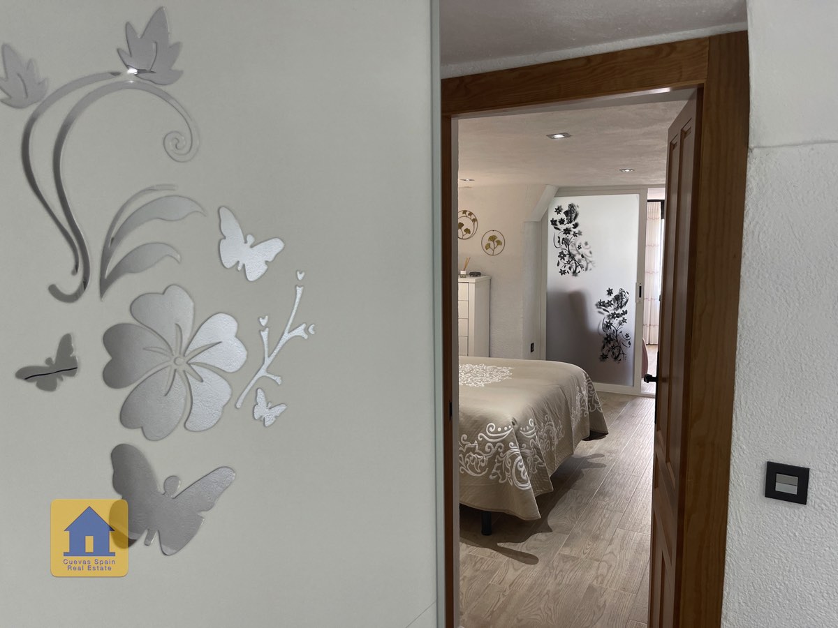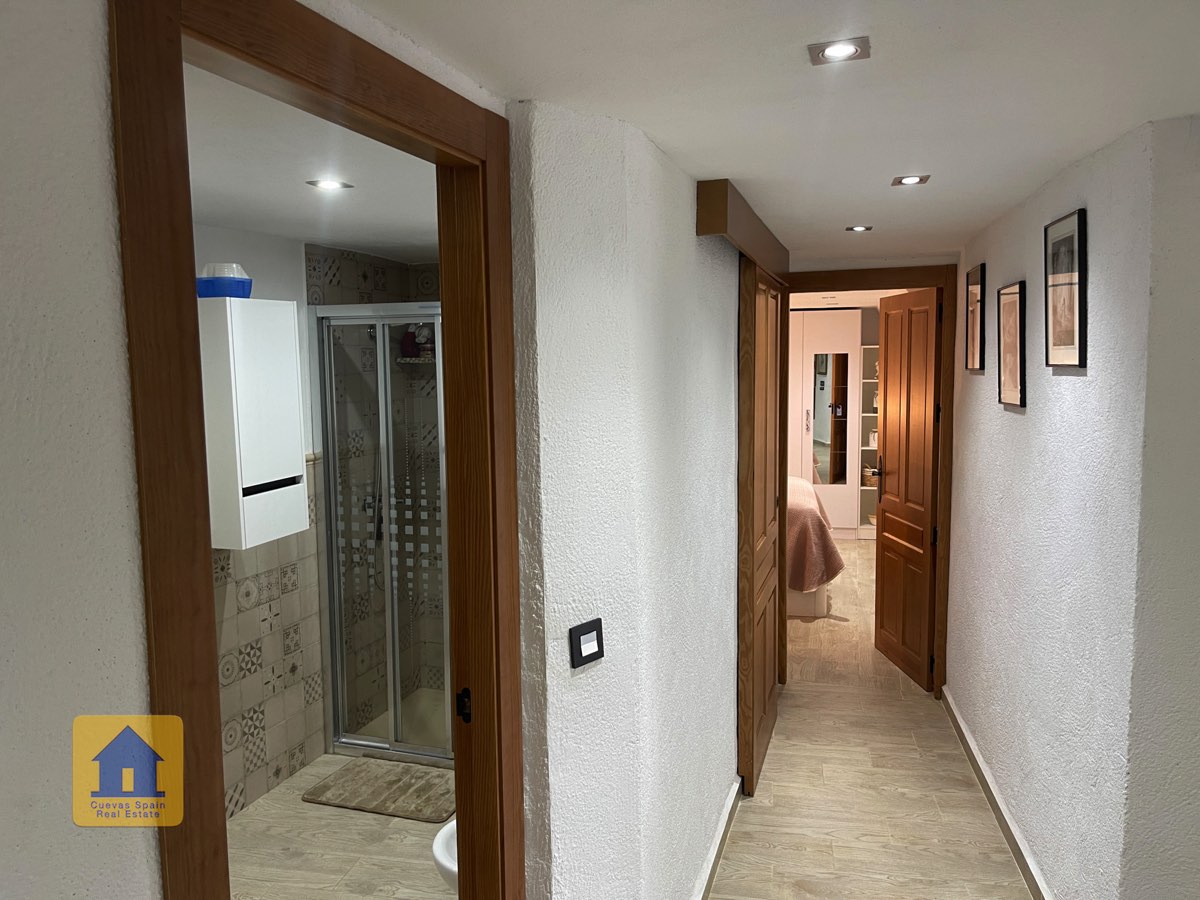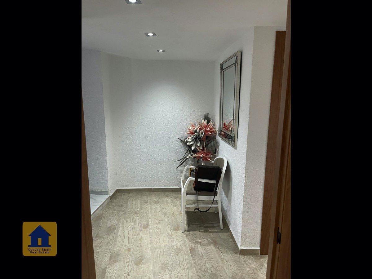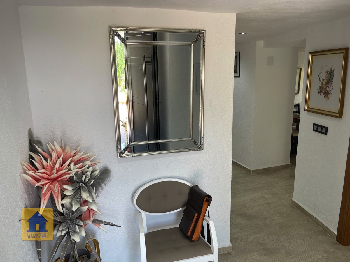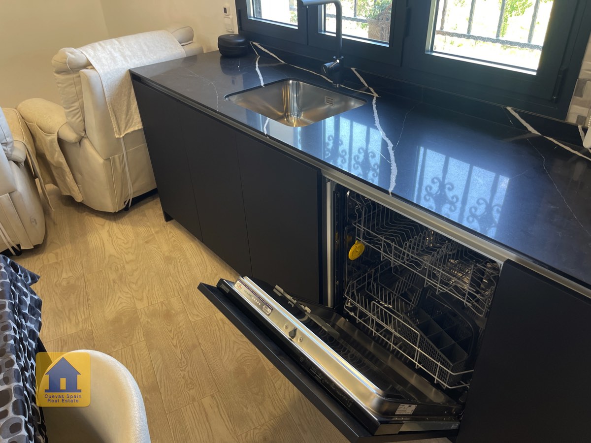 En toda la cueva y toda la zona de construcción se ha cuidado cuidadosamente la iluminación instalada. Las ventanas de la cocina y puertas de vidrio que dan a dos de las terrazas también dejan entrar mucha luz natural. Los suelos son de baldosas de estilo madera clara y los muebles combinan a la perfección con la decoración. (La mesa de comedor de madera no está incluida en la venta).