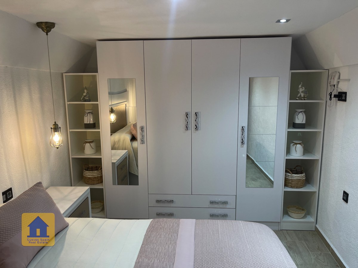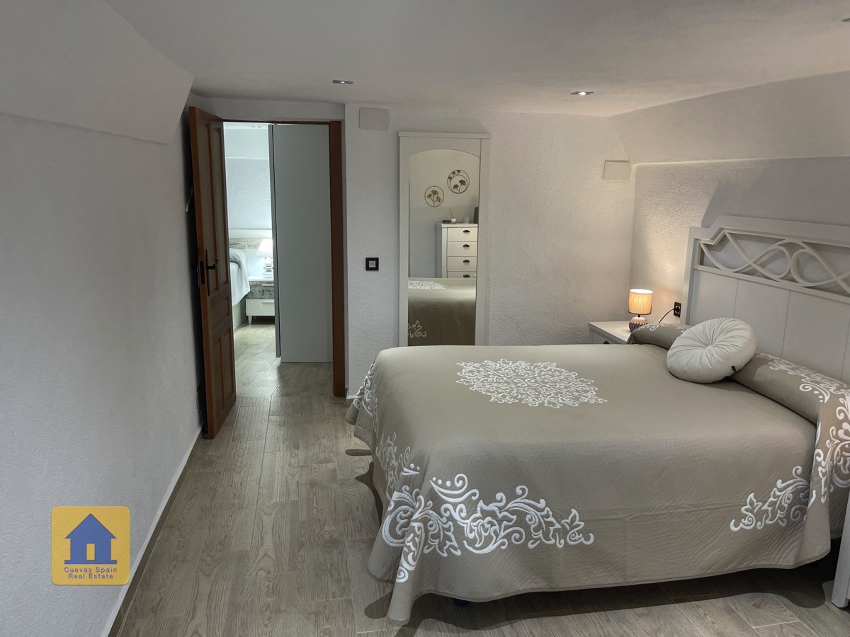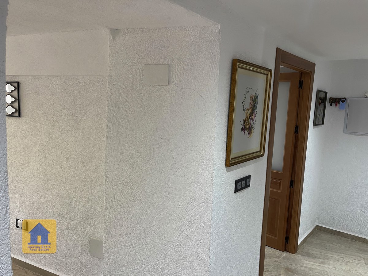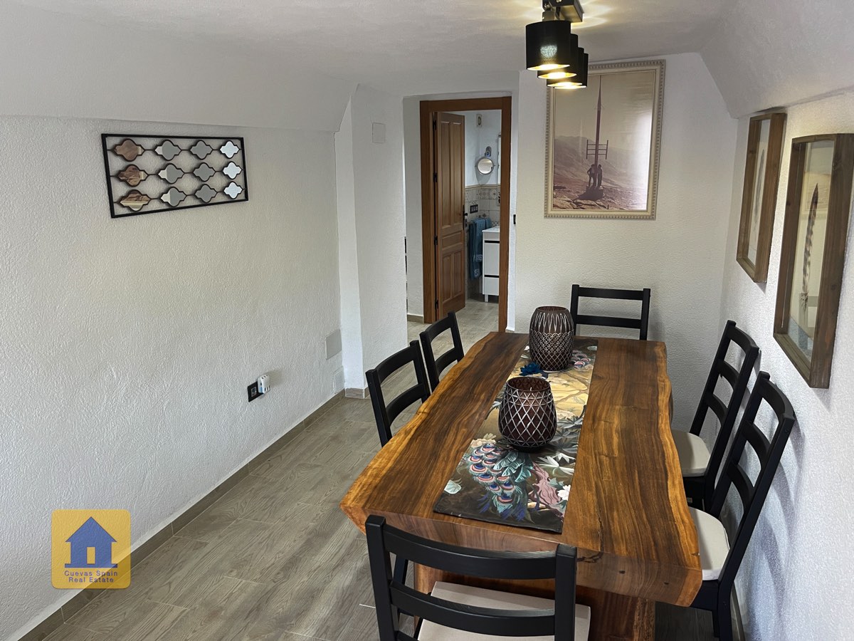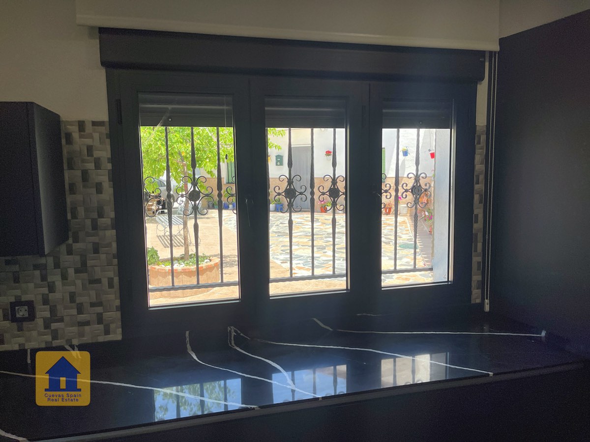 En toda la cueva y toda la zona de construcción se ha cuidado cuidadosamente la iluminación instalada. Las ventanas de la cocina y puertas de vidrio que dan a dos de las terrazas también dejan entrar mucha luz natural. Los suelos son de baldosas de estilo madera clara y los muebles combinan a la perfección con la decoración. (La mesa de comedor de madera no está incluida en la venta).